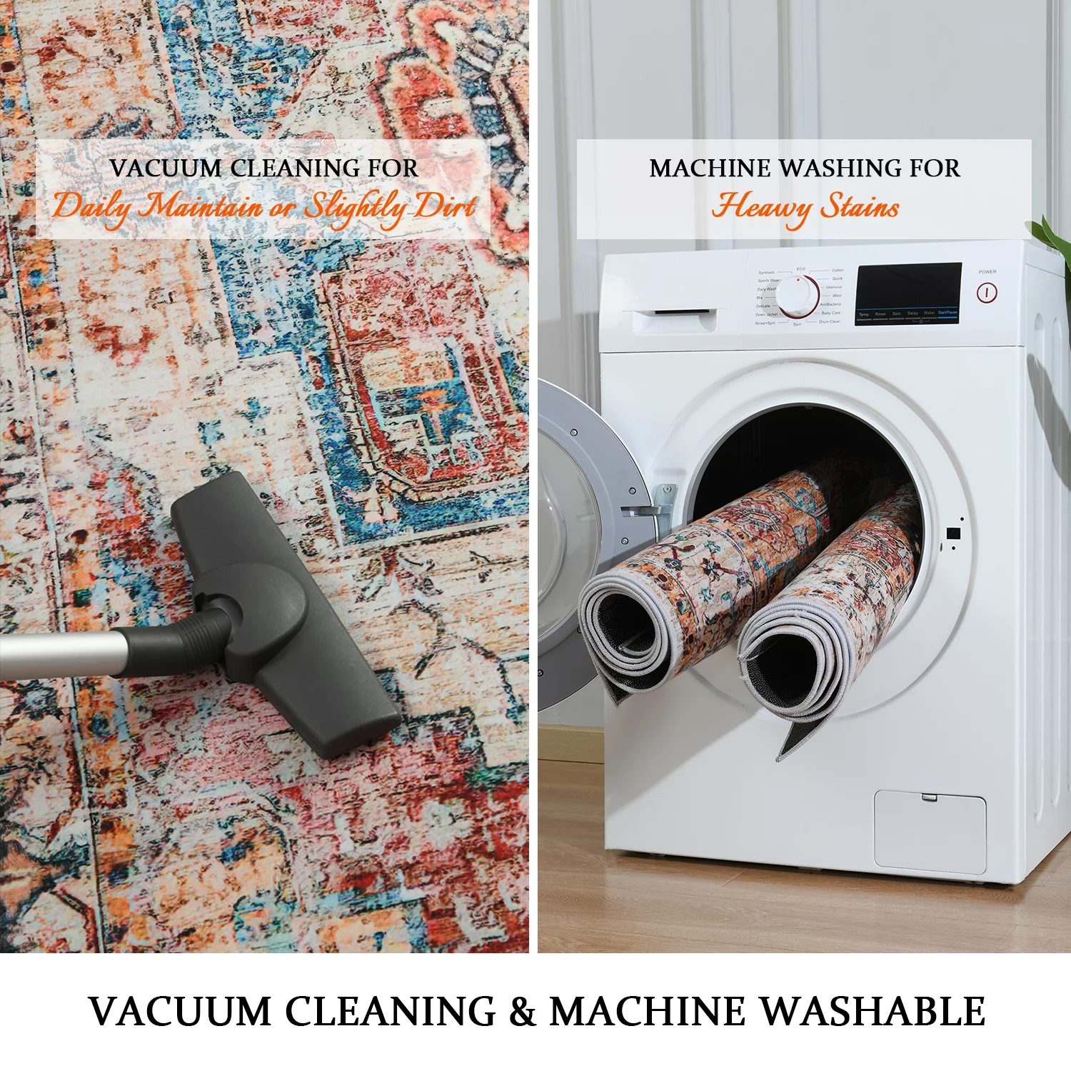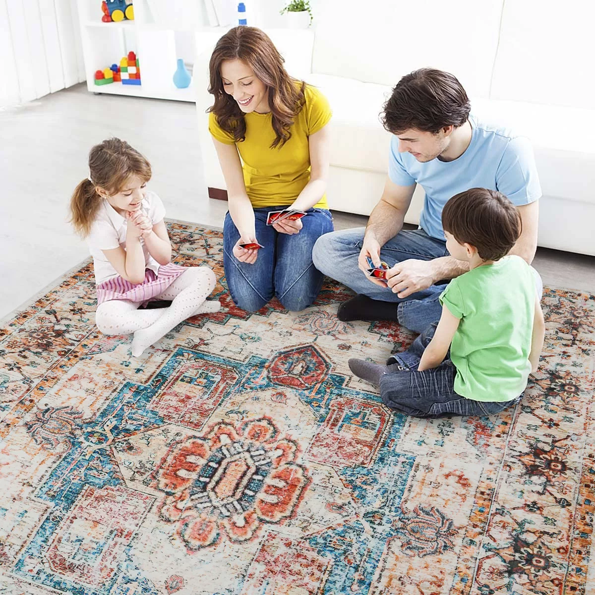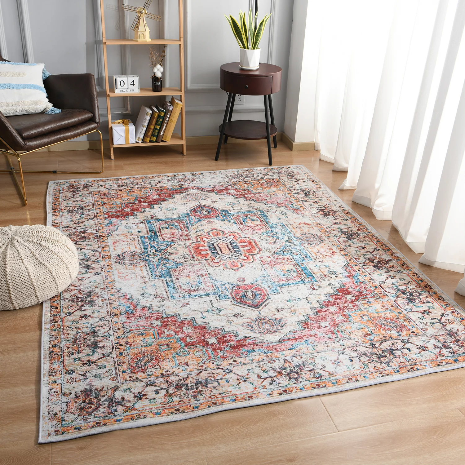 Lochas Vintage Bohemian Area Rug for Living Room, Retro Boho Rug Bedroom Indoor Print Carpet, 5' x 8', Orange