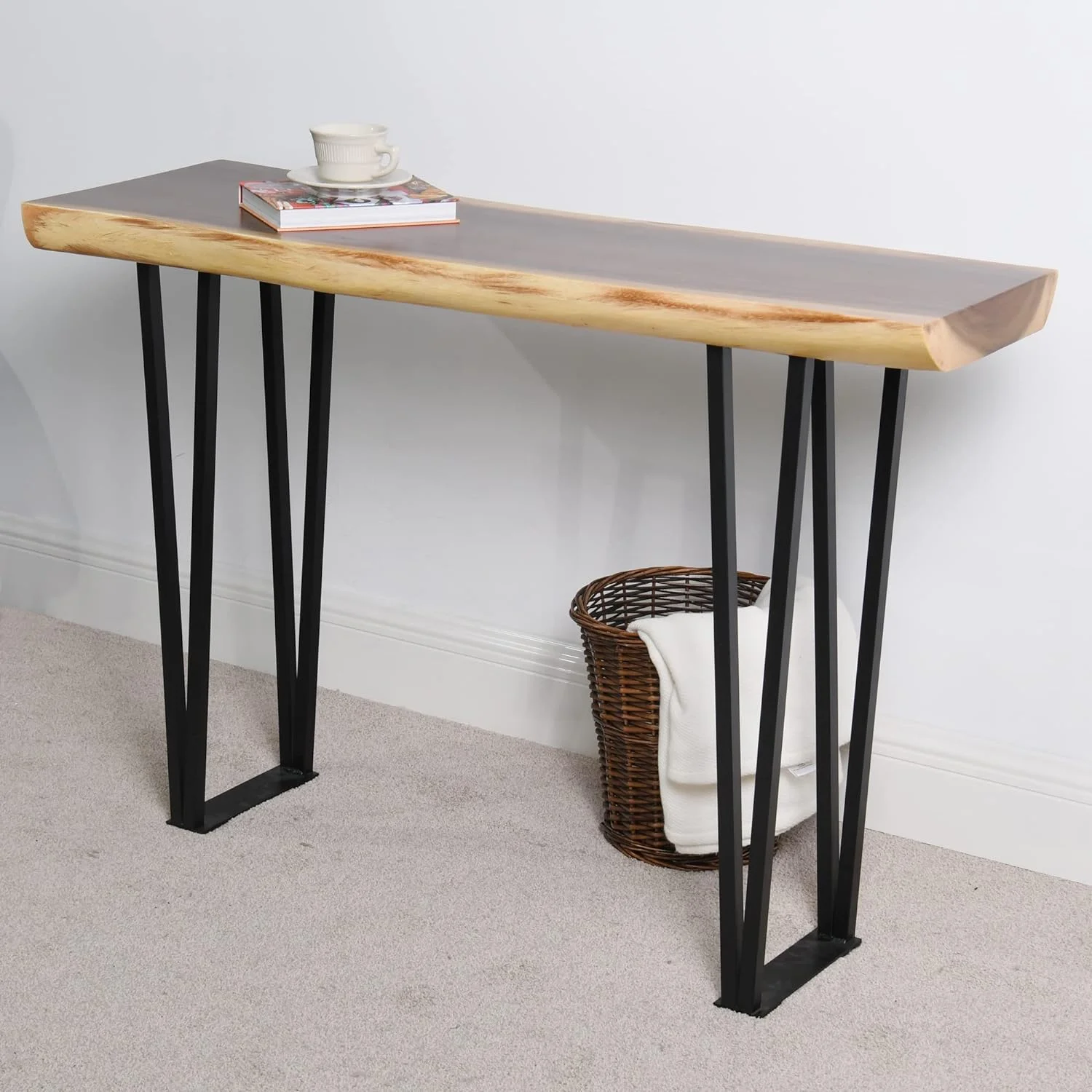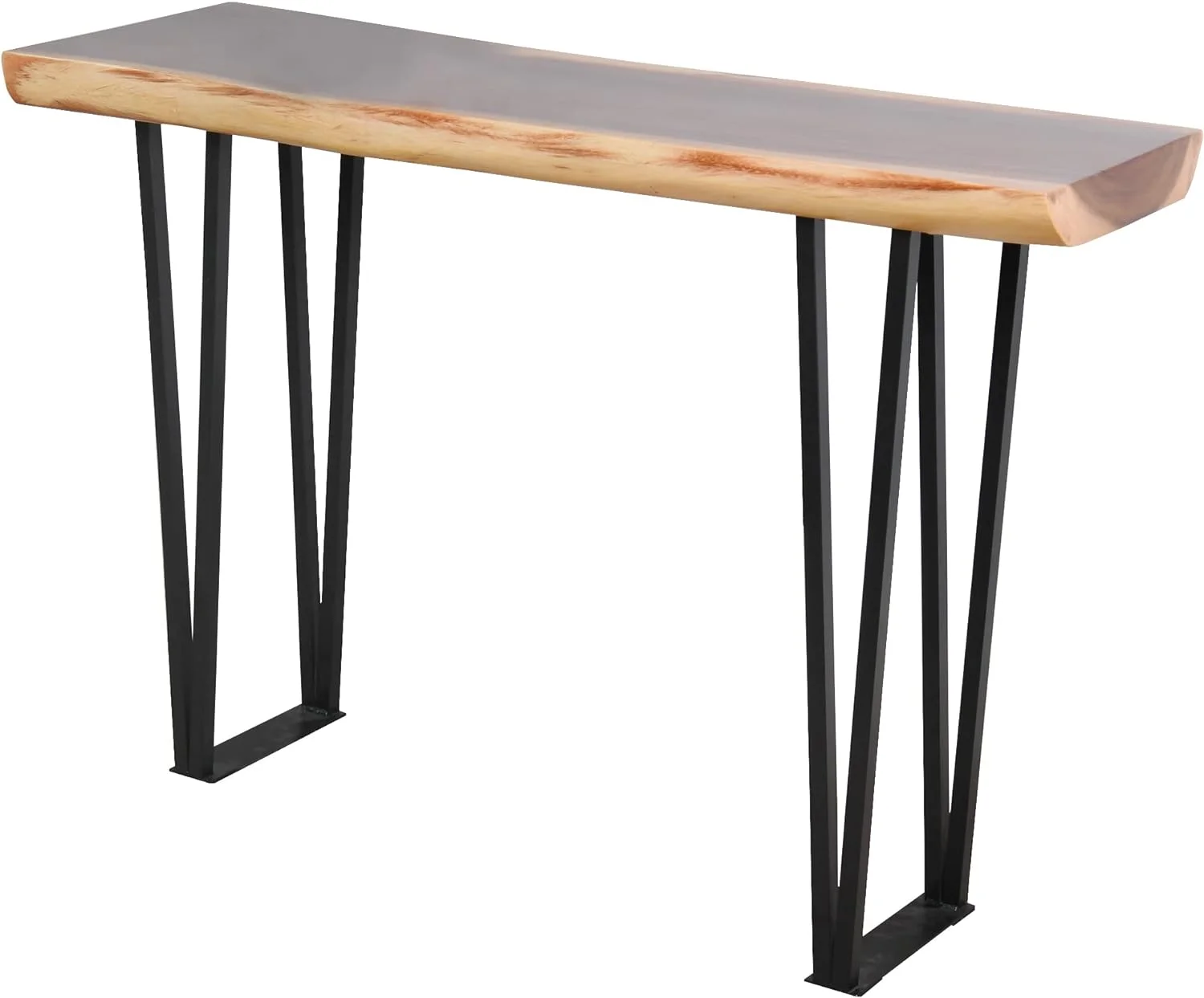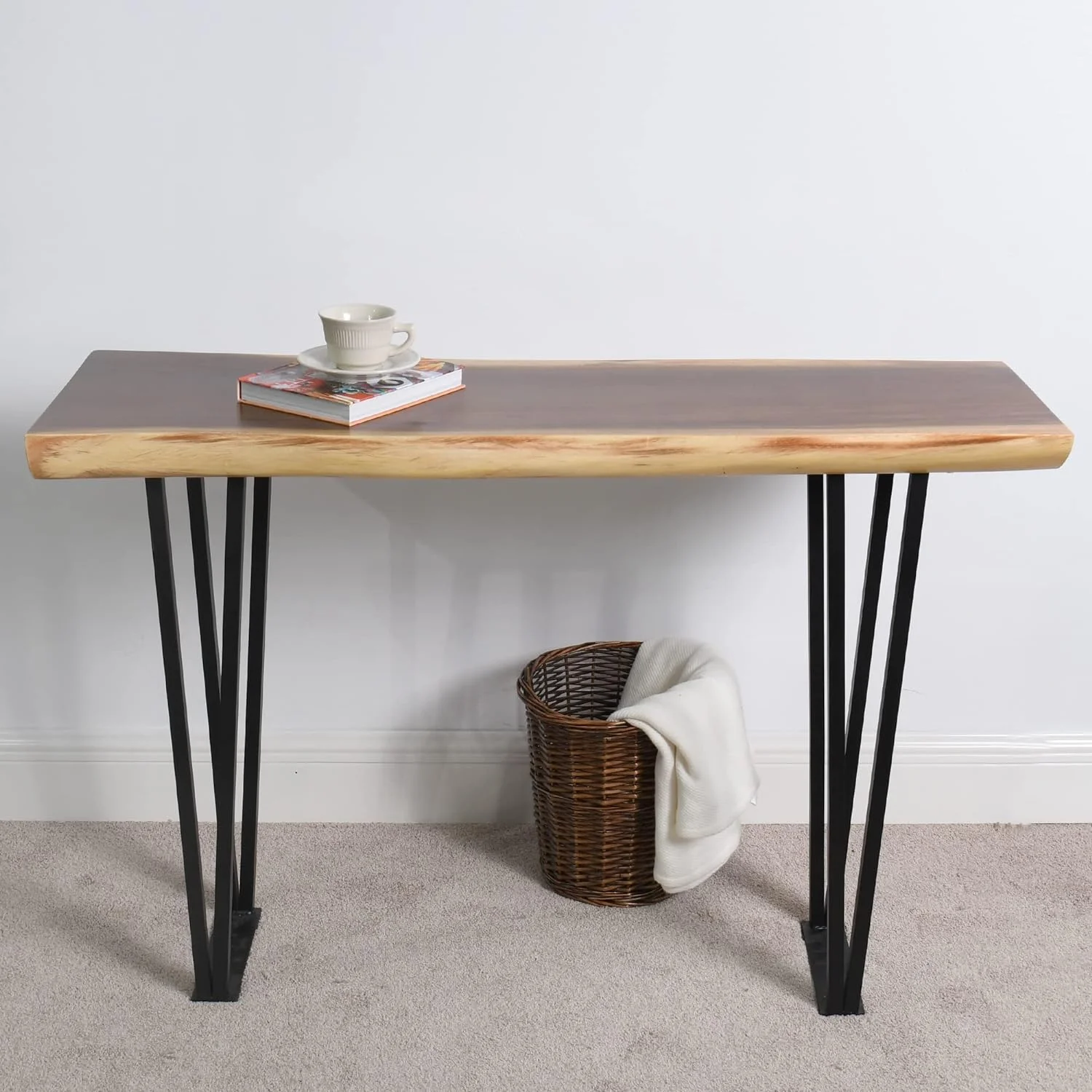 Natural Wood Rectangle Coffee Console Table 47"X14"X32" Rustic Solid Wood Edge Tables For Living Room Bedroom, Sturdy Hand Made End Table Side Table With Metal Legs