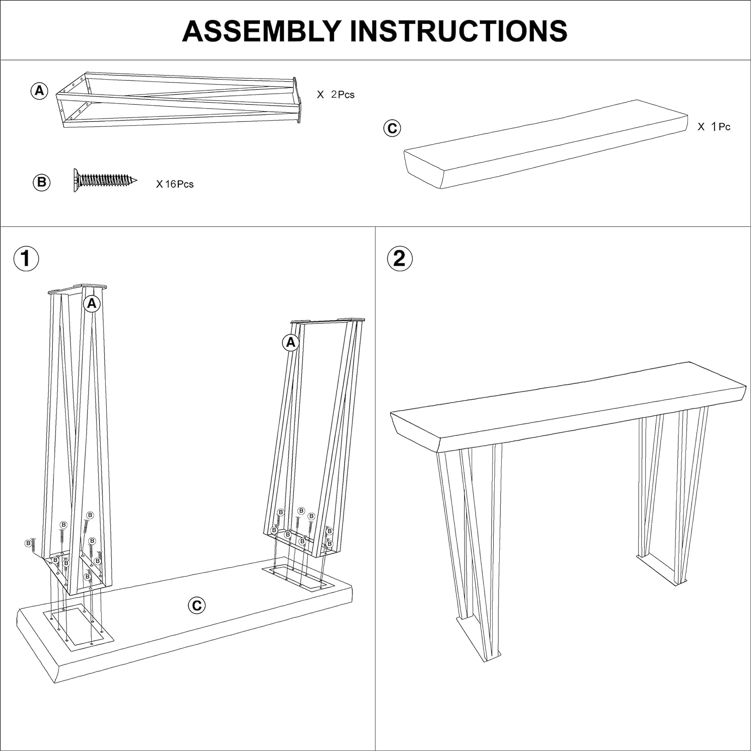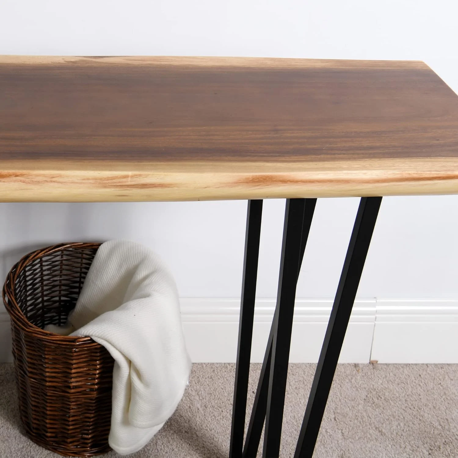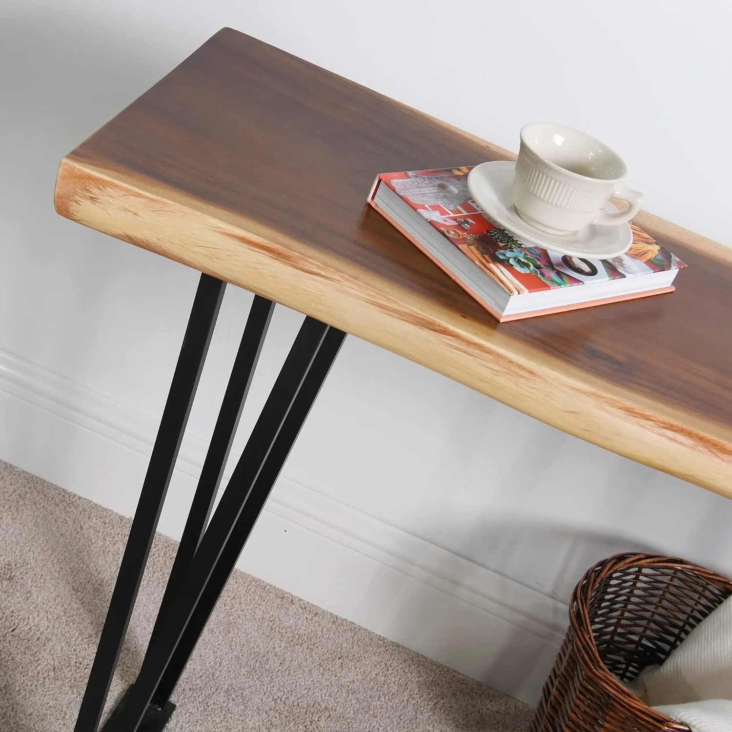 Natural Wood Rectangle Coffee Console Table 47"X14"X32" Rustic Solid Wood Edge Tables For Living Room Bedroom, Sturdy Hand Made End Table Side Table With Metal Legs