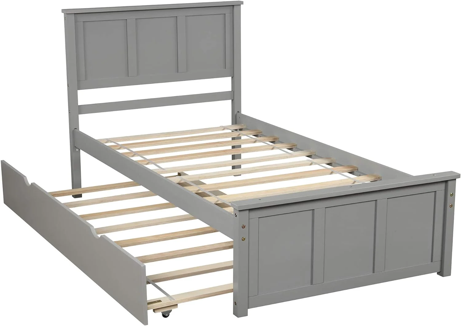 Bed Frame With Headboard And Trundle, Wood Platform Bed With Trundle, No Box Spring Needed (Gray With Trundle)