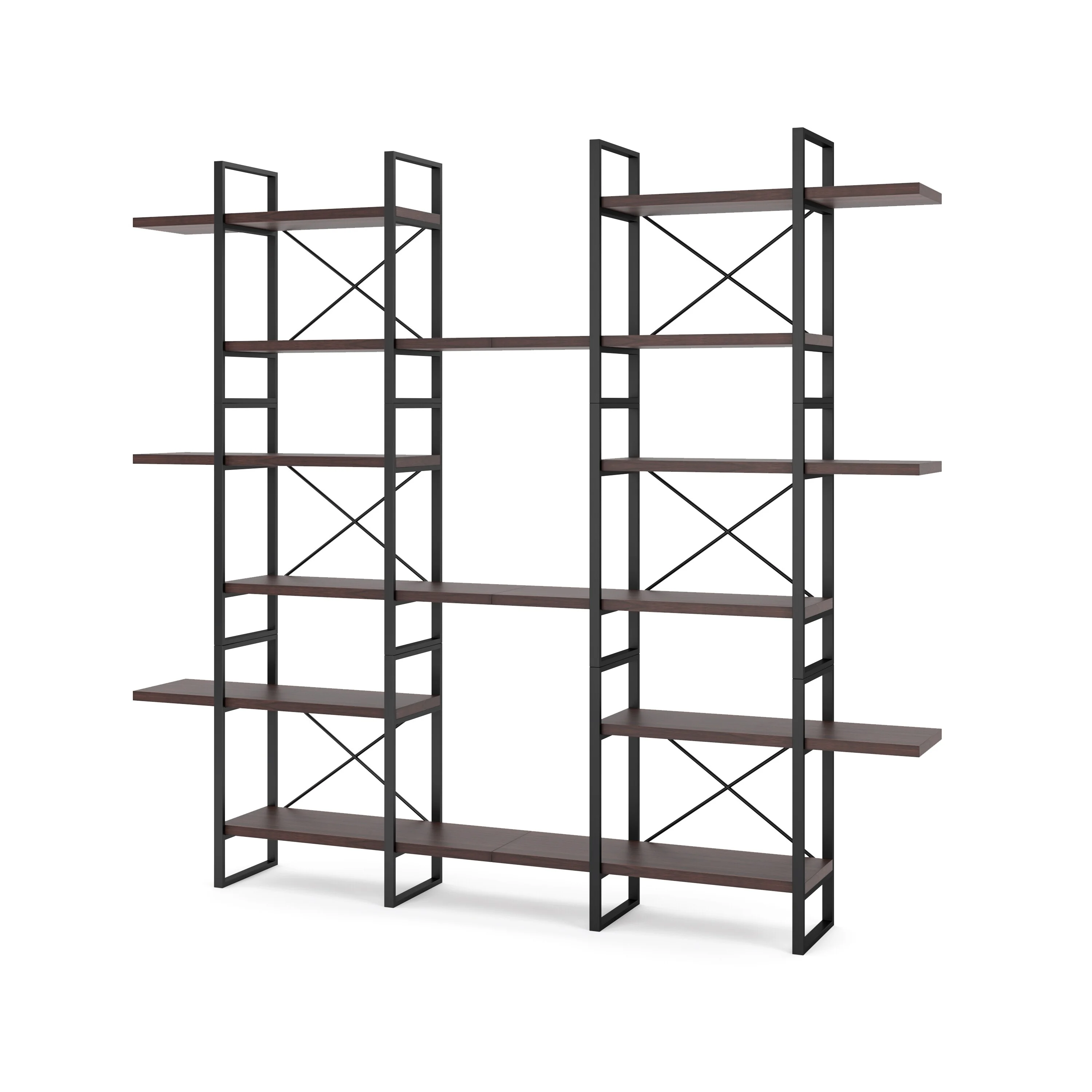 Davee Dark Walnut Color 6-Tiers Industrial Style Bookcase - 85" H x 94.5" W x 12.6" D