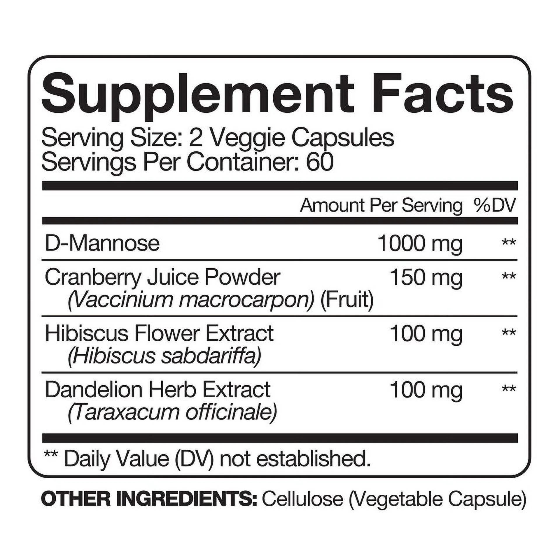 D-Mannose 1000mg Cranberry & Dandelion Extract-UTI Support 120 Capsules