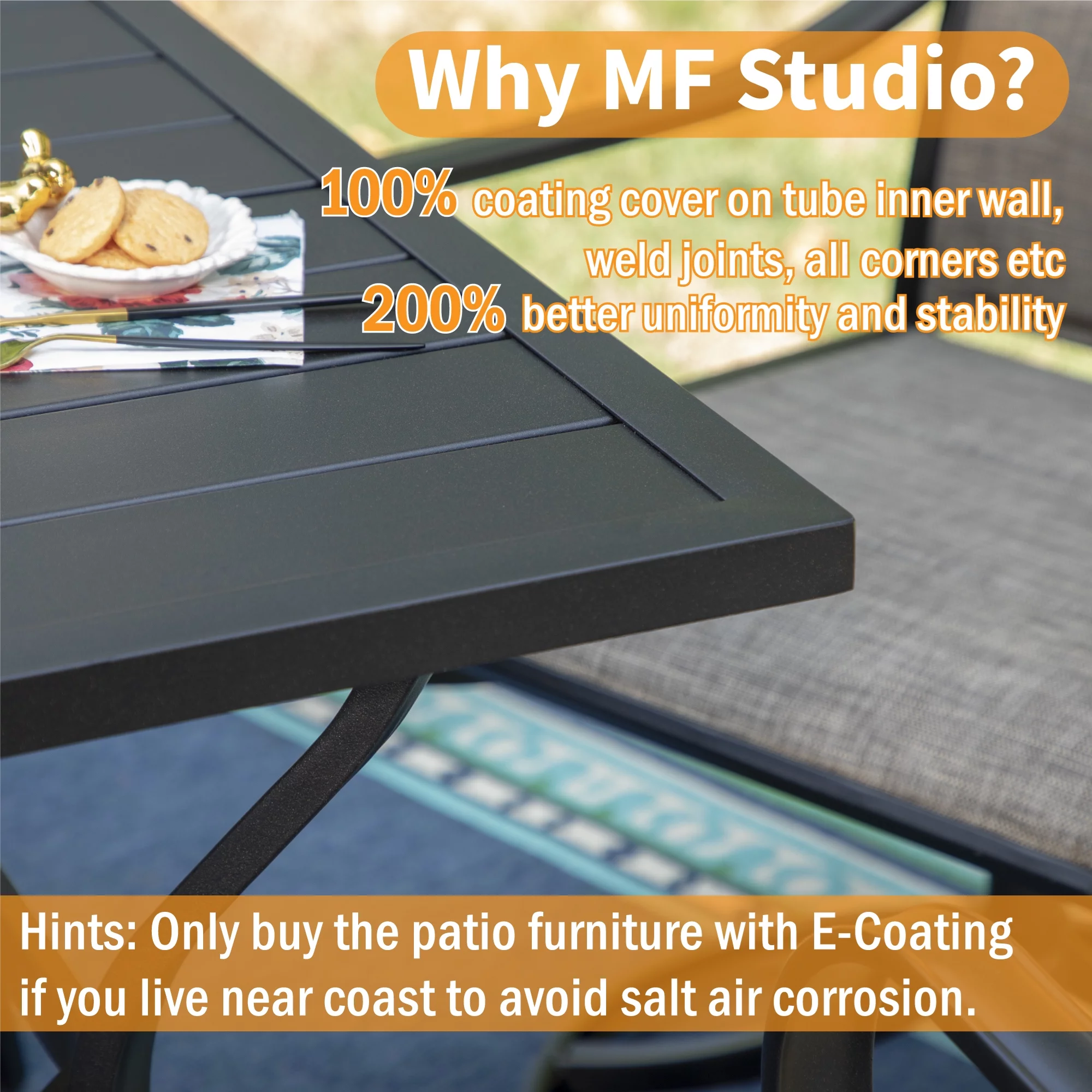 MF Studio 7-Piece Outdoor Patio Dining Set Metal Steel Furniture with 6 PCS Stackable Armchairs& 1 PC Rectangular Table for Dinner&Summer, Black