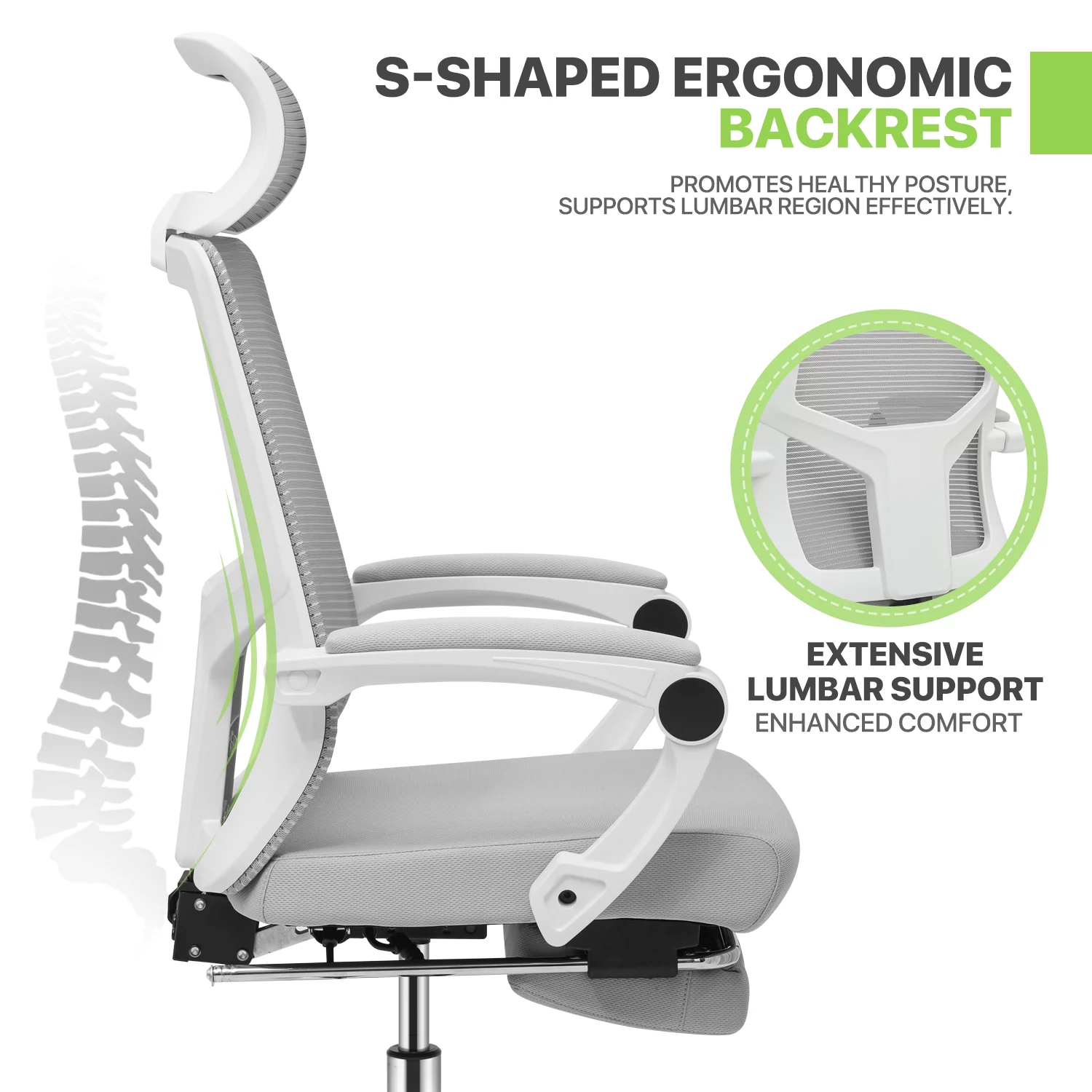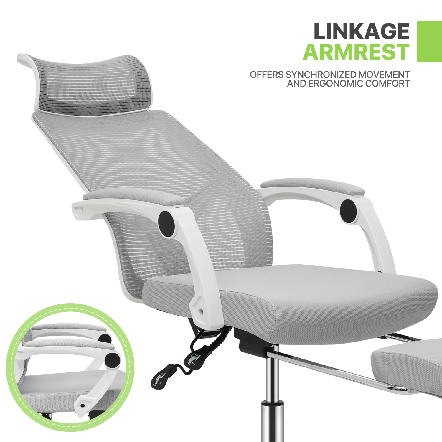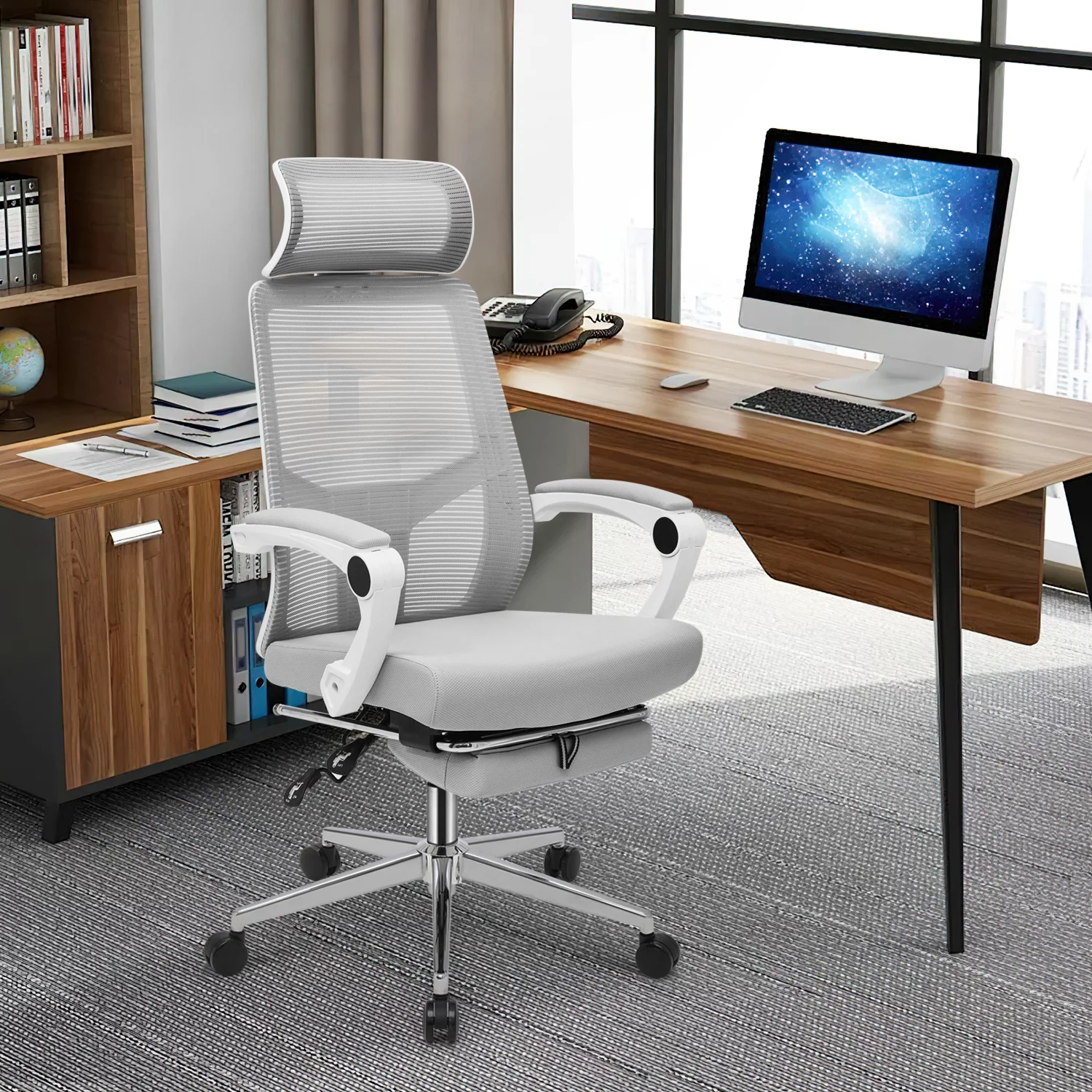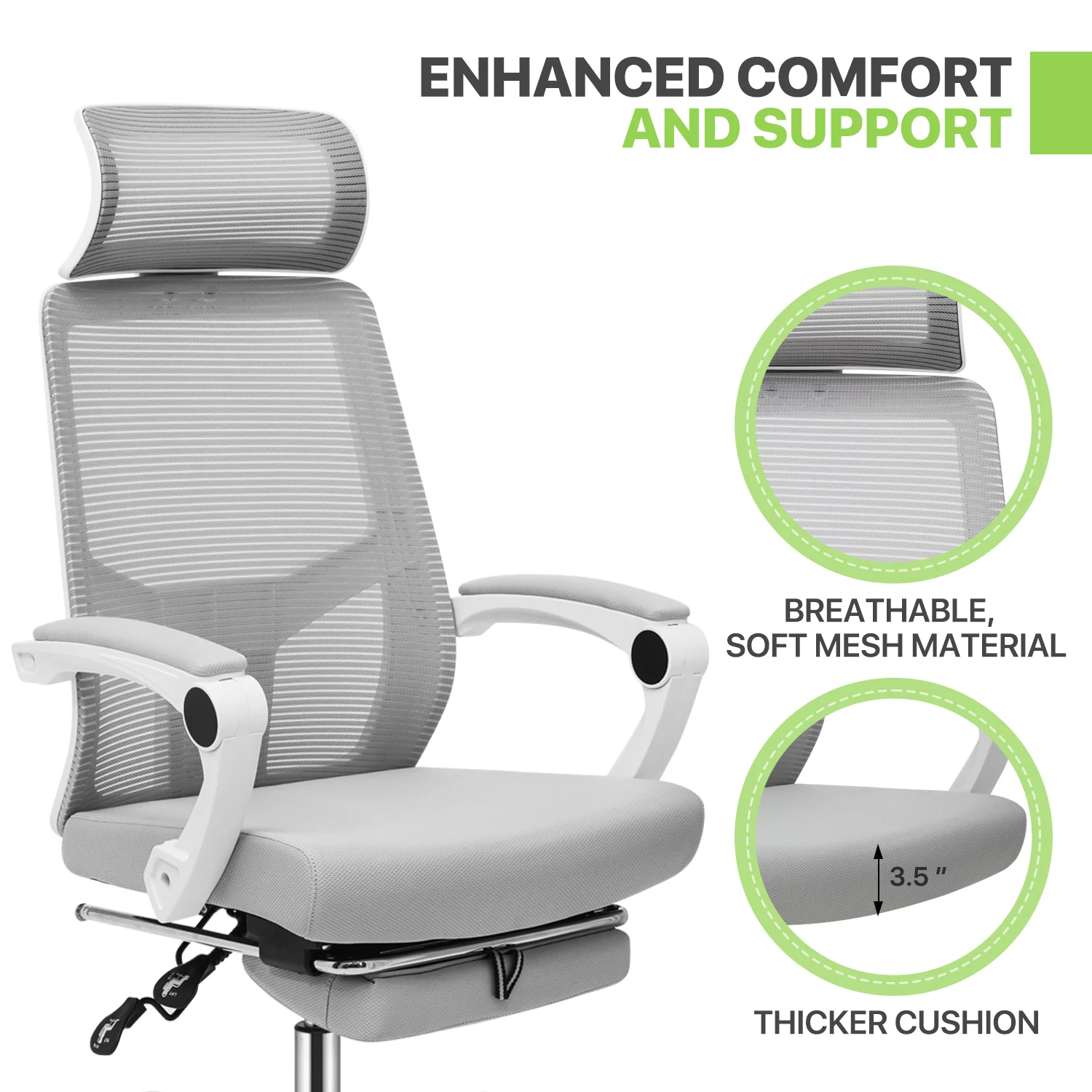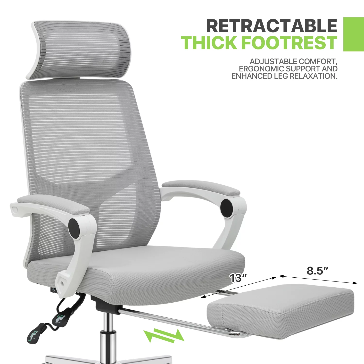 Magshion Ergonomic Office Executive Chair, Adjustable High Back Seat with Headrest & Footrest for Home Office, Grey