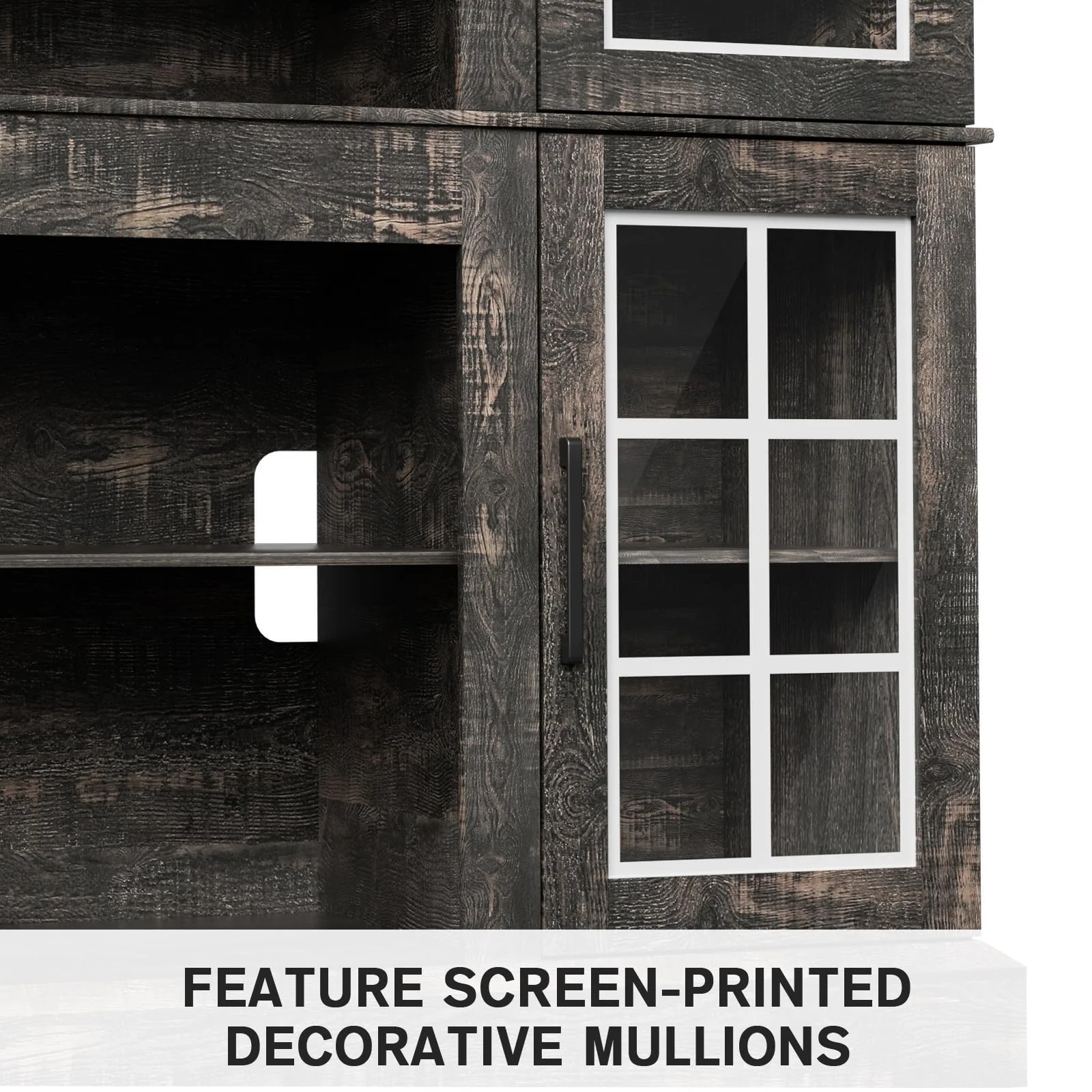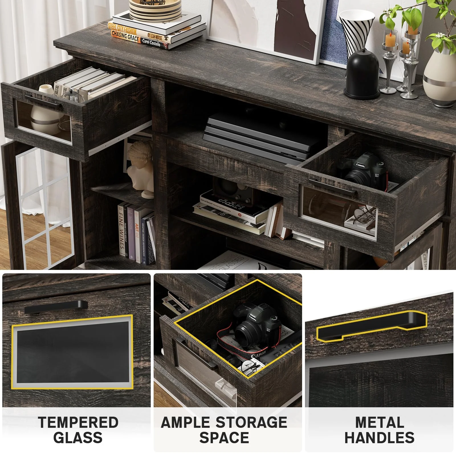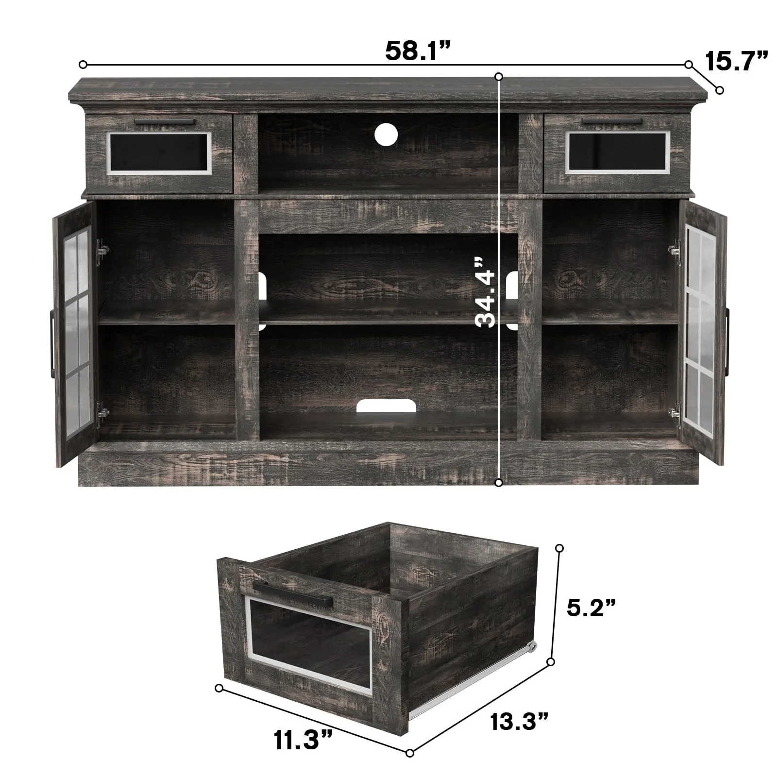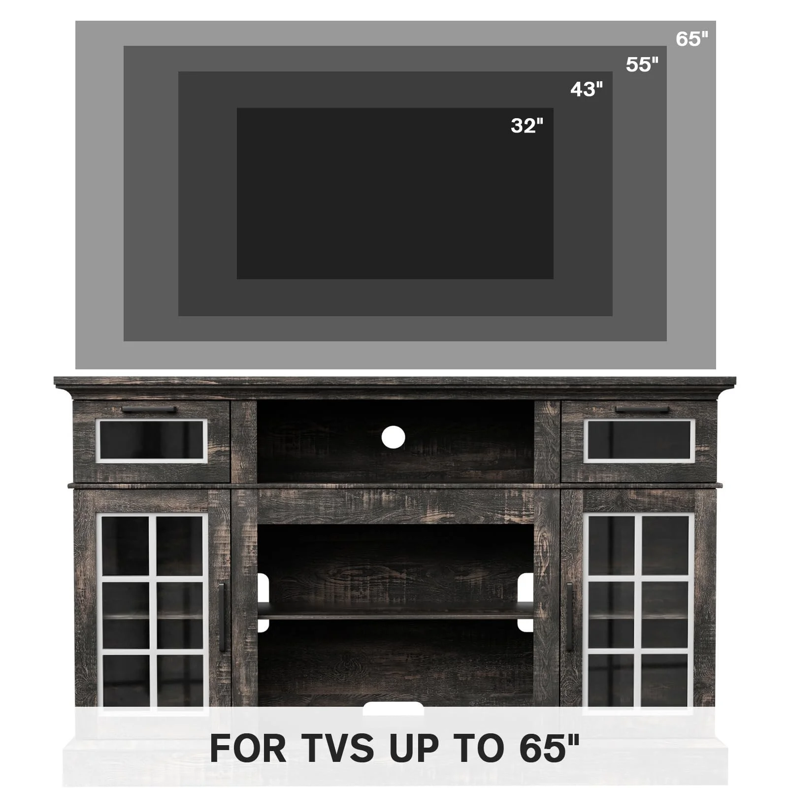 LGHM TV Stand for TVs up to 65", Modern Tall Entertainment Center Media Console with Glass Door for Living Room, Dark Oak