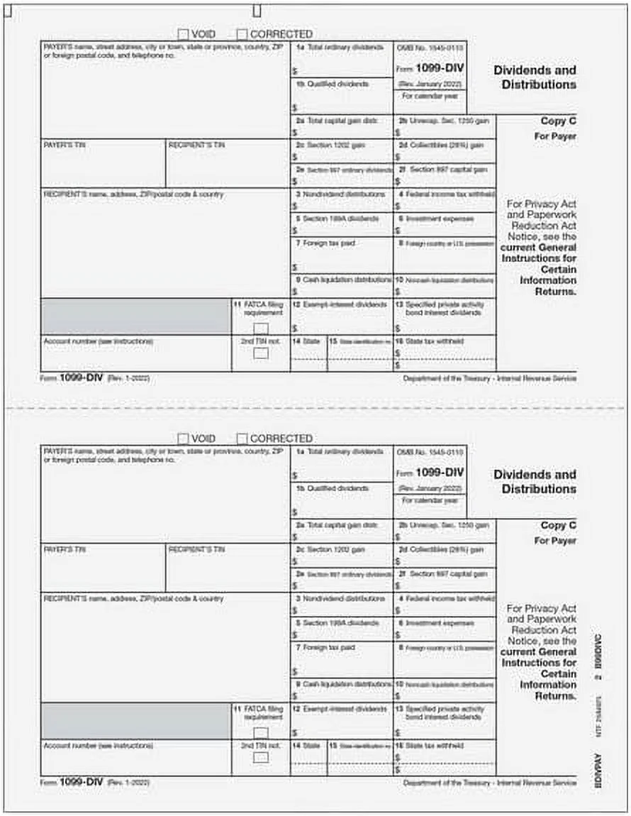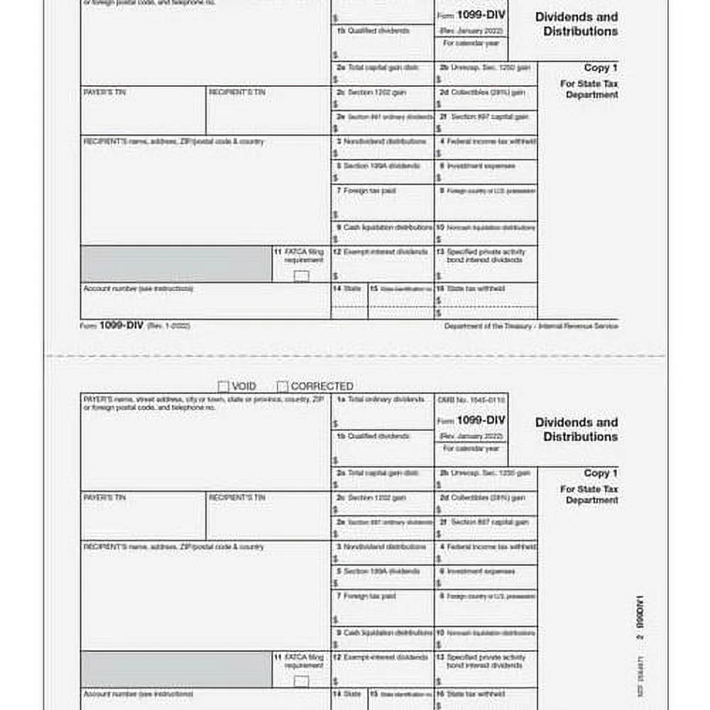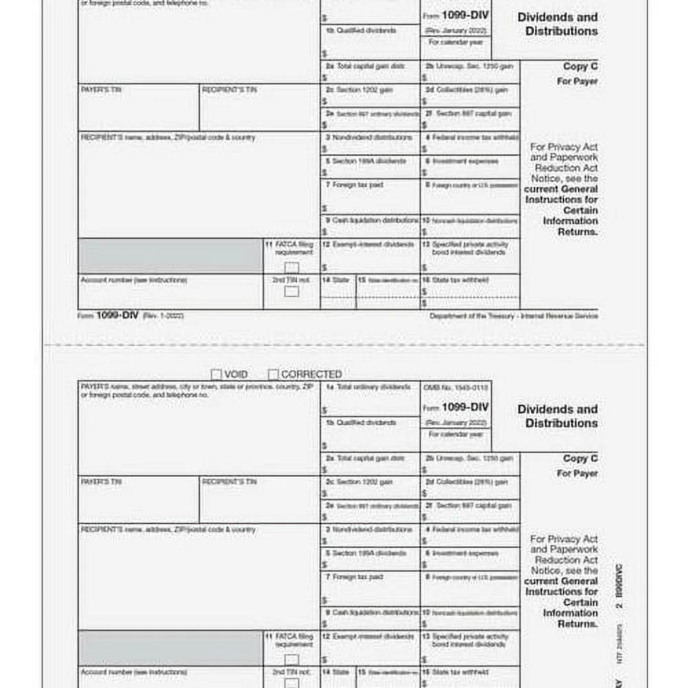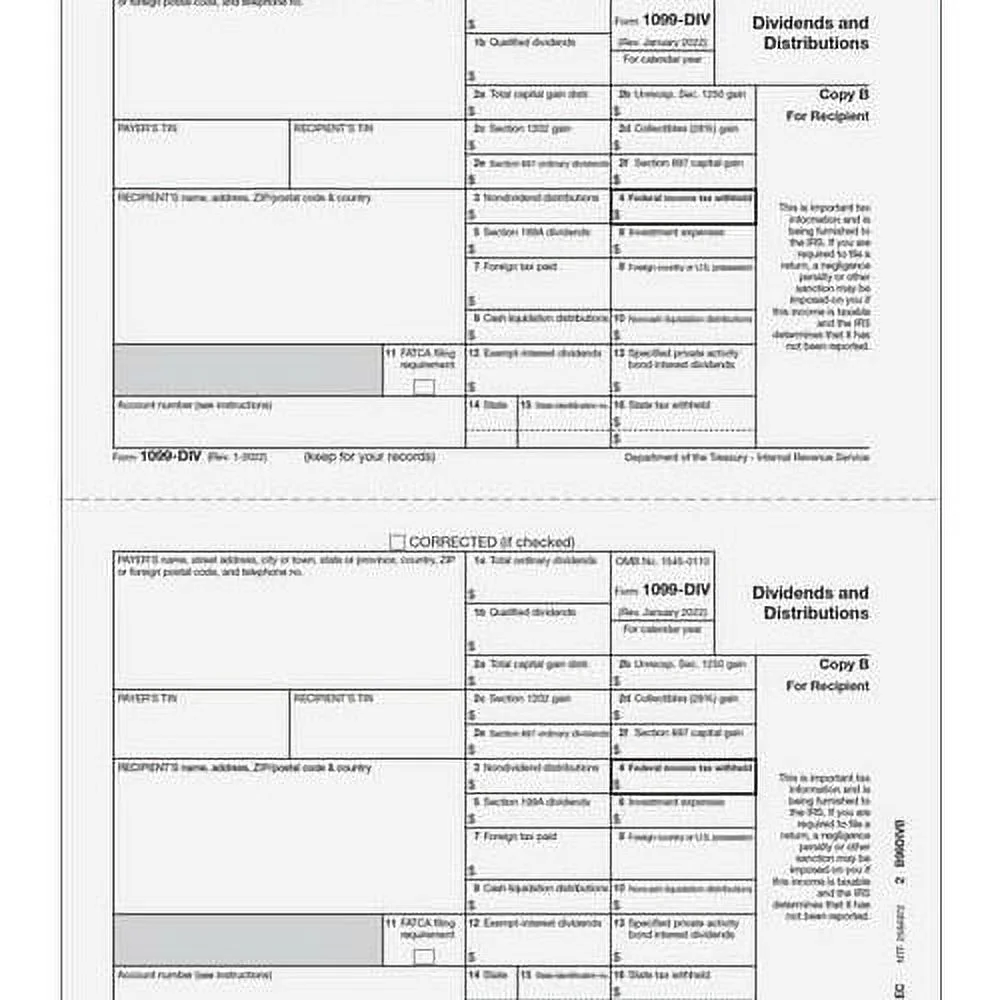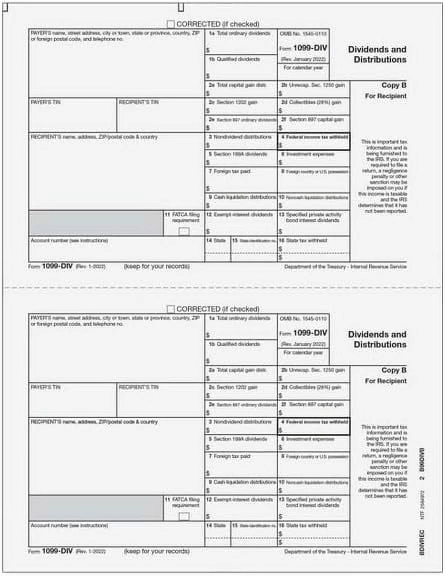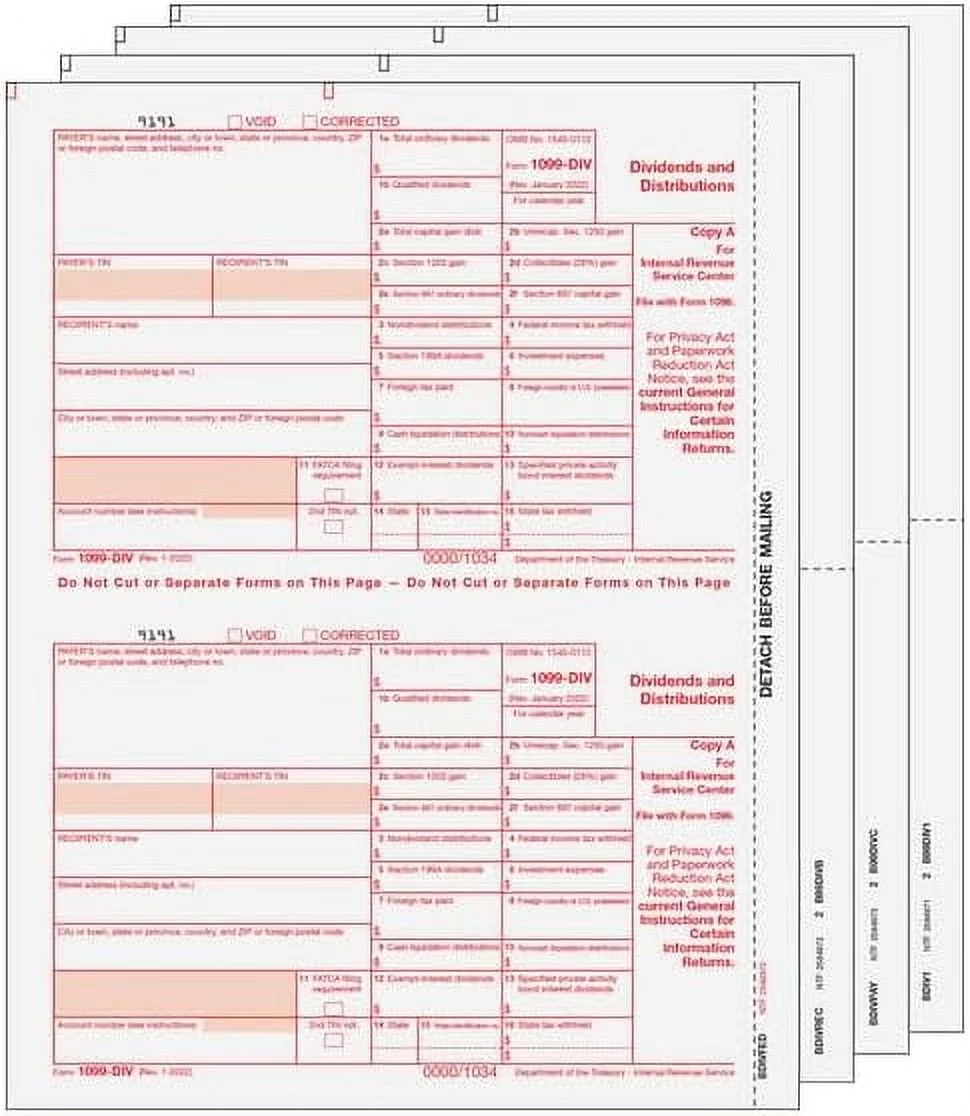 EGP IRS Approved 1099-DIV 4-Part Laser Tax Form Set, For 25 Recipients