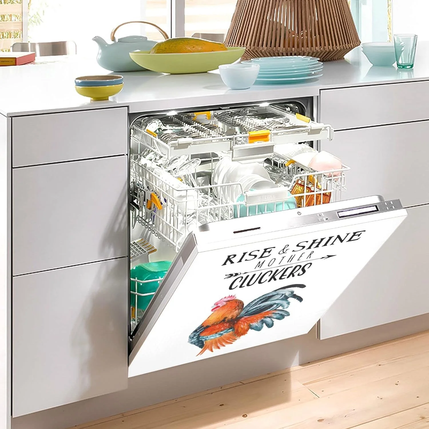 GZHJMY Dishwasher Magnet Cover Rise and Shine Mother Cluckers Rooster Front Dishwasher Cover Magnetic Home Cabinet Decals Appliances Stickers Refrigerator Decorative 23" x 26"