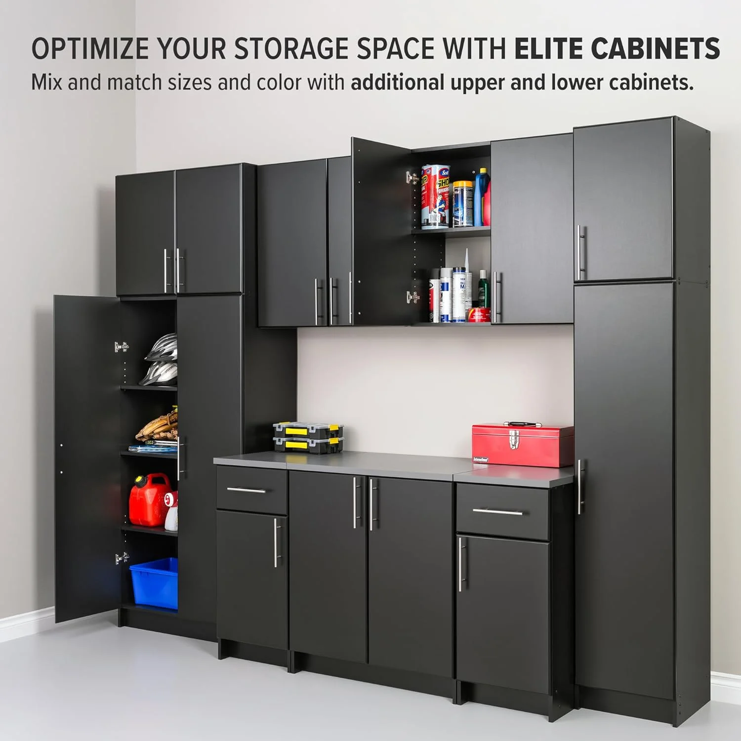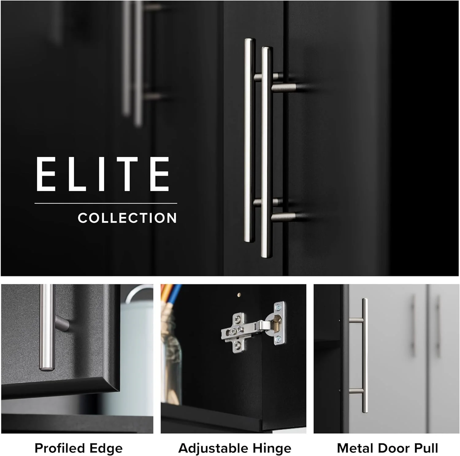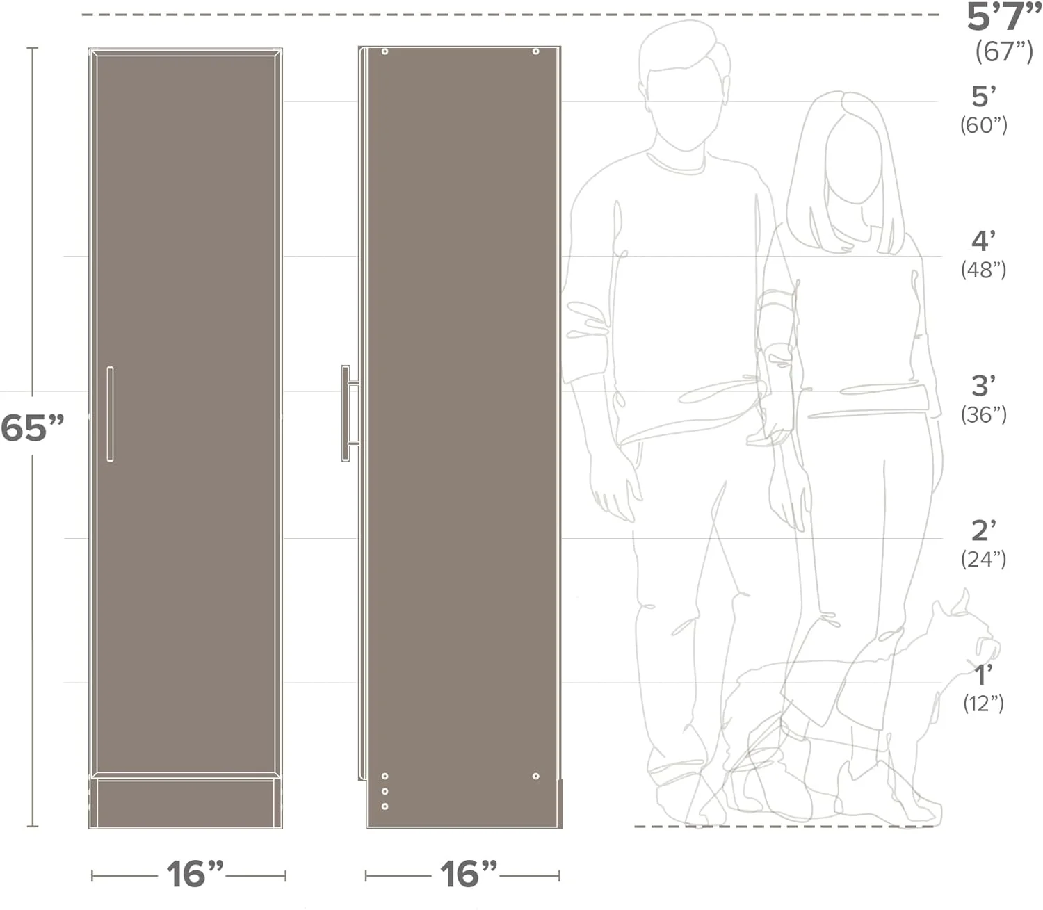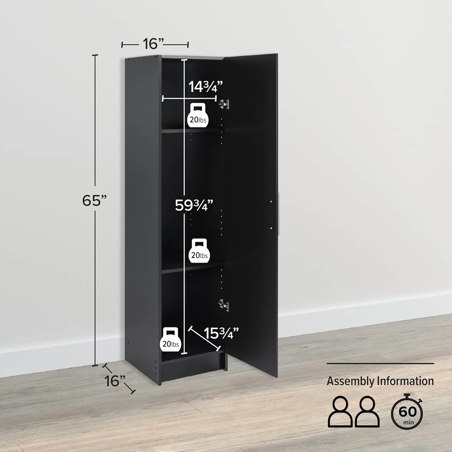 FJU Elite 16" Storage Cabinet, Black Storage Cabinet, Bathroom Cabinet, Pantry Cabinet with 2 Adjustable Shelves, 16" D x 16" W x 65" H, BEB-1664