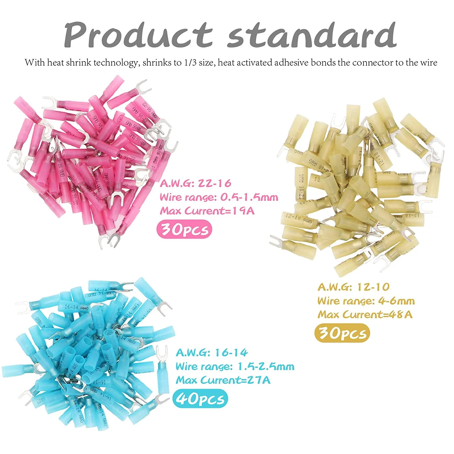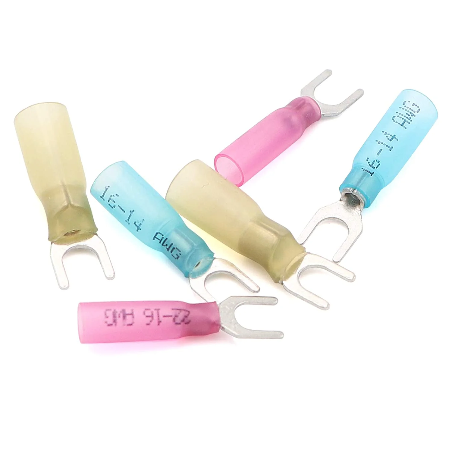 100 PCS 22-16 16-14 12-10 Gauge Heat Shrink Fork Terminals #10 Quick Disconnect Electrical Insulated Crimp Connector - Insulated Electrical Connectors for Aircraft,Boat,Truck,Stereo