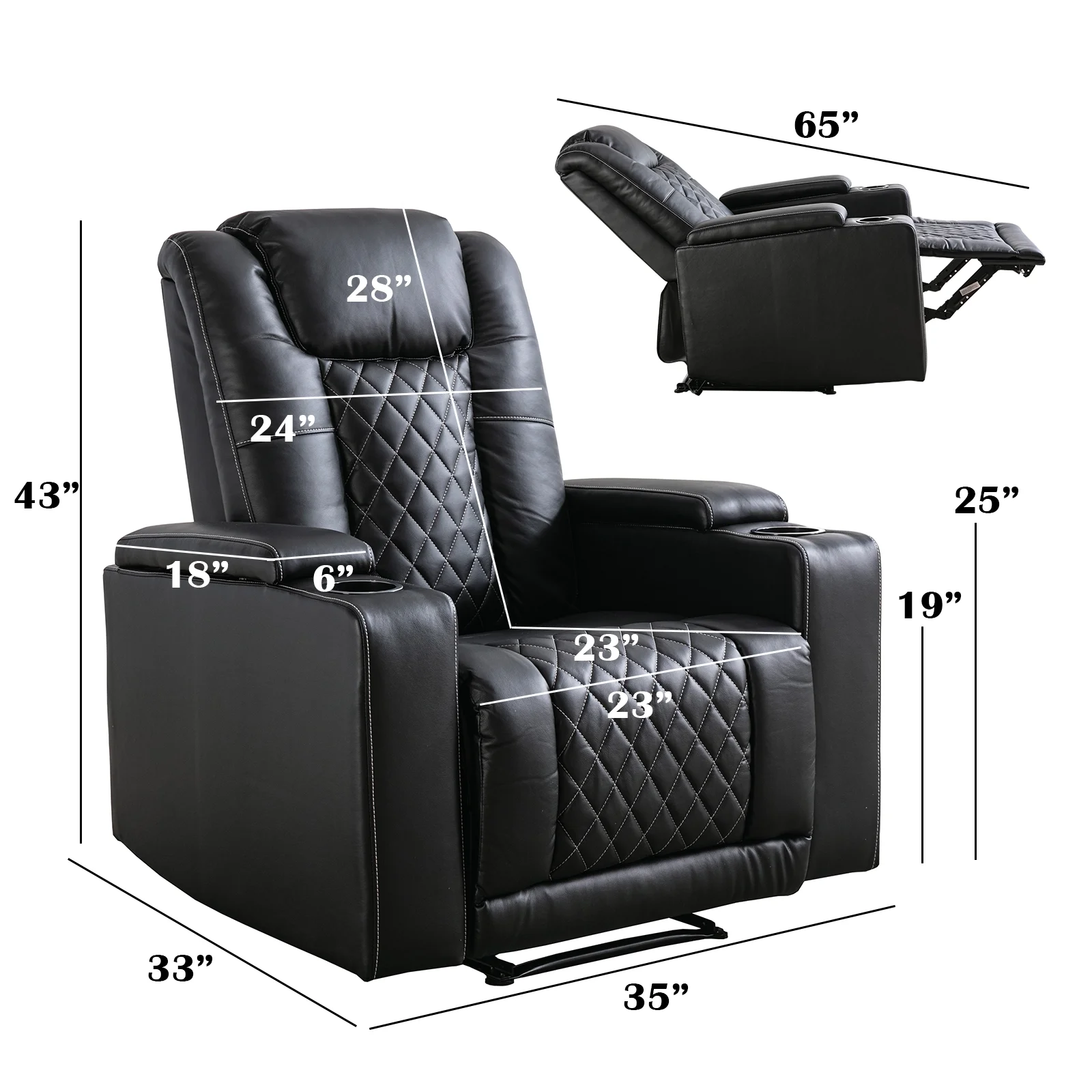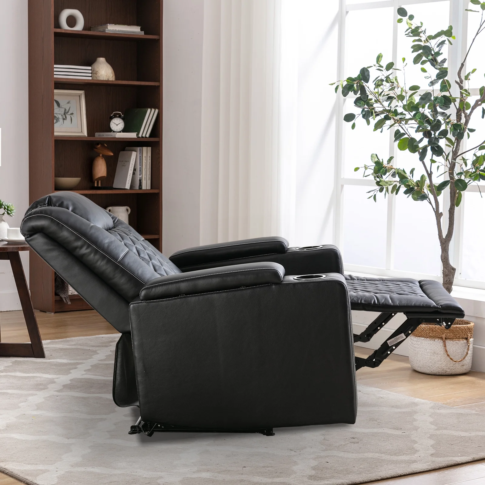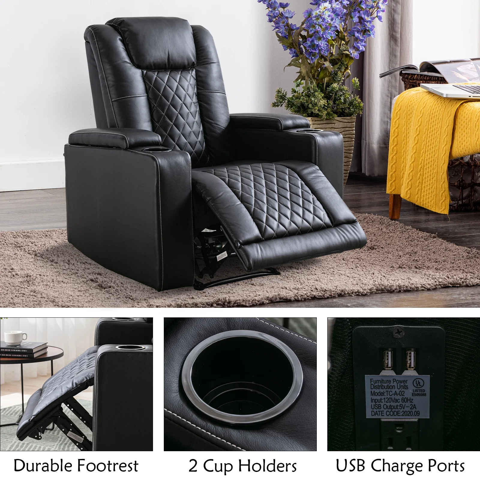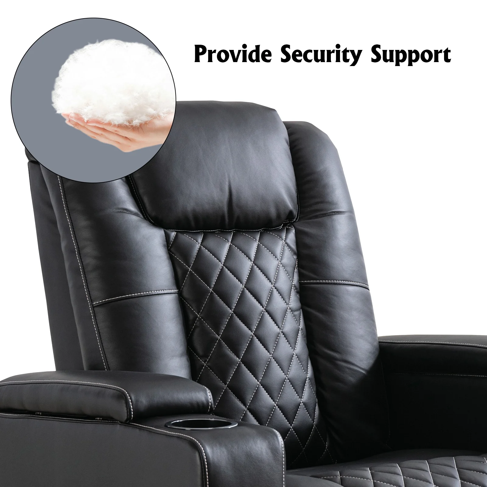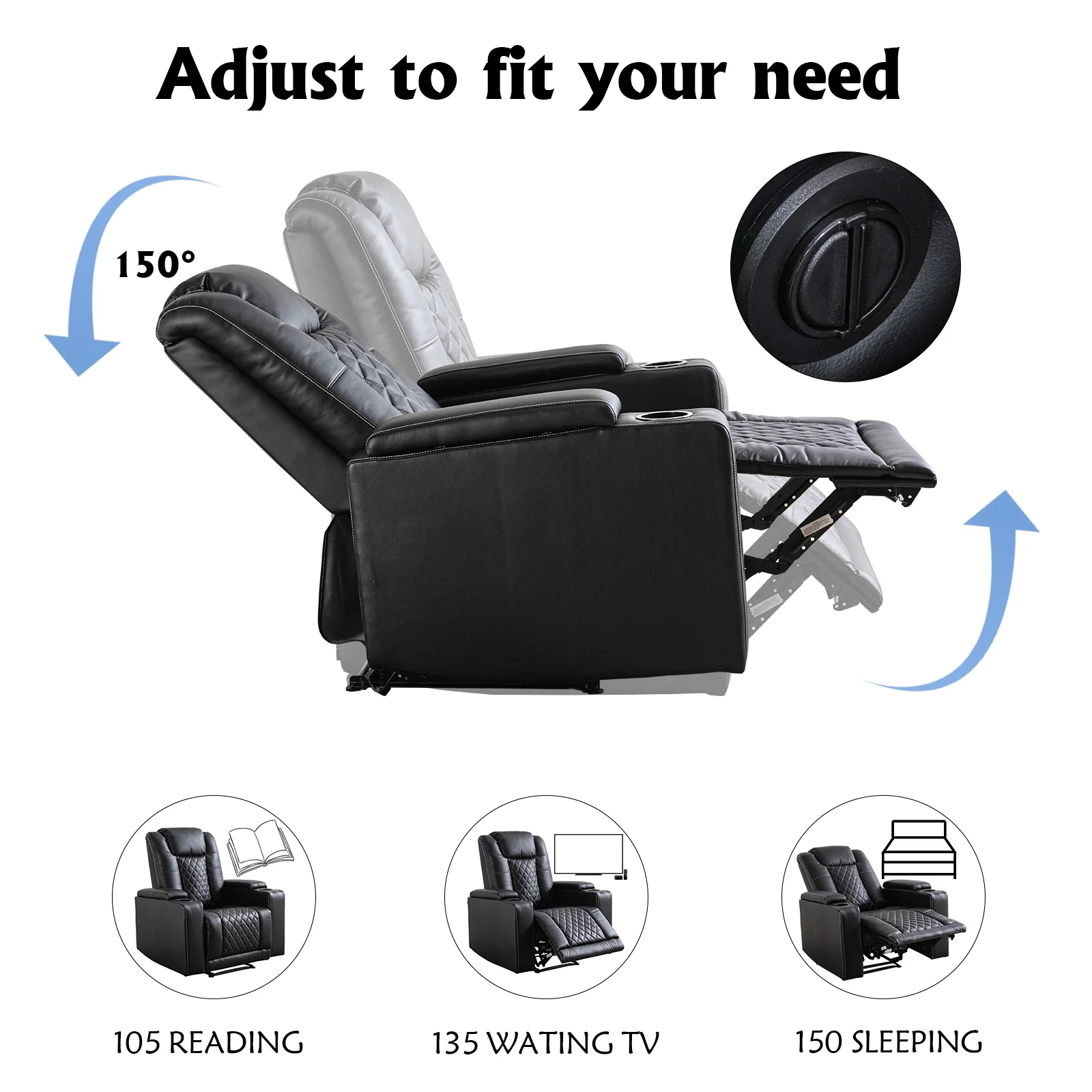 Bonzy Home Electric Power Recliner Chair with USB Ports and Cup Holders, Home Theater Seating with Hidden Arm Storage,Black