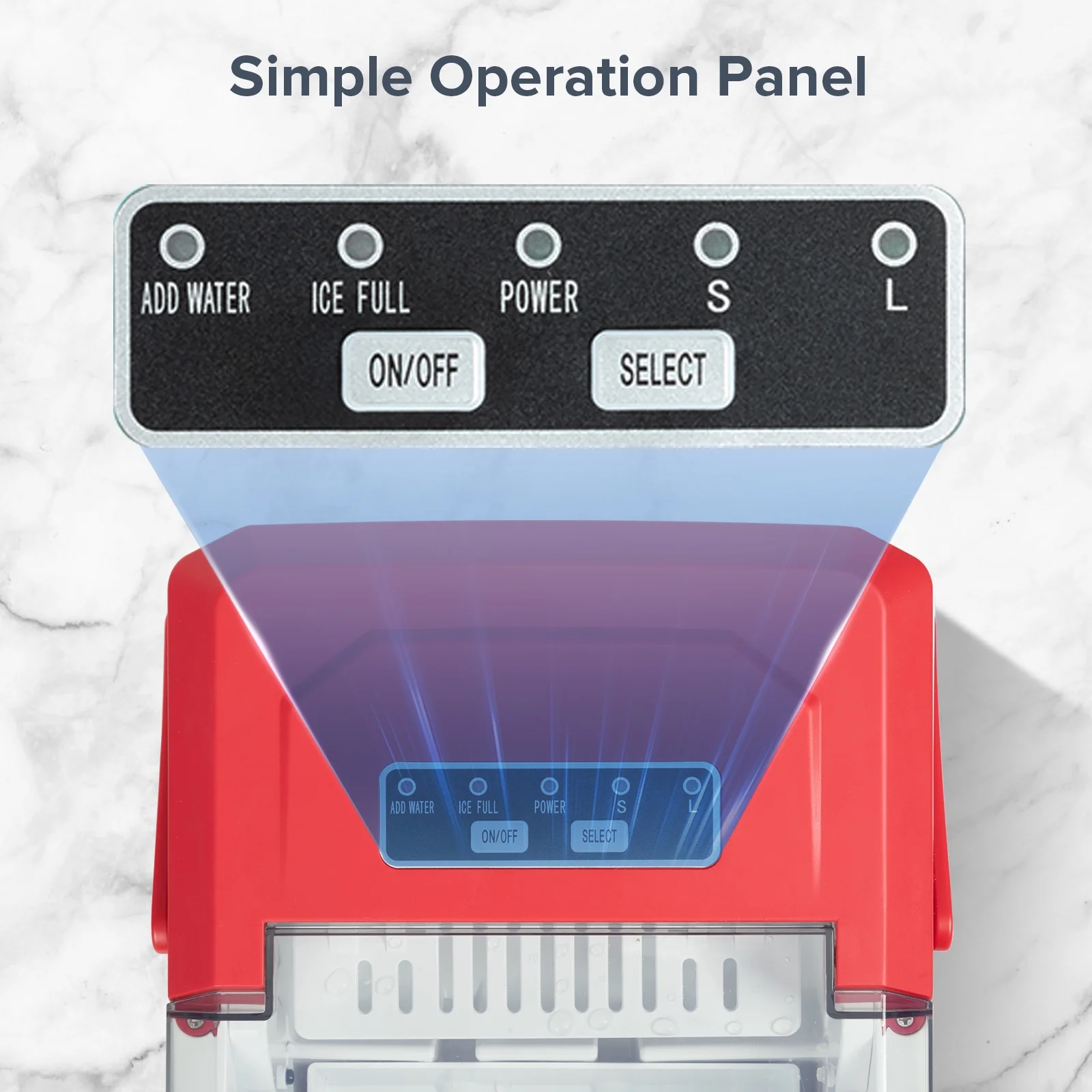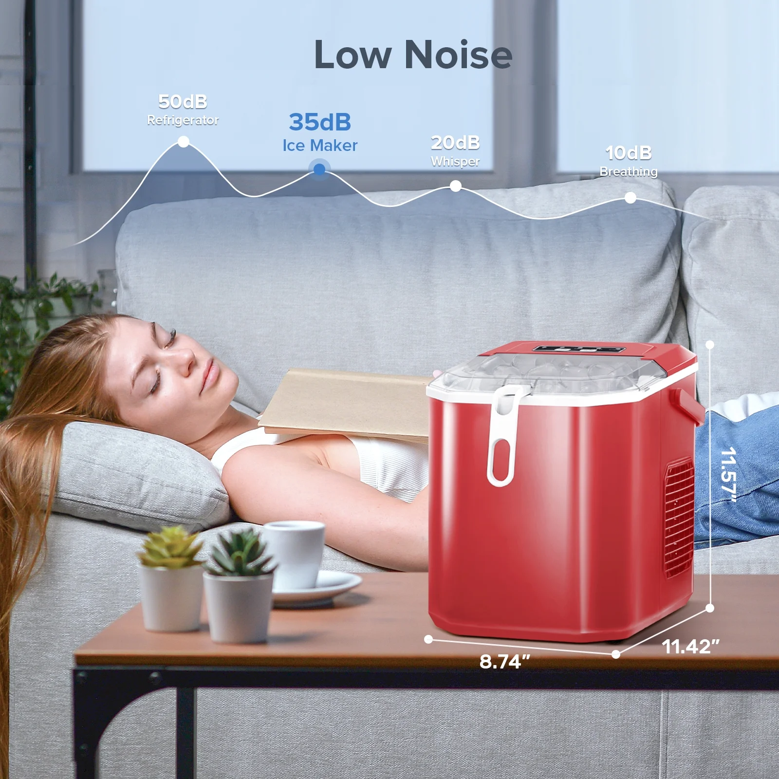 Auseo Countertop Ice Maker, Self-cleaning Portable Ice Maker Machine with Handle and Ice Scoop, Bullet Ice Cubes, 9Pcs/8Min 26Lbs/24H for Home/Office/Bar/Party (Red)