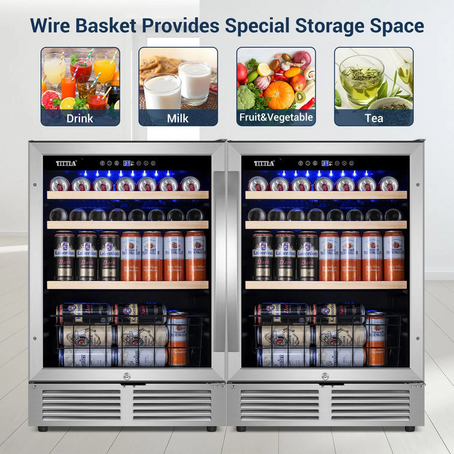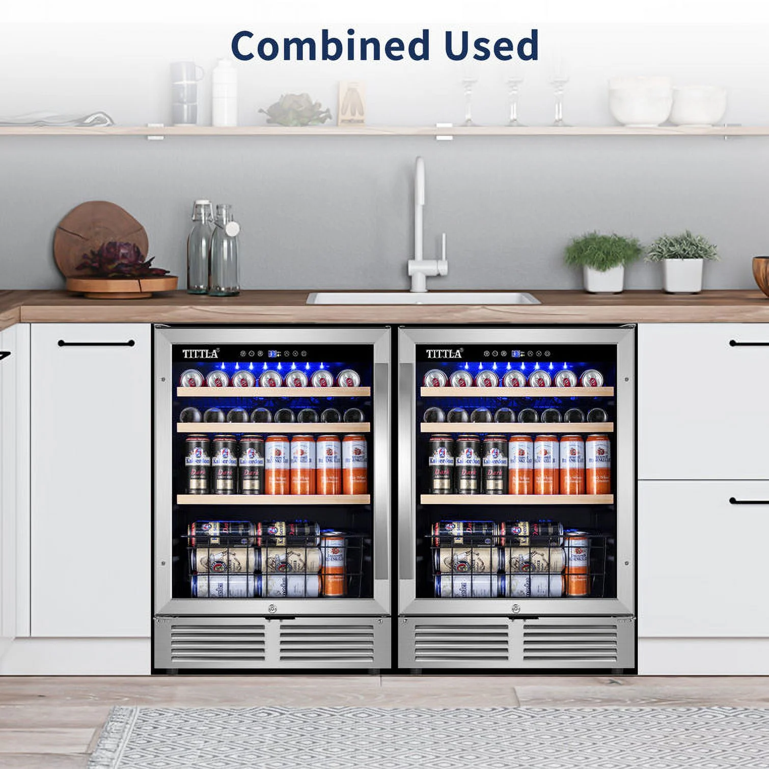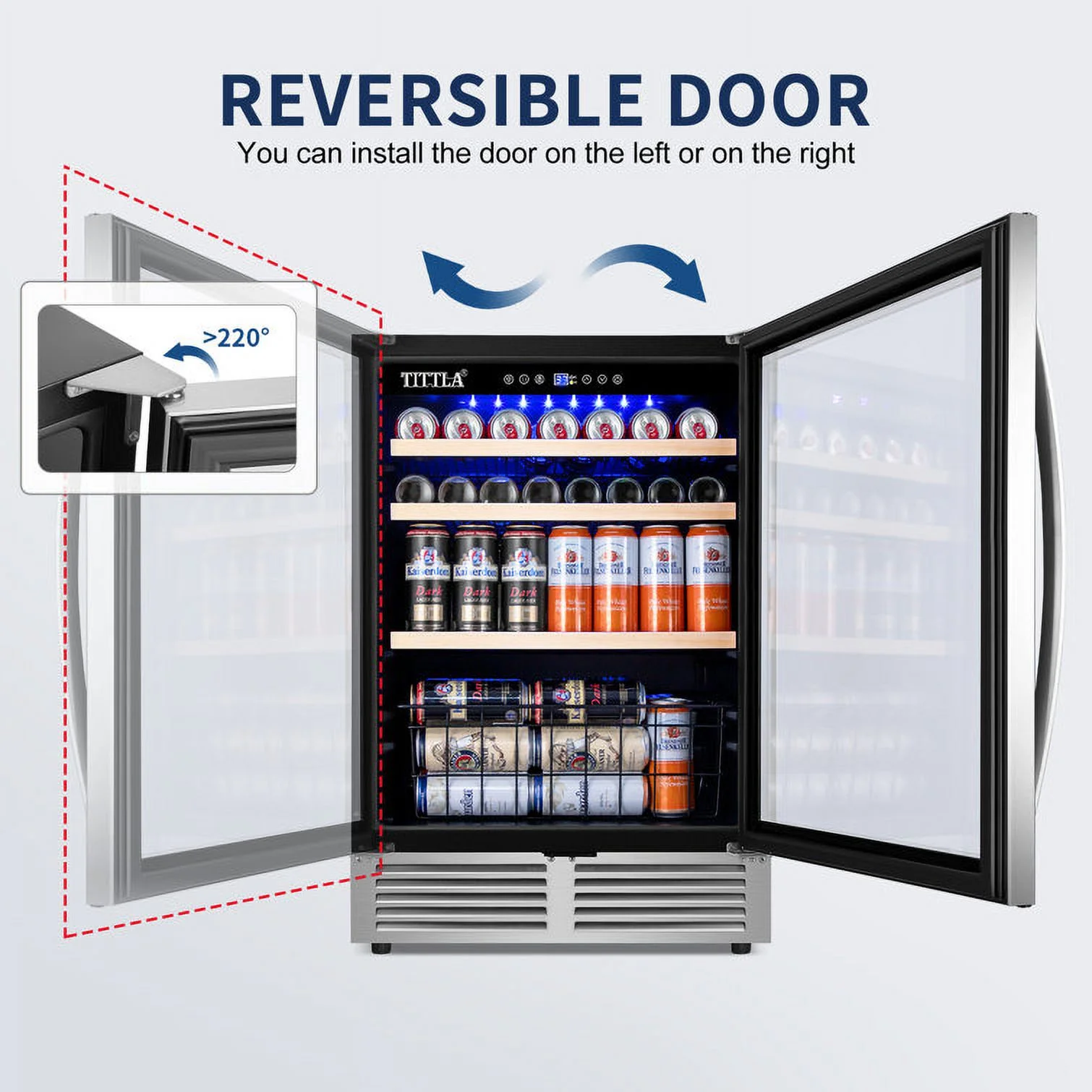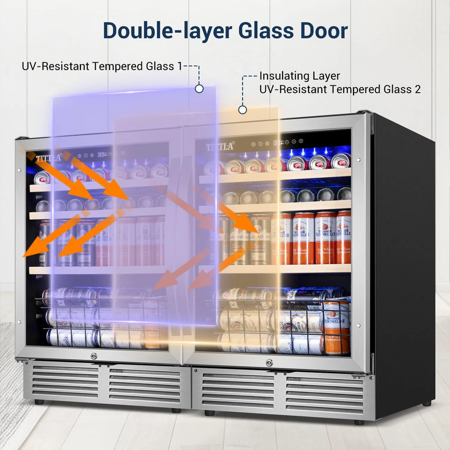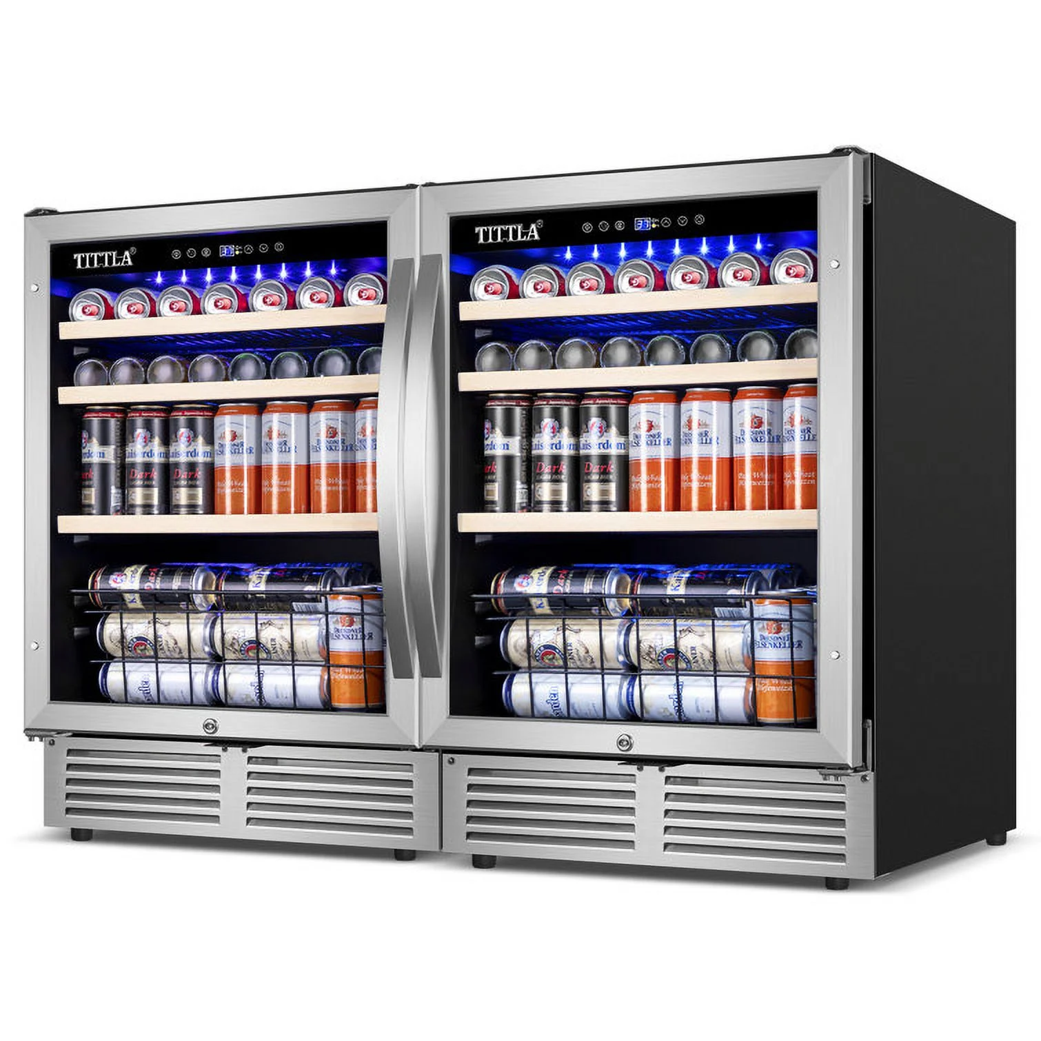 Tittla Beverage Refrigerator,300 Can 48"Beverage Fridge Freestanding/Built-in Reversible Door Hinge Beverage Cooler