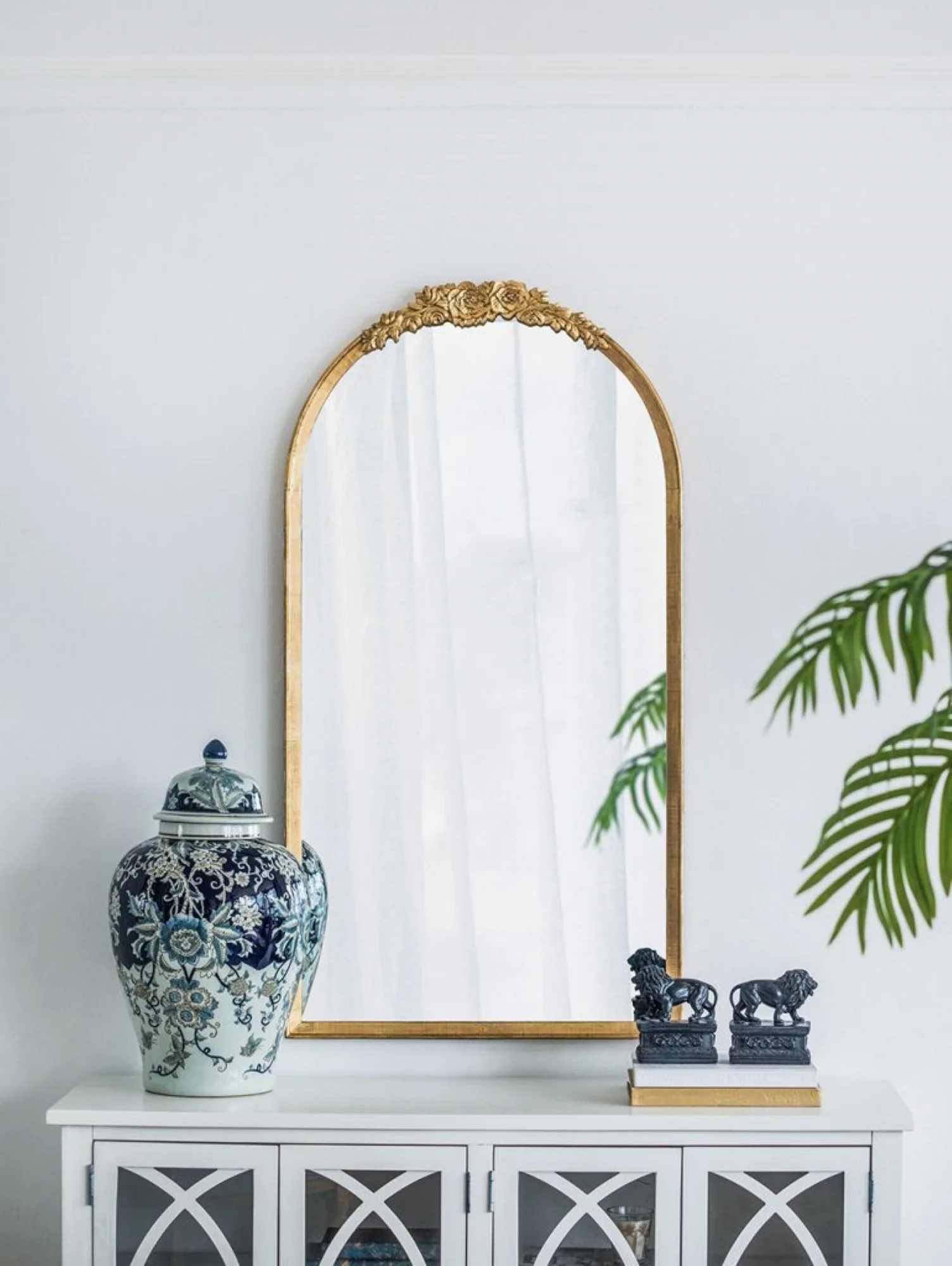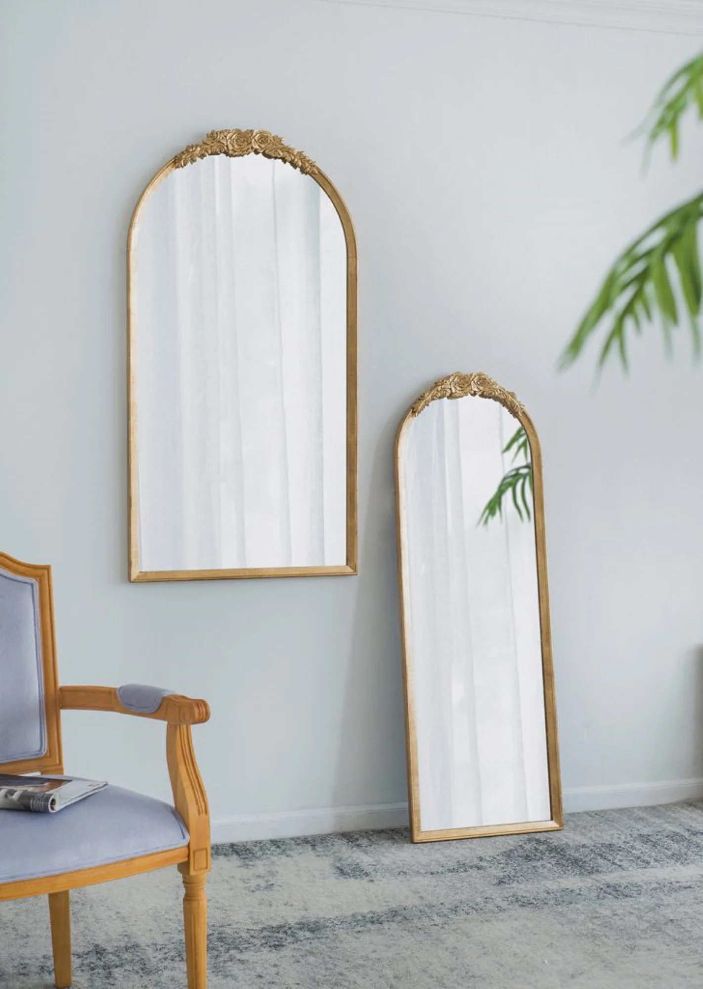 CC Home Furnishings Floral Crest Wooden Floor Mirror - 4.25" - Gold