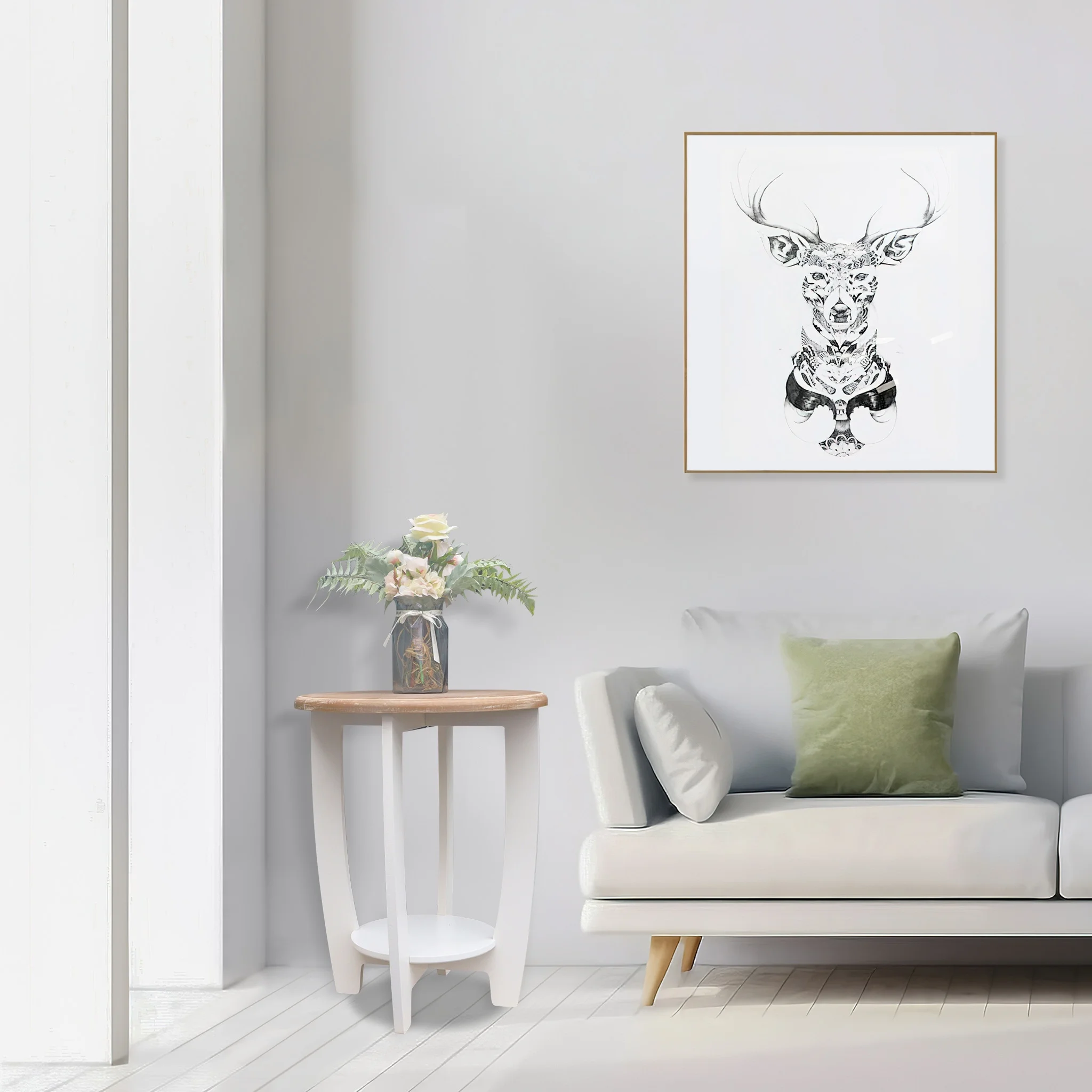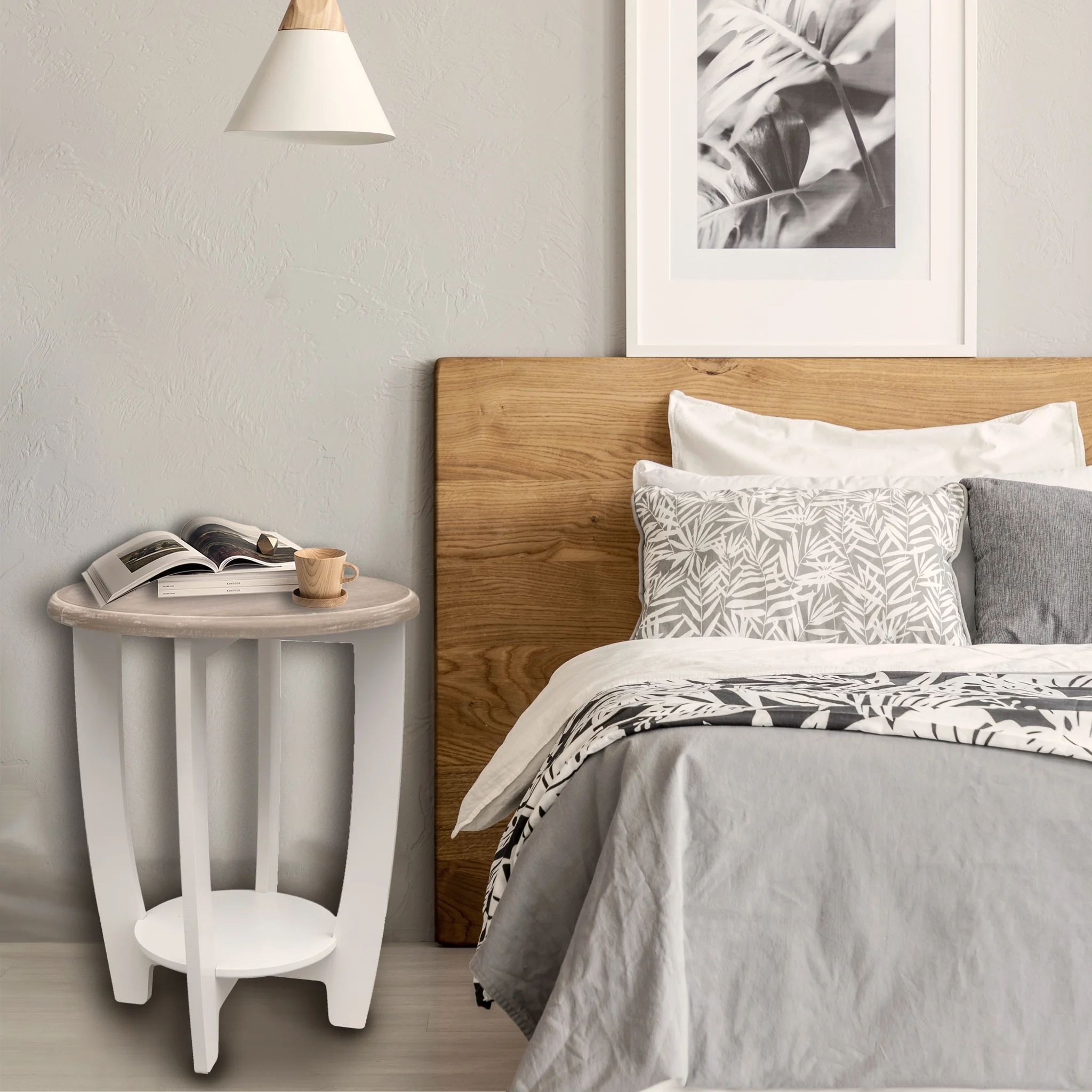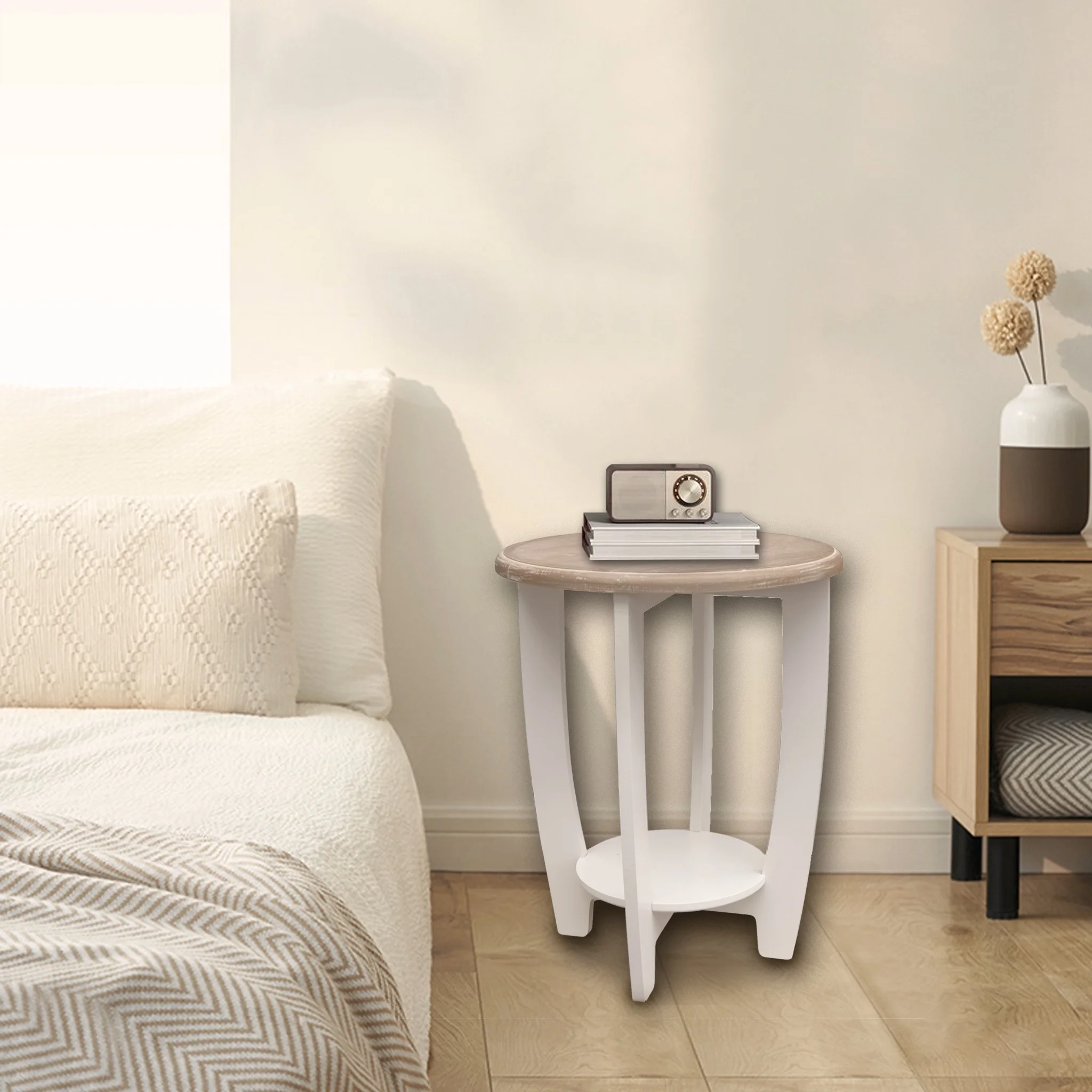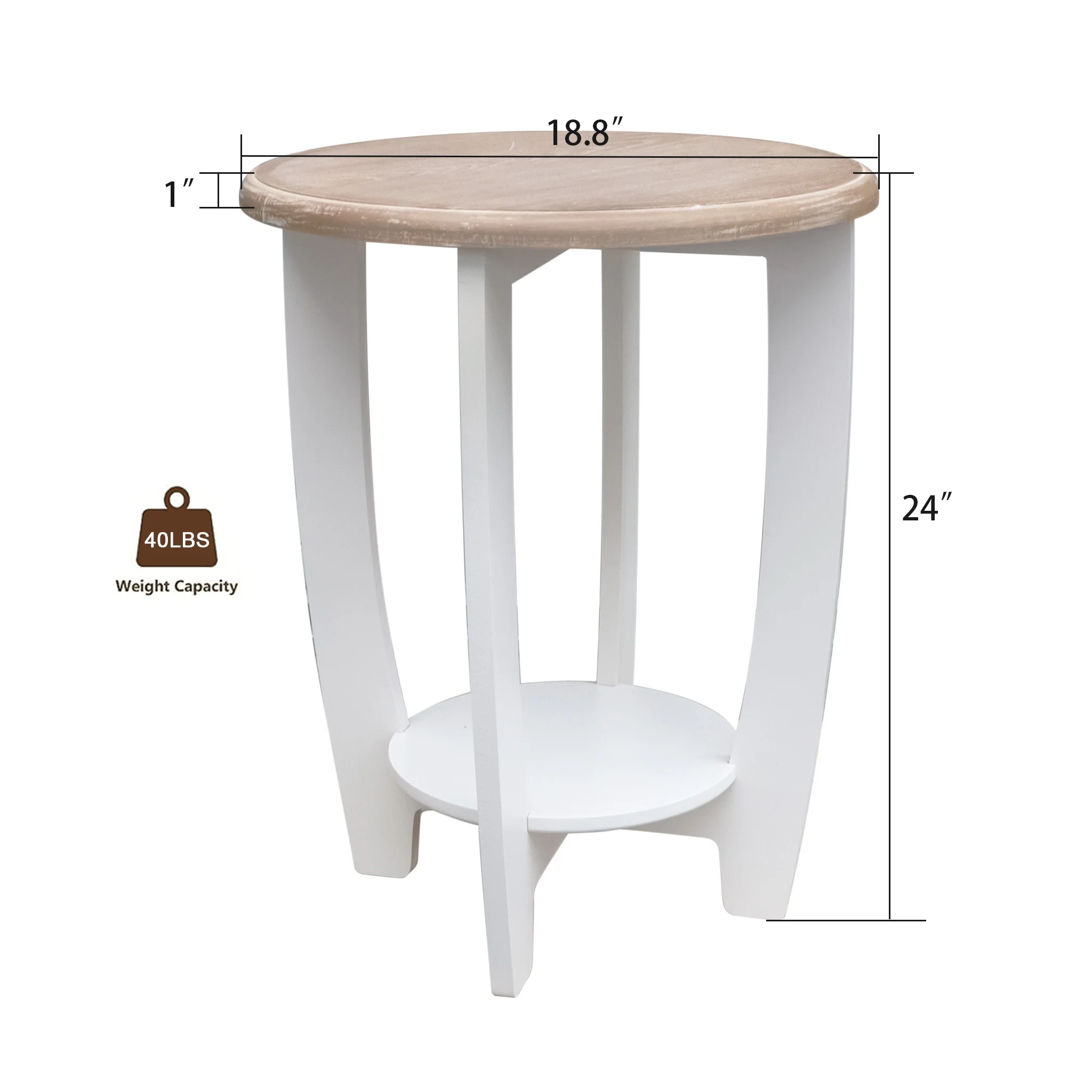 Parisloft Farmhouse End Table, 2 Tiers Wooden Round Side Table for Living Room or Small Spaces, Cream White and Brown, 19 x 19 x 24 inches