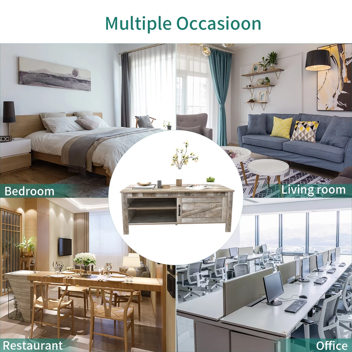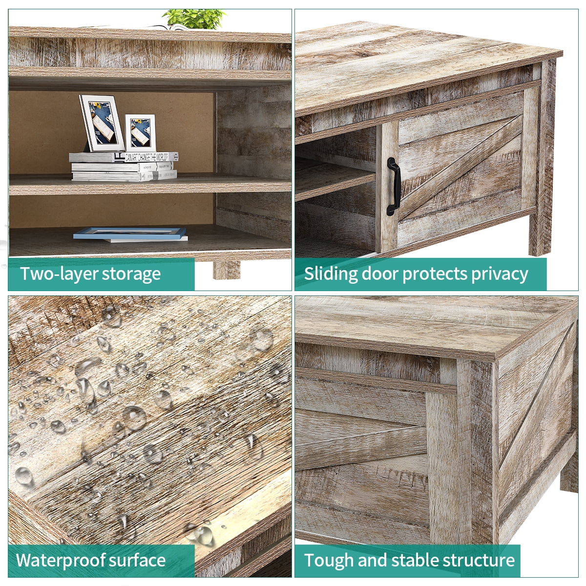 DEXTRUS Coffee Table with Storage, Farmhouse Wood Sofa Center Table with Sliding Door and Adjustable Shelf for Living Room Home Office, Gray