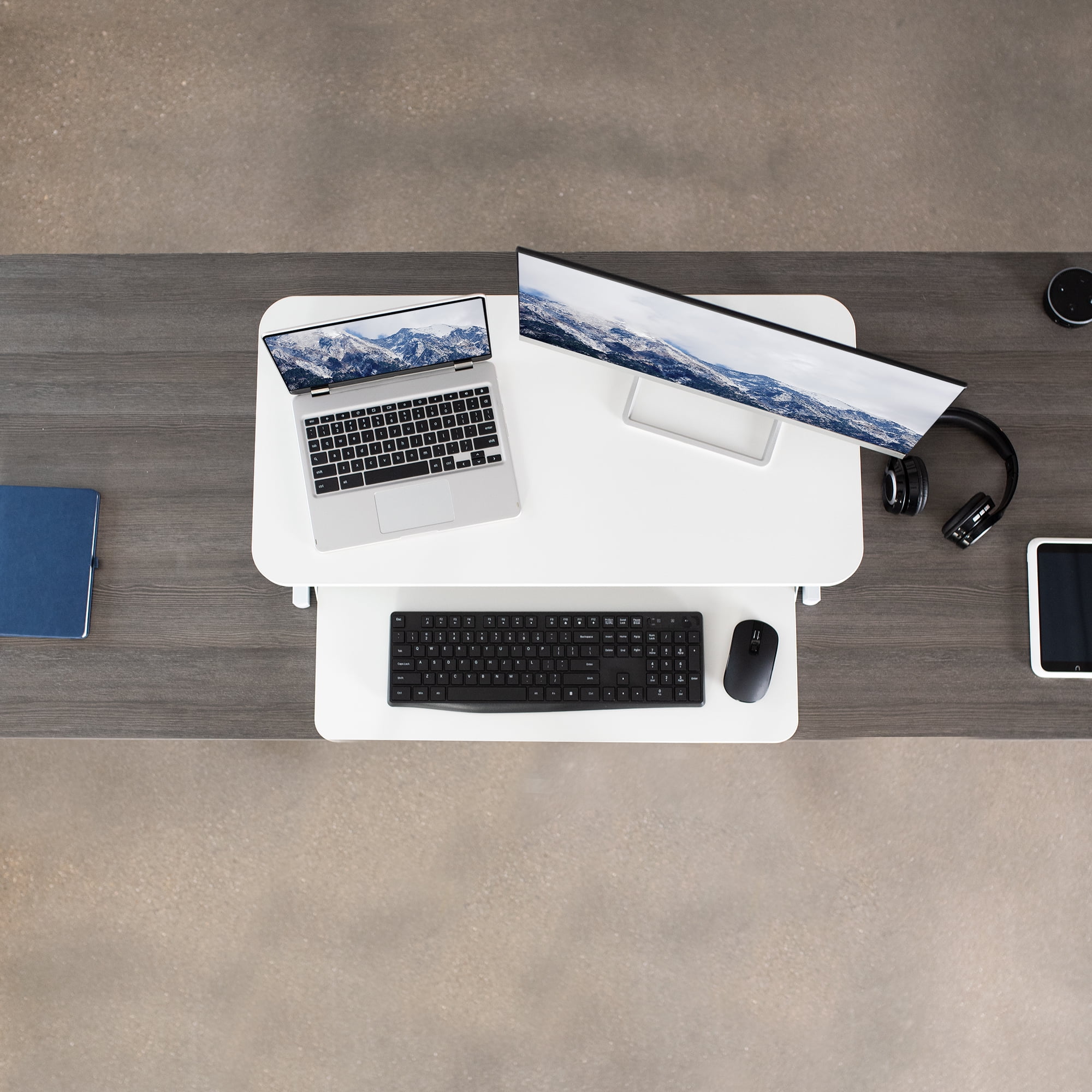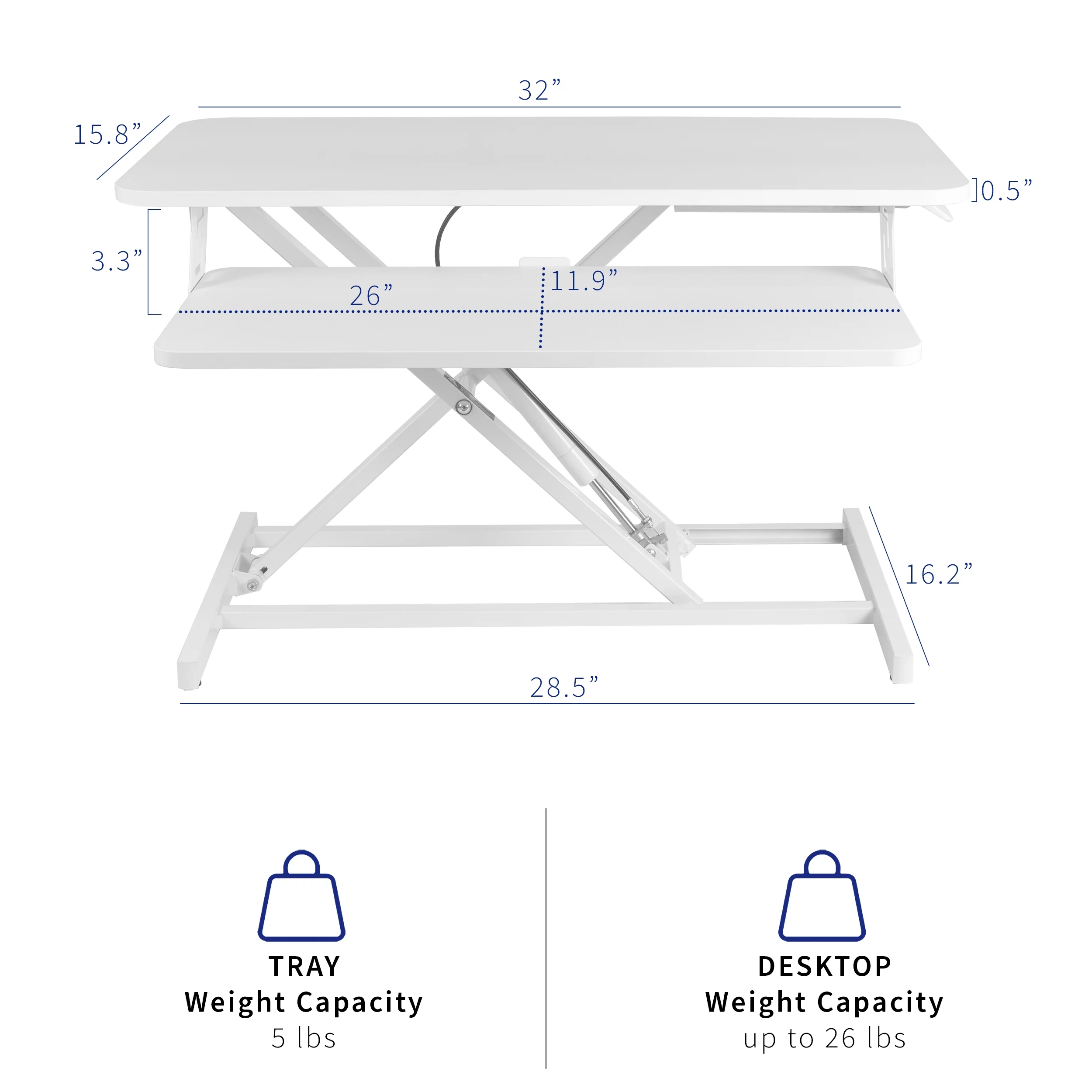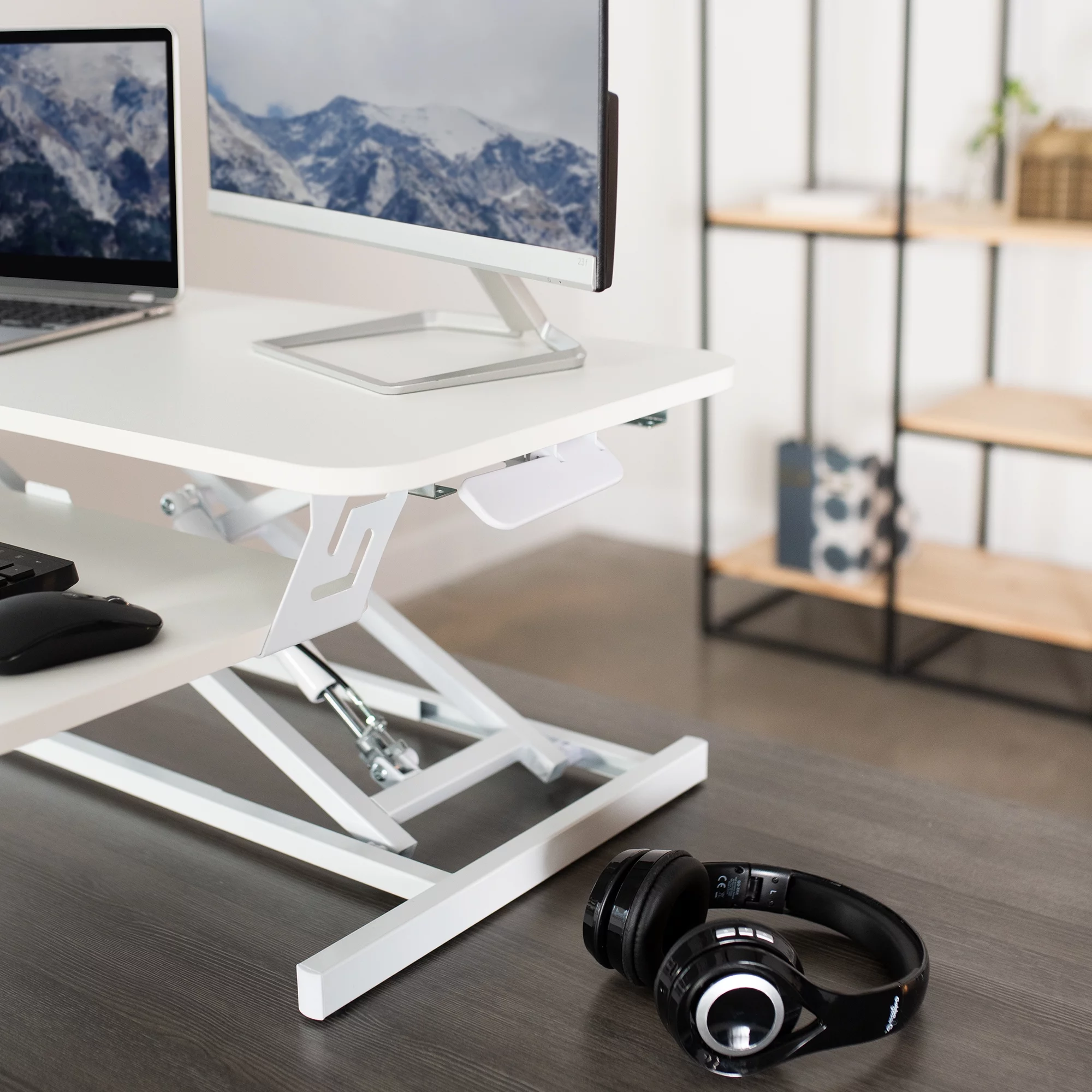 VIVO White Height Adjustable 32" Standing Desk Monitor Riser, Sit Stand Tabletop
