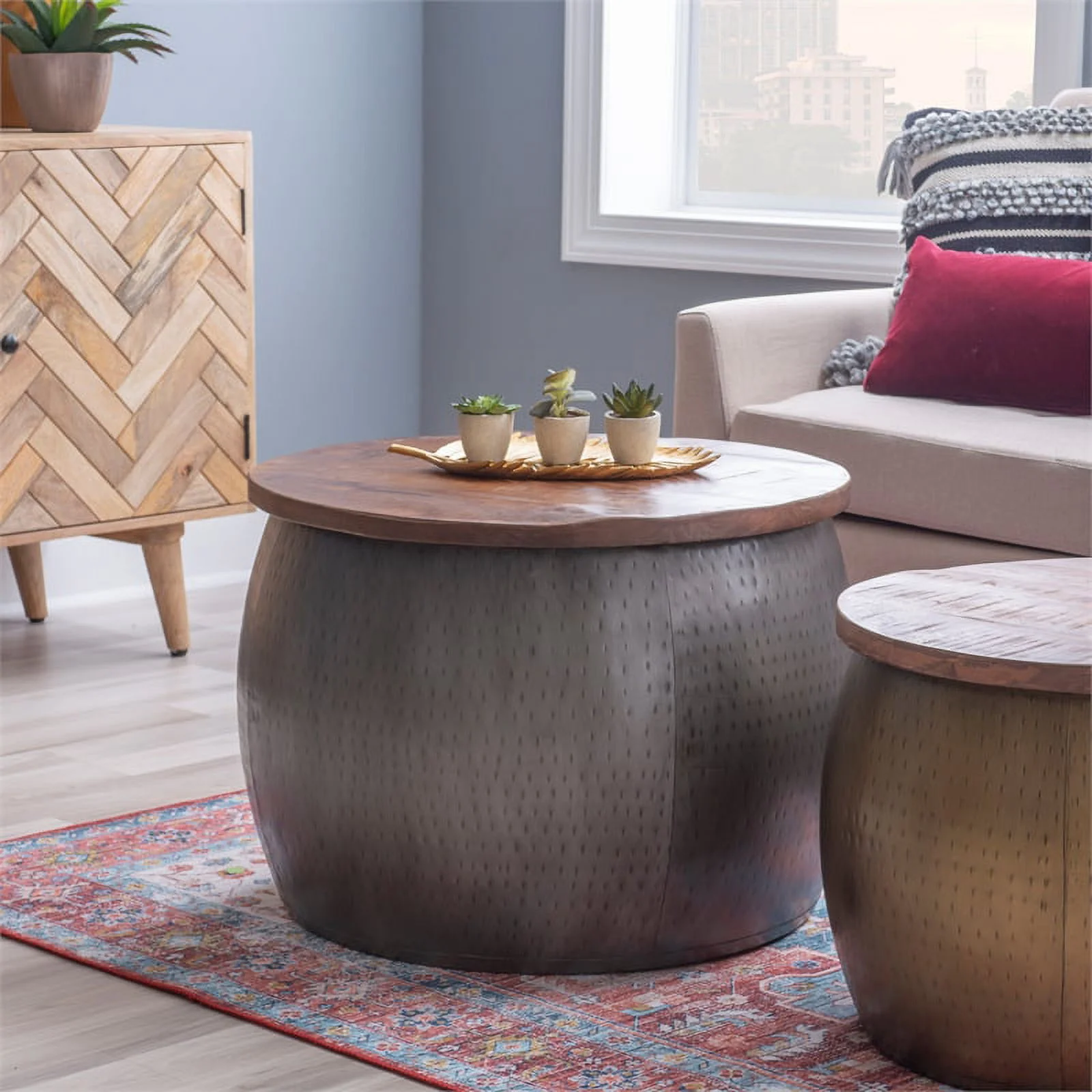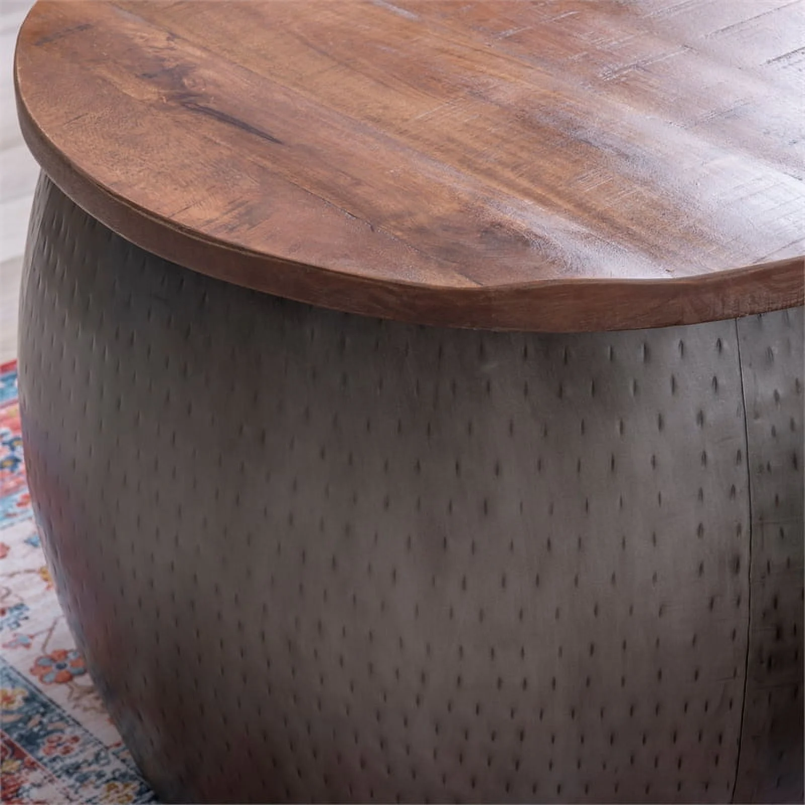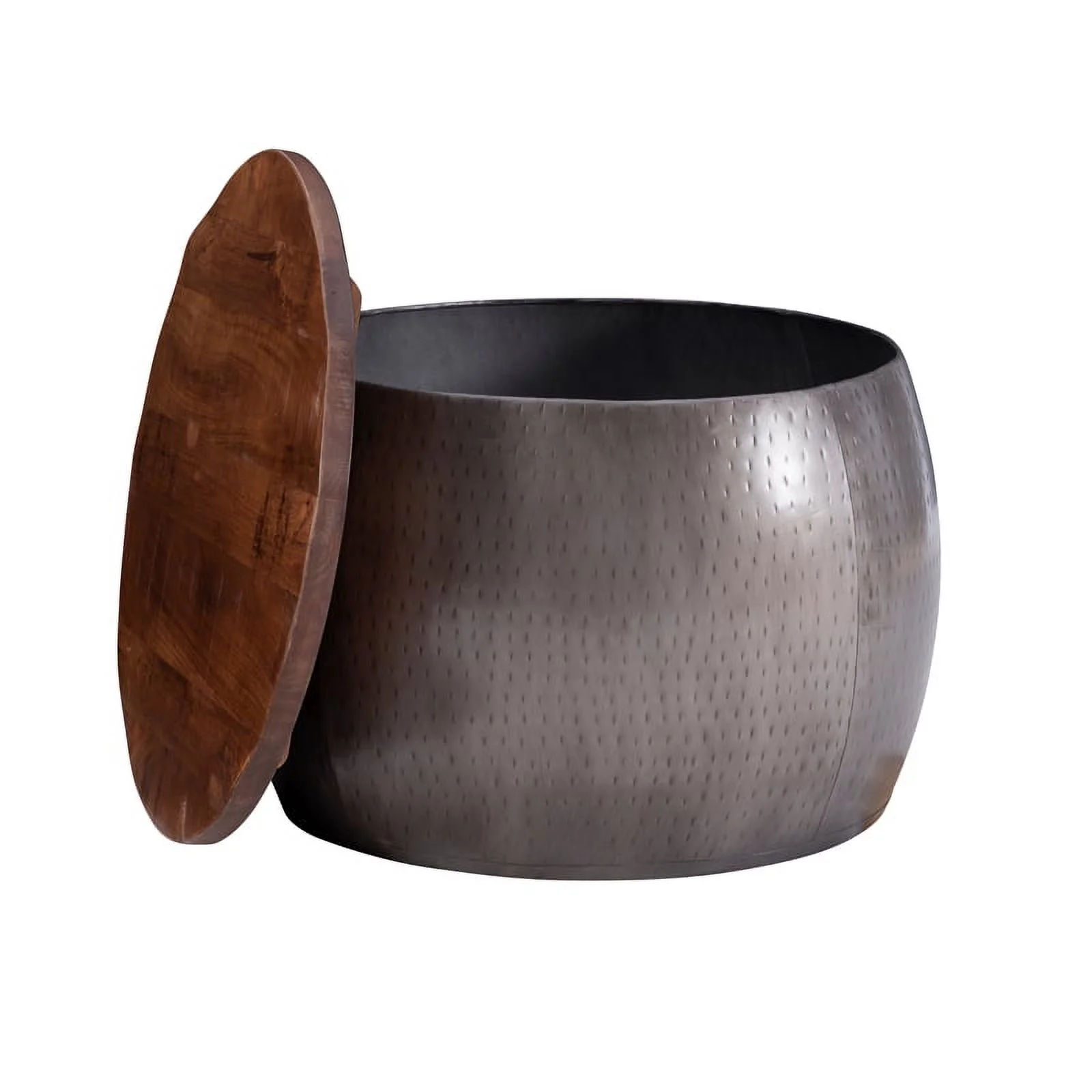 Pemberly Row Transitional Metal Drum Table with Storage in Pewter