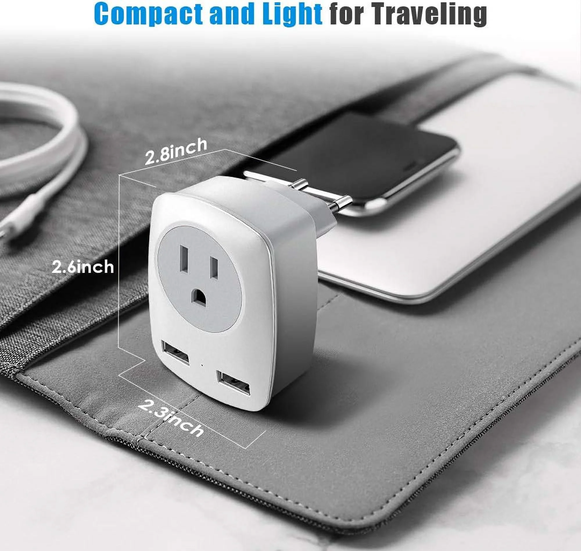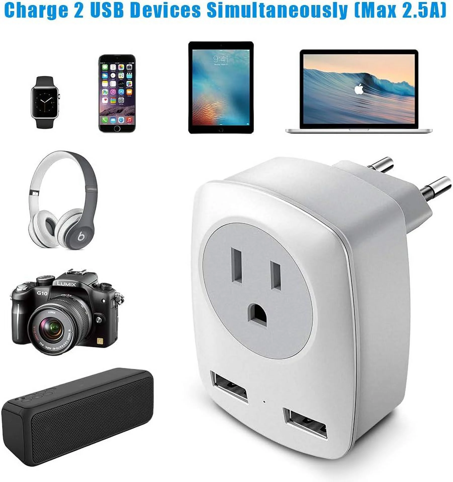 2Pack European Travel Plug Adapter (Not for UK), US to Europe Power Outlet Converter, USA to German Italy Spain France Greece Iceland Romania Russia Electrical Adaptor USB Wall Charger Type C (EU not UK)