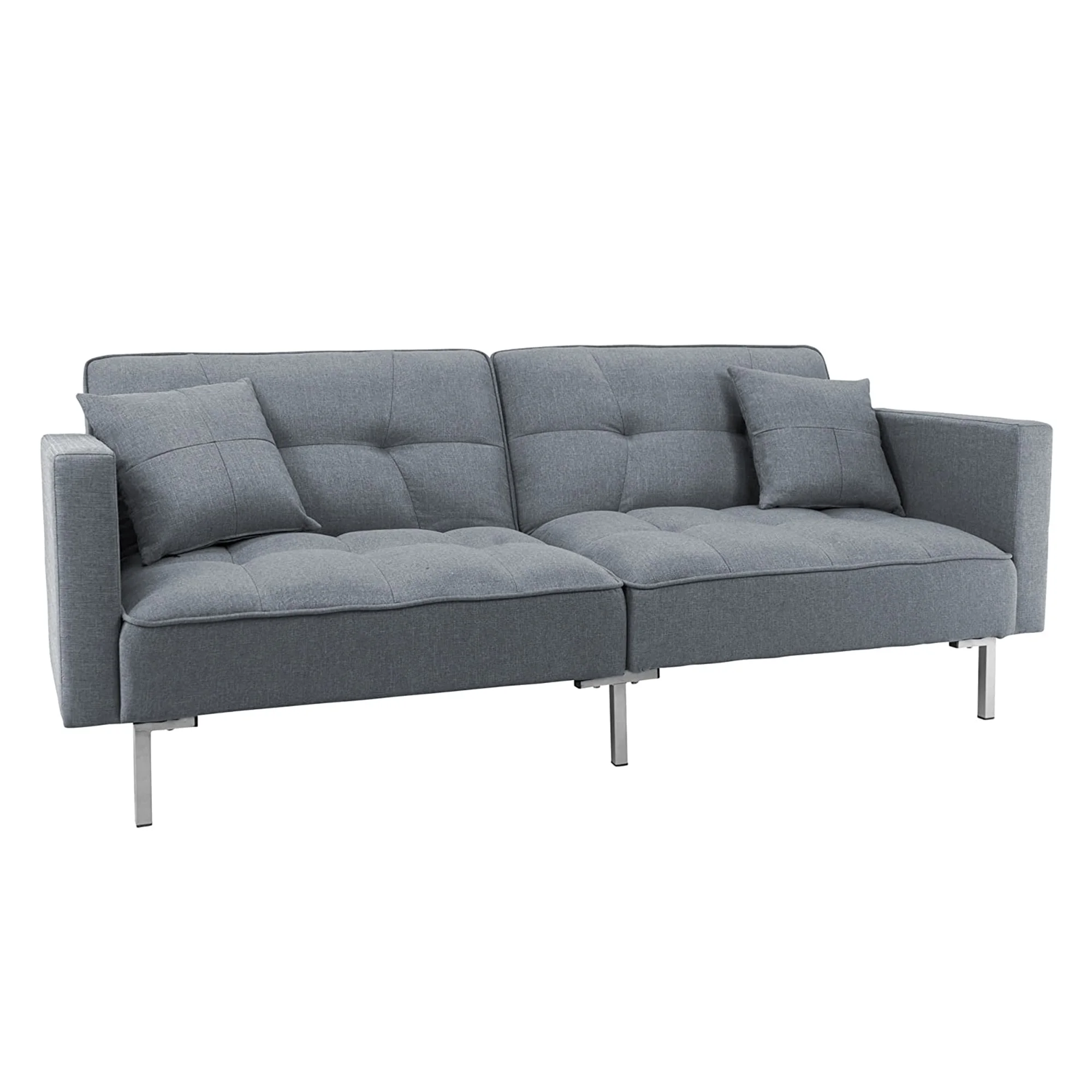 Modern Convertible Folding Futon Sofa Bed Comfort Linen Tufted Loveseat with Adjustable Back and Metal Leg Support, Dark Gray