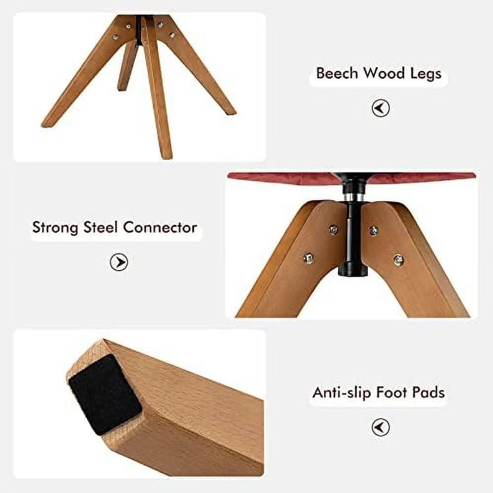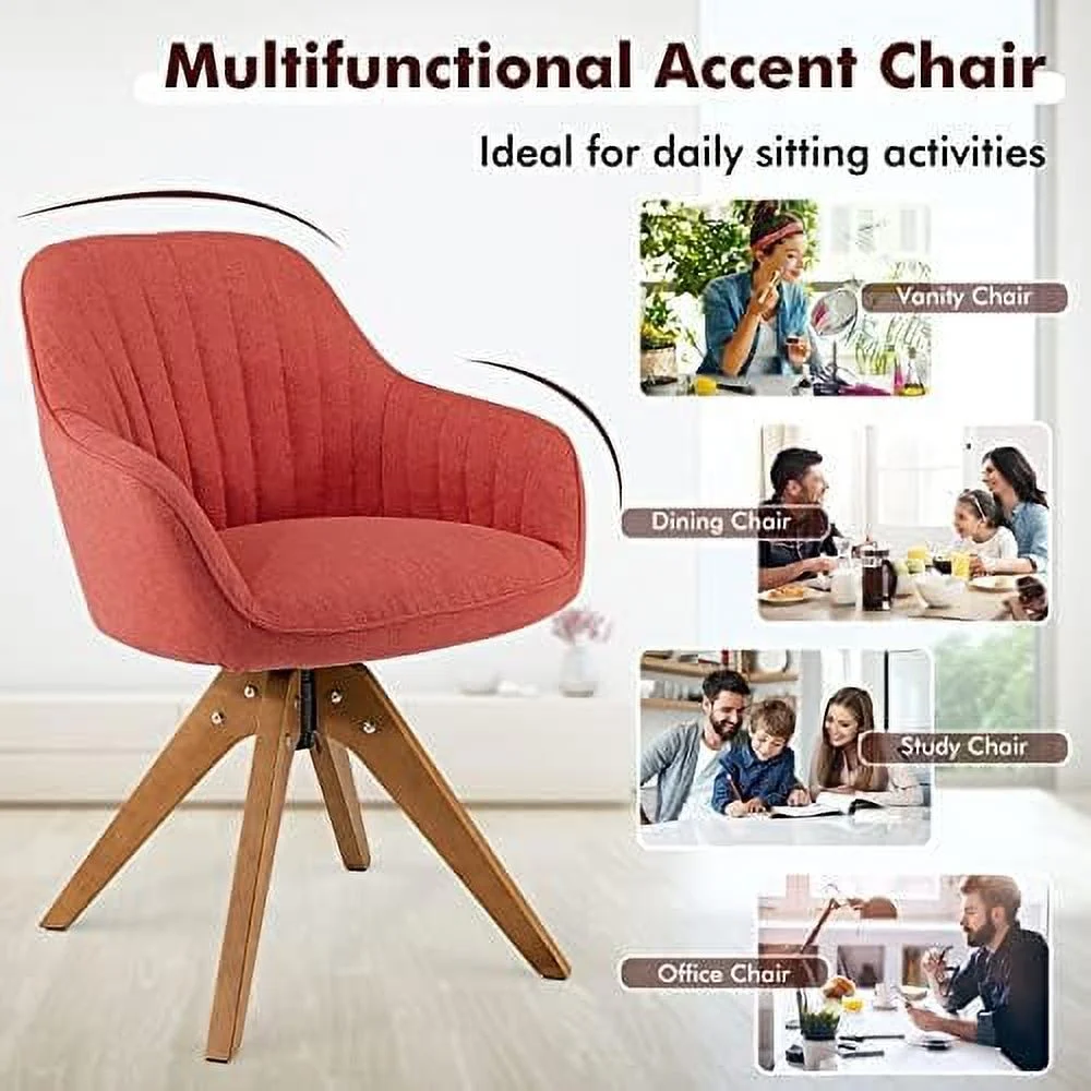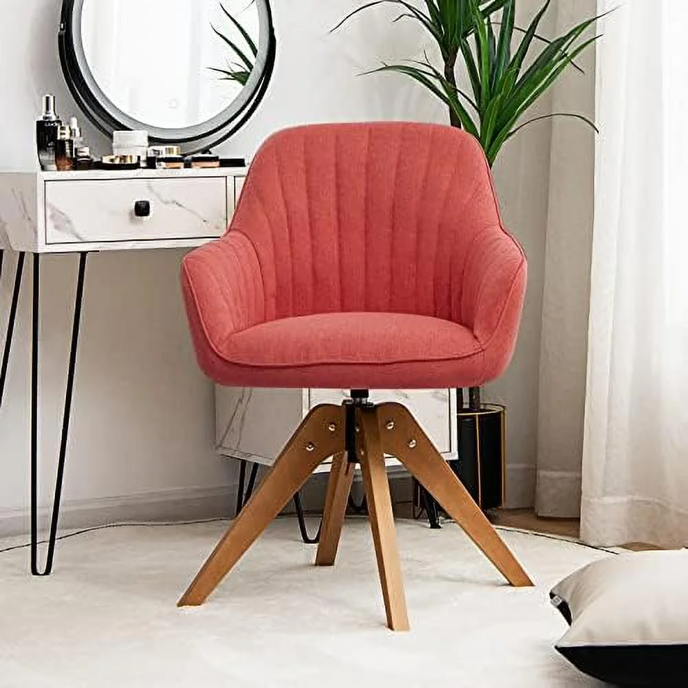 KHBIULIFE Desk Chair No Wheels Super Easy to Install Mid Century Computer Desk Armchair with Linen Fabric and Soft Sponge Filling Swivel Accent Chair for Home Office Red