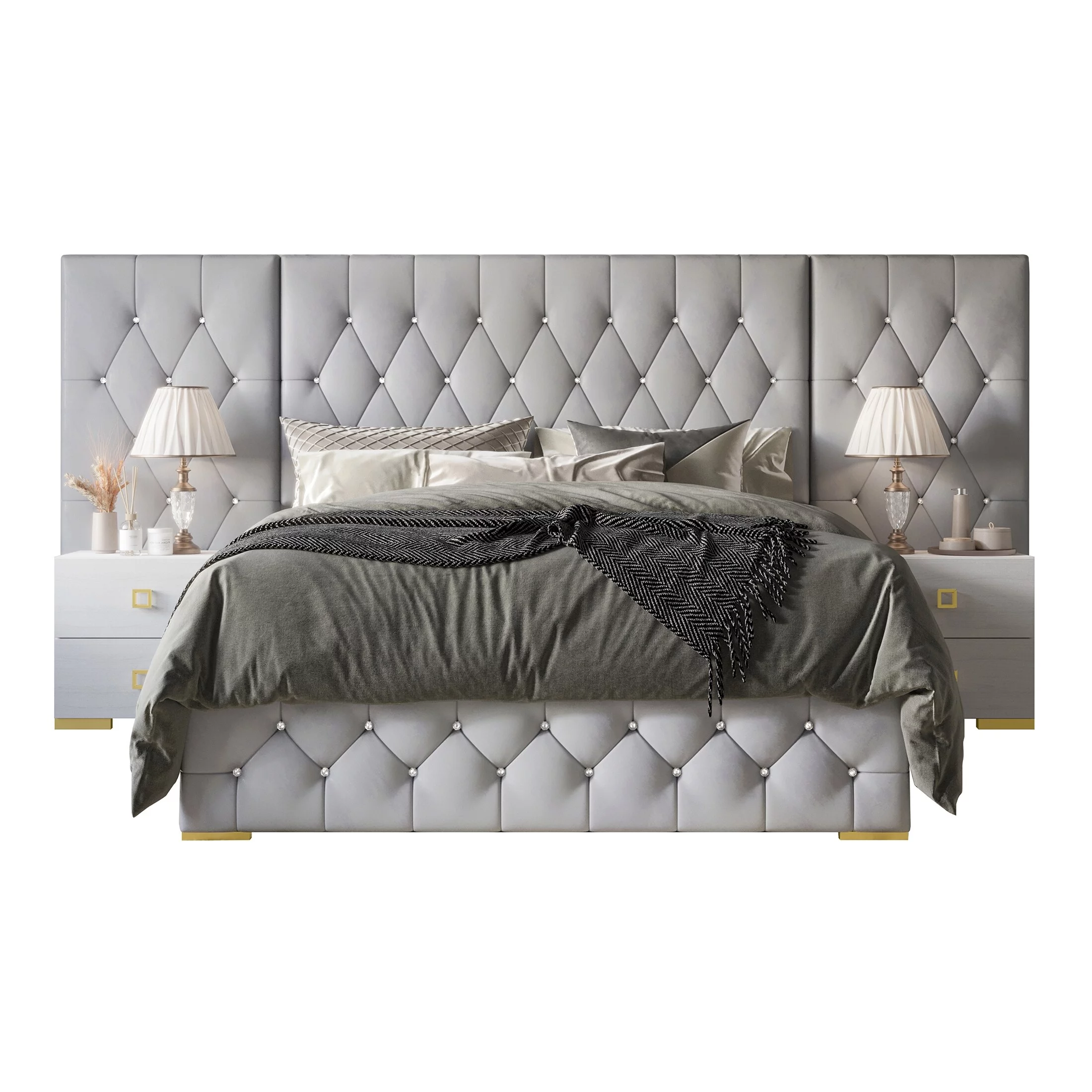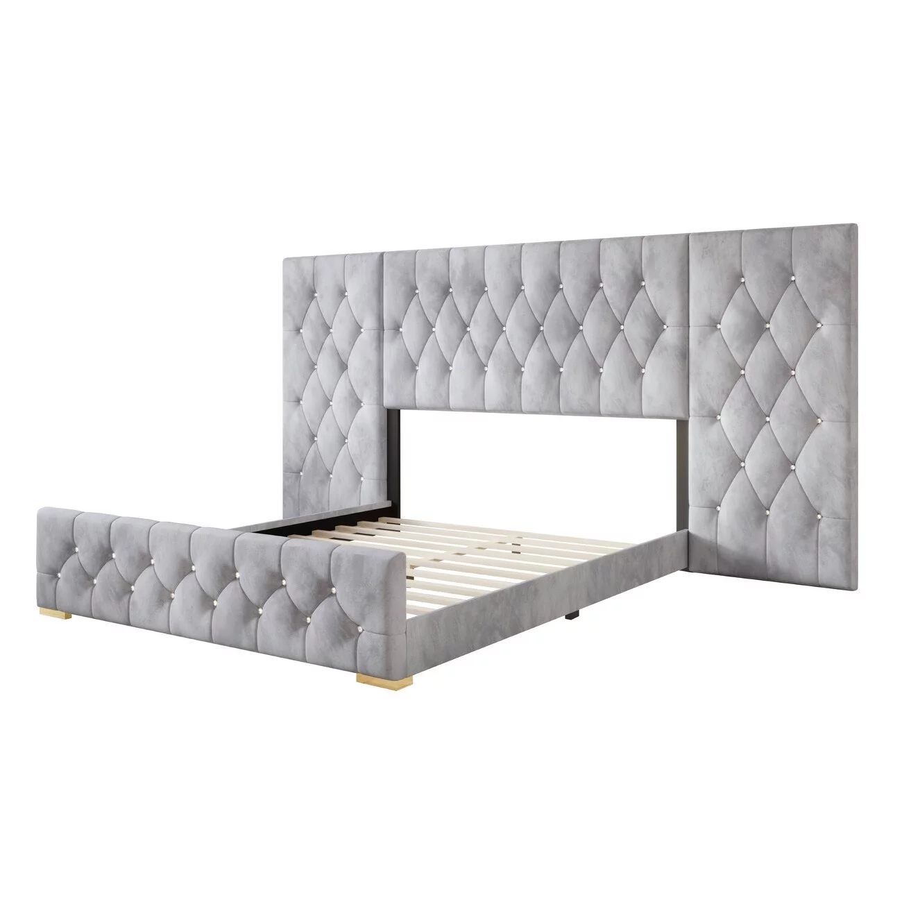 CraftPorch Luxurious Velvet Tufted Platform Bed with Wall Panels Black - King