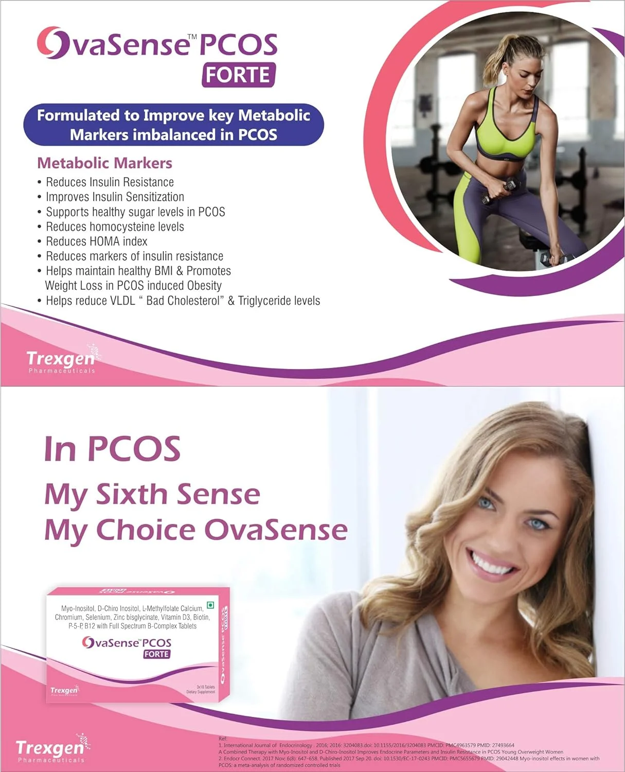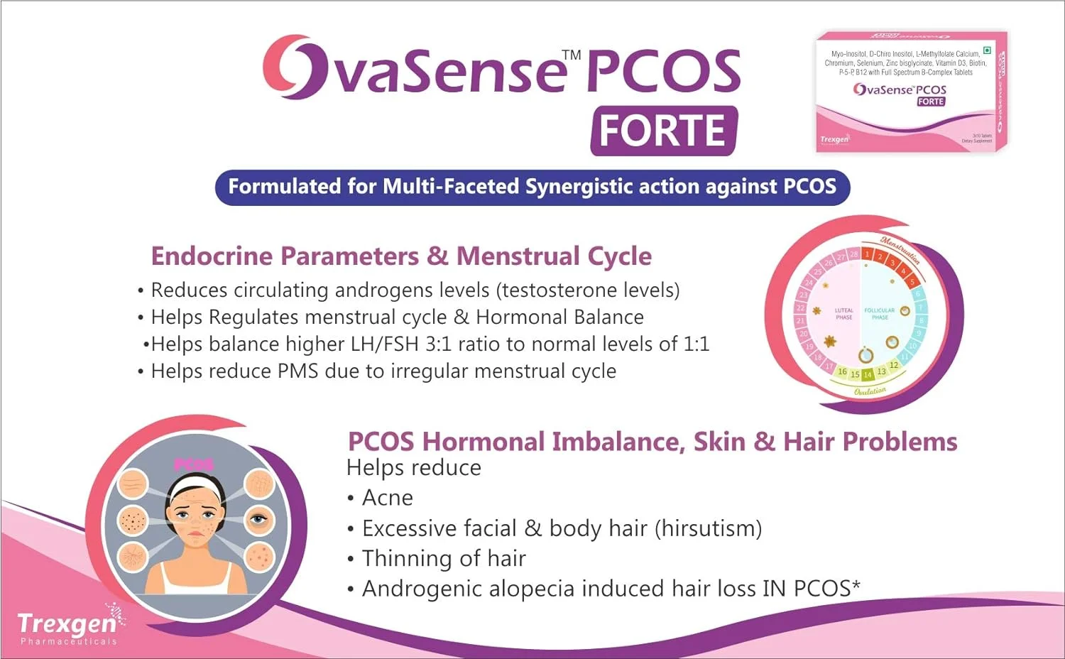 OvaSense-PCOS Forte Synergistic Myo-inositol 550mg & D-Chiro Inositol 13.8mg, Cholecalciferol, B-complex,Zinc, Chromium, Selenium & Micronutrients 30 Tablets