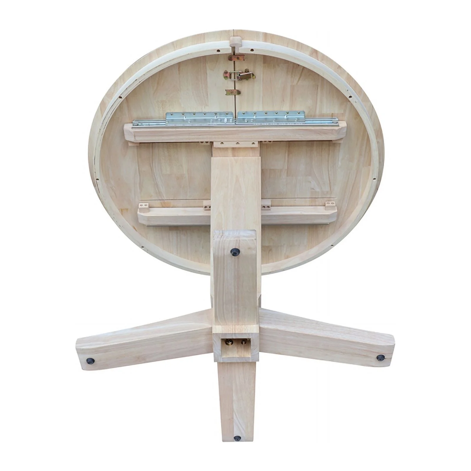 36 in Solid Wood Round Top Pedestal Dining Table with 12 in Leaf in Unfinished