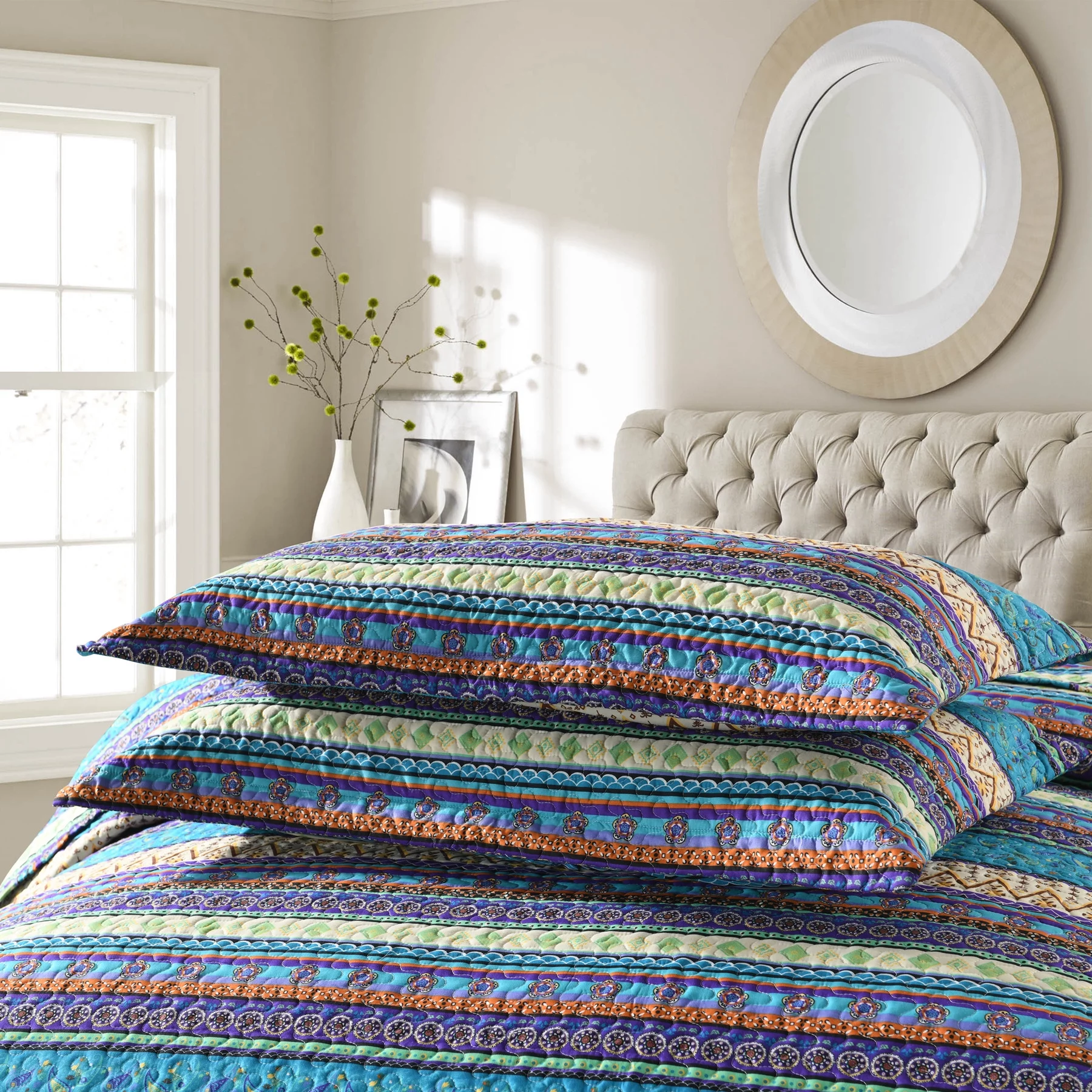 MarCielo 3 Piece Bohemian Lightweight Quilt Set Rustic Lodge Cabin Quilt Quilted Bedspread Printed Quilt Bedding Throw Blanket Coverlet Lightweight Bedspread King Size BY011