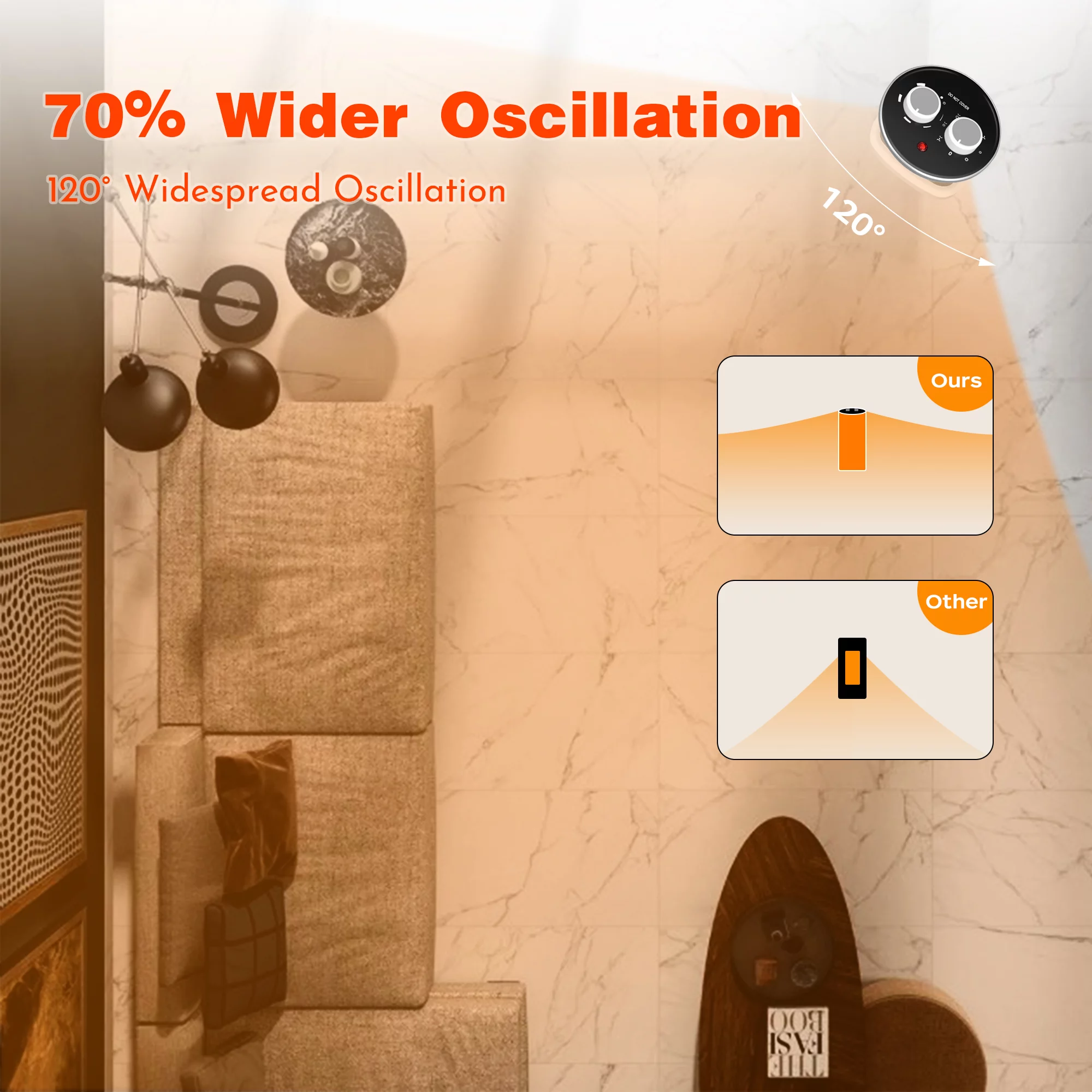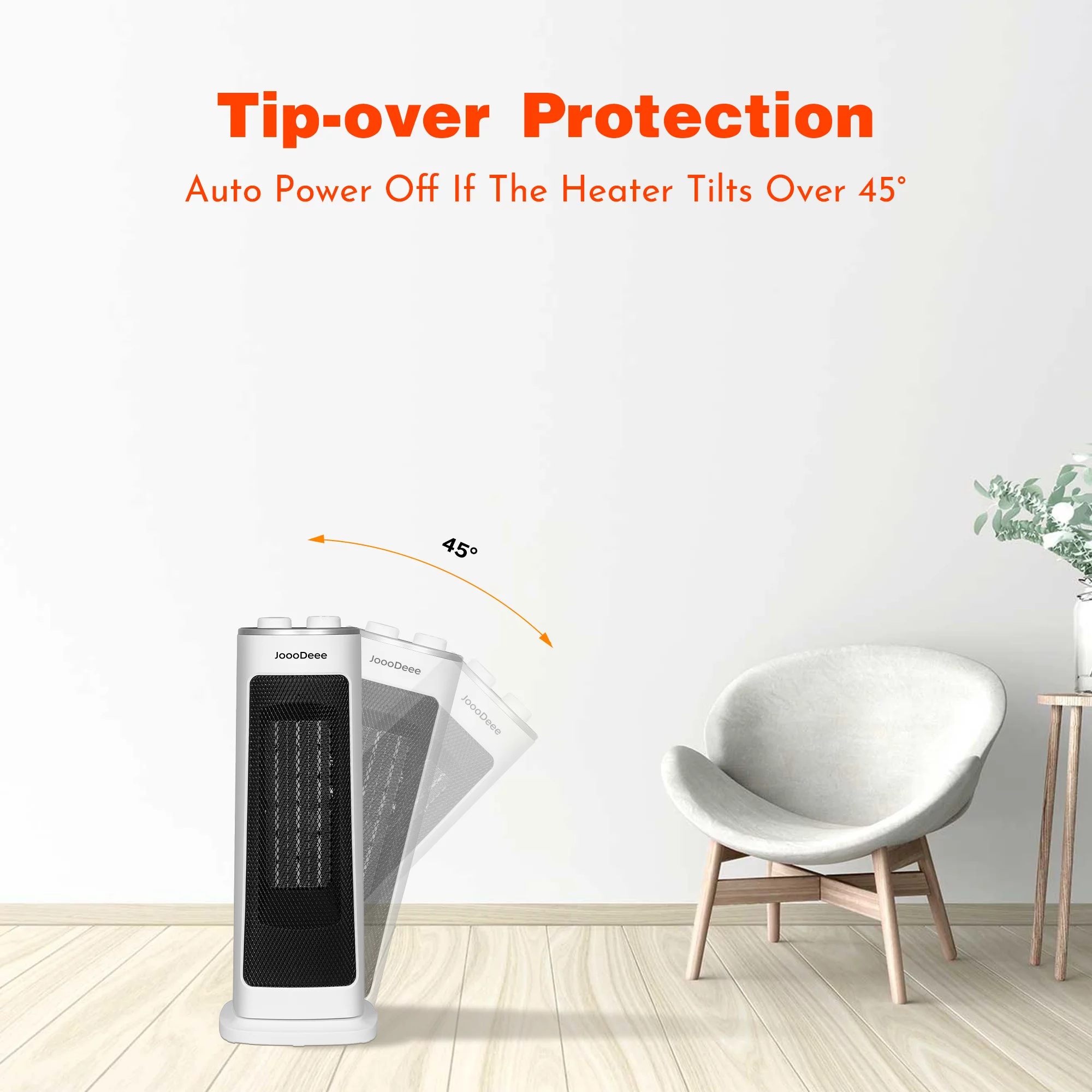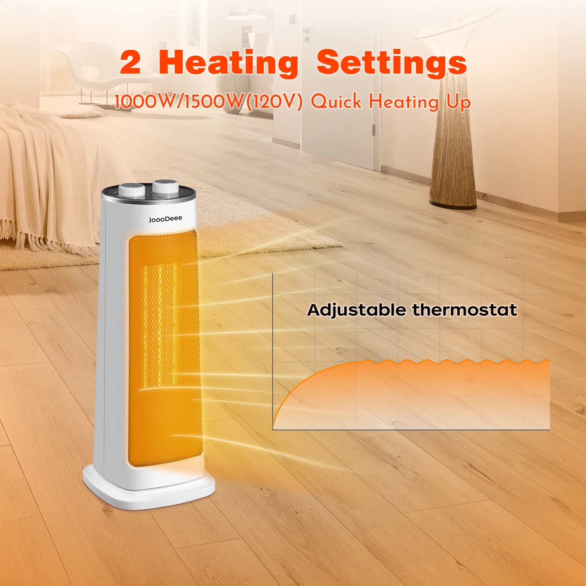 JoooDeee 17" Space Heater, Fast Quiet Heating, 1500W&1000W Modes, Overheating & Tip-Over Protection, Oscillating Ceramic Heater for Bedroom, Office, and Indoor Use, White&Black