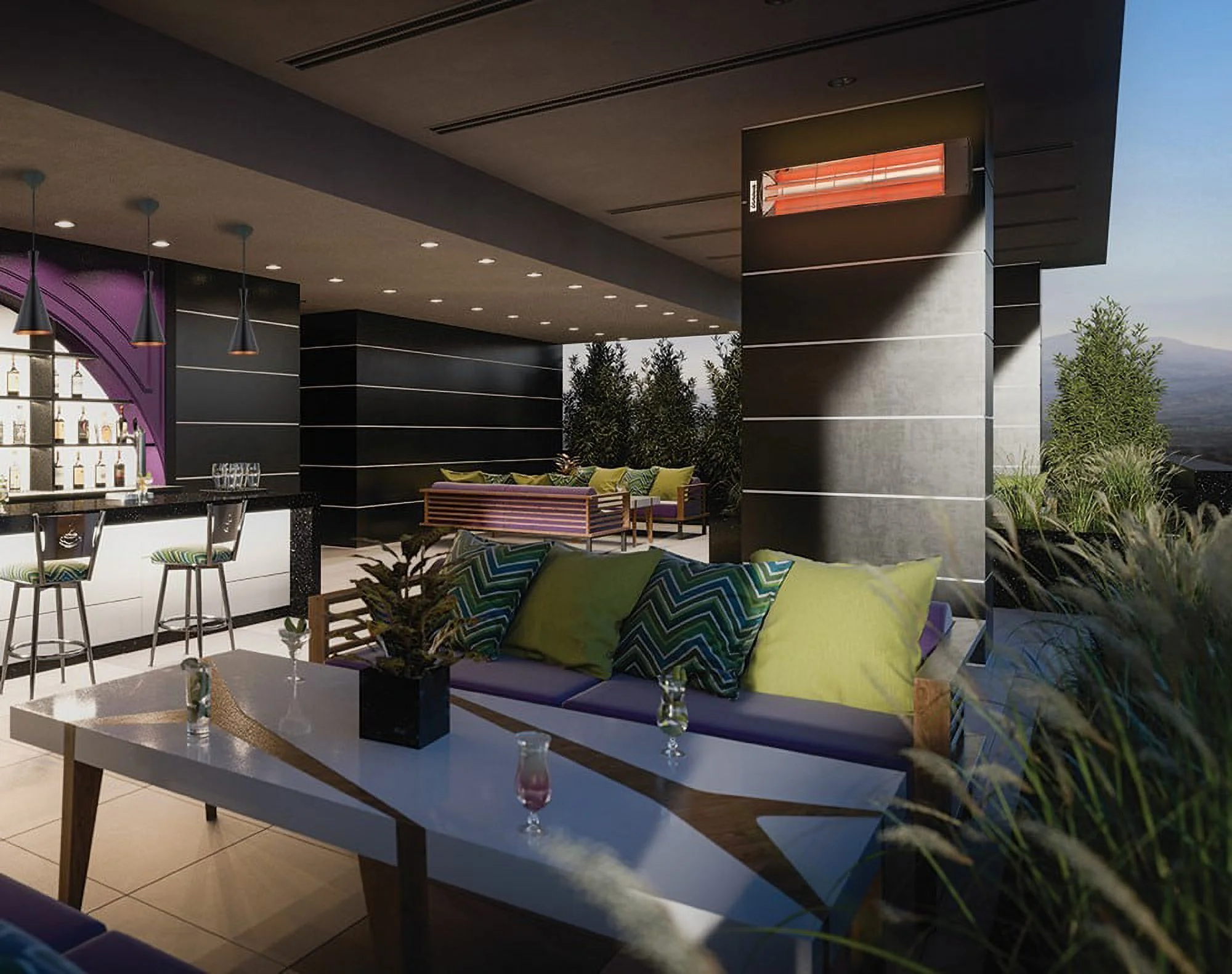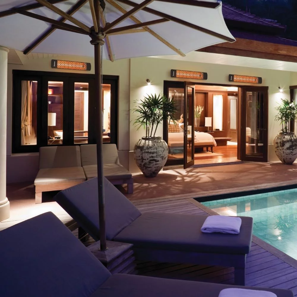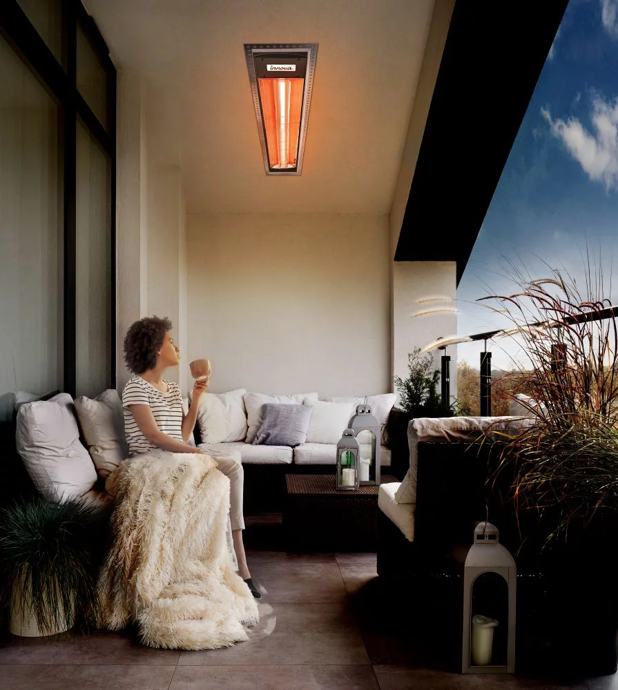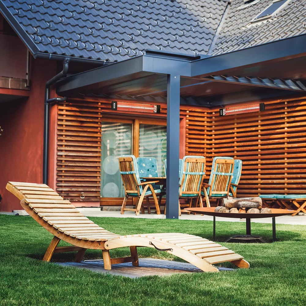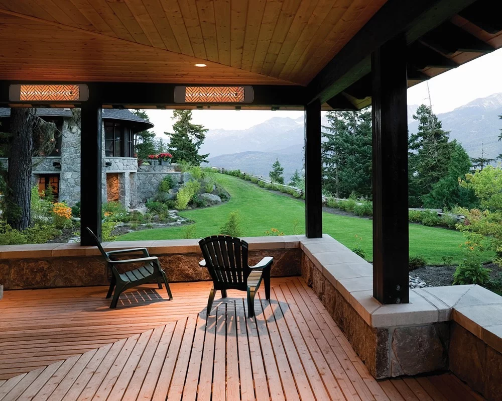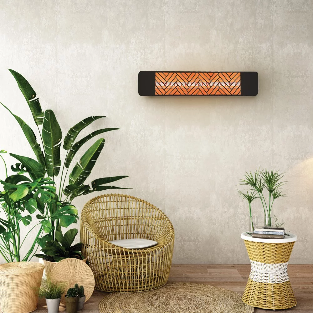 Innova-4000 Watt Electric Infrared Dual Element Heater-480 Voltage-Black Finish-Mason Decorative Fascia-Outdoor Wall Mount Electric Heater-EF40480B3