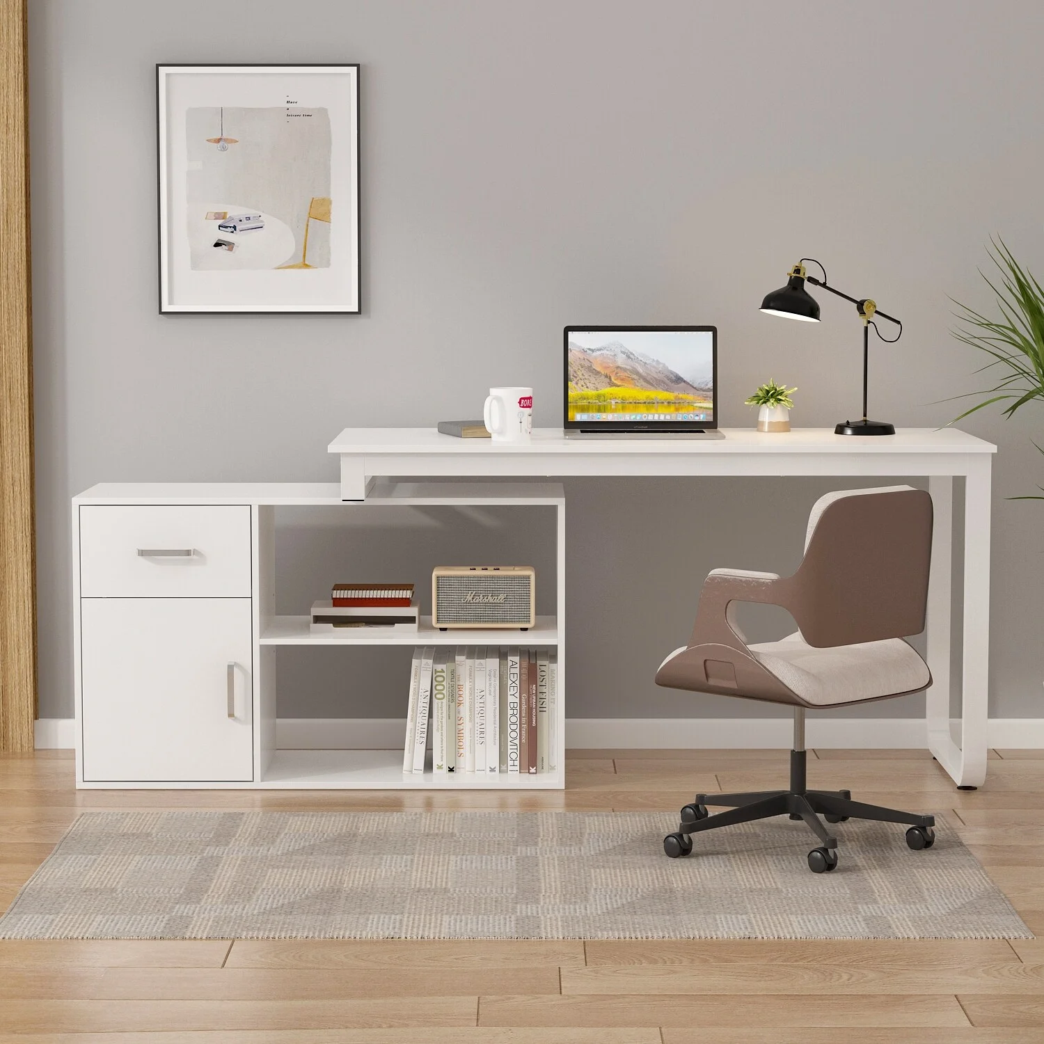 55" L shaped Storage Desk Computer Desk Executive Office Desk Game