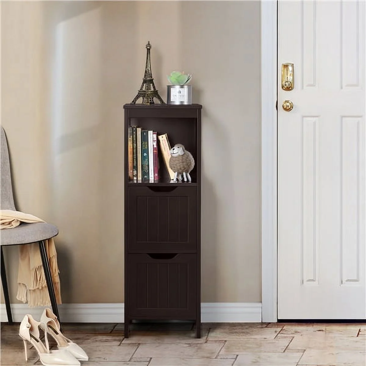 Yaheetech Bathroom Floor Cabinet with 2 Drawers, Free-Standing Side Storage Organizer with 1 Shelf, Wooden Multifunctional Rack Stand, Espresso