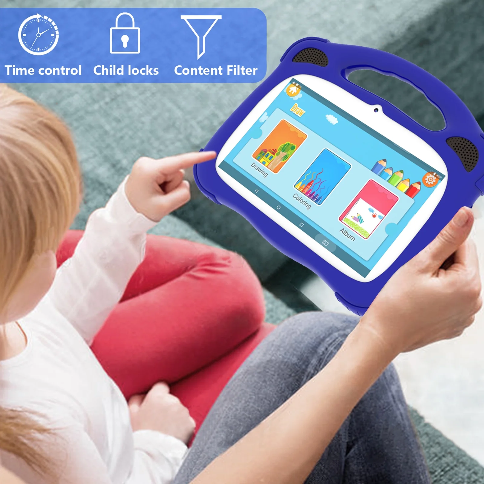 Kids Tablet 7 inch Tablet for Kids Android Toddler Cartoon Tablets With Protective Case 2GB RAM 32GB ROM WiFi Tablet Pre Installed & Parent Control Learning Education Game Tablet IPS Touch Screen Tab.