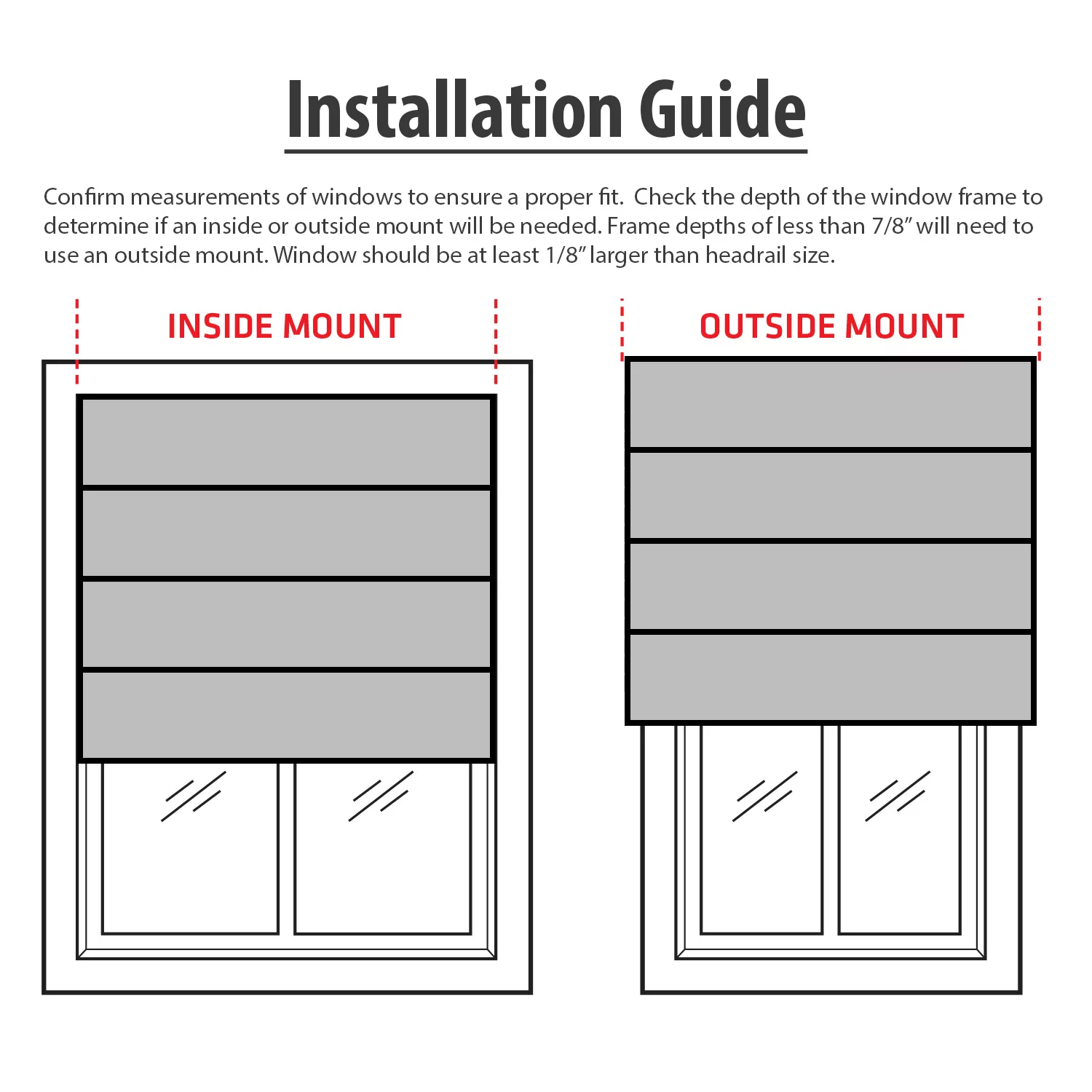 Biltek Gray Roman Shades Total Blackout Window Blinds Inside/Outside Mount Thermal Washable Fabric 23"W x 64"H