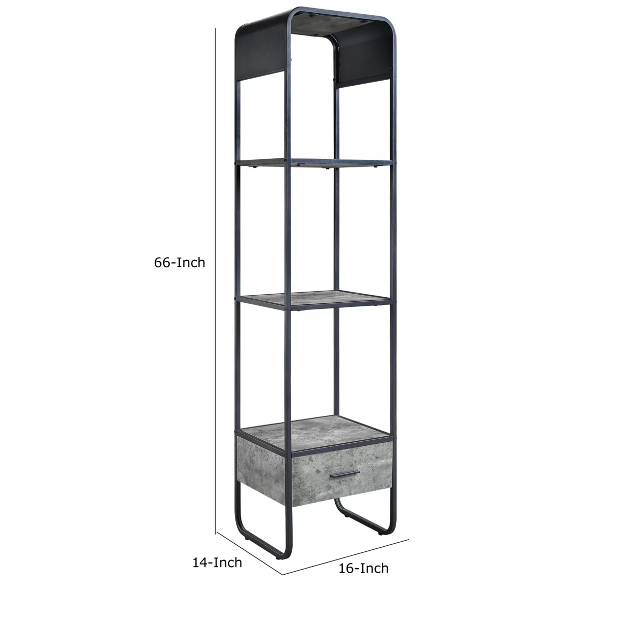 66 Inch Side Pier, Vertical Media Bookcase, 3 Shelves, Metal Frame, Gray- Saltoro Sherpi