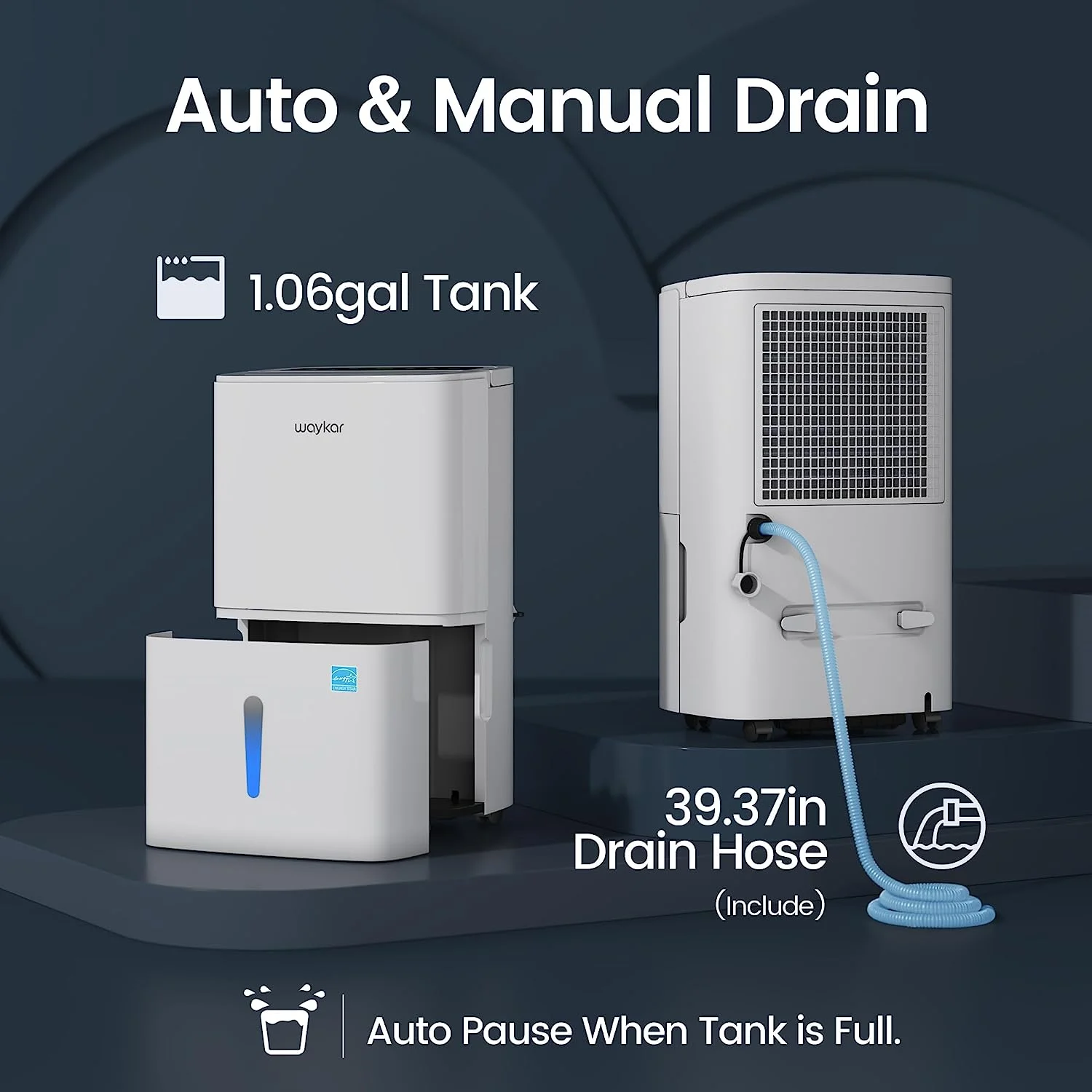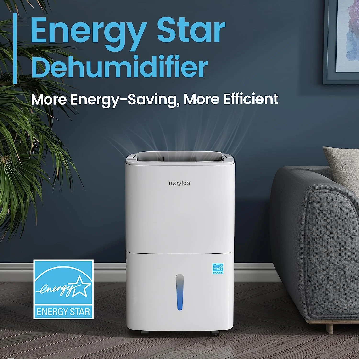 Waykar 80 Pints Energy Star Home Dehumidifier for Spaces up to 5,000 Sq. Ft at Home, in Basements and Large Rooms with Drain Hose, Handle, Auto Defrost and Self-Drying.