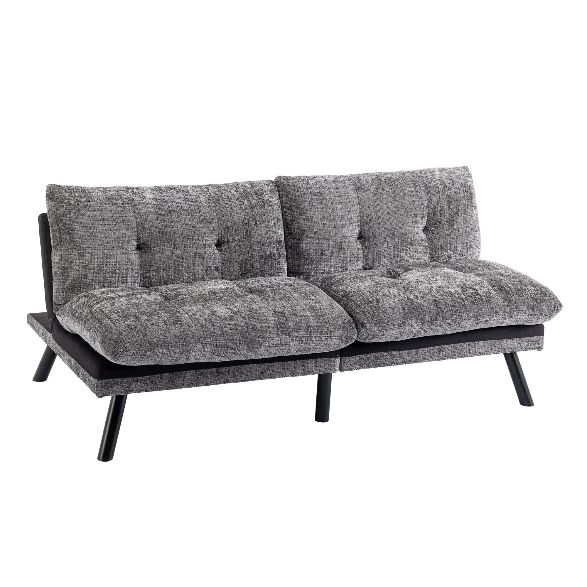 Grey Sleeper Loveseat w/ Convertible Armless Reclining Sofa Settee