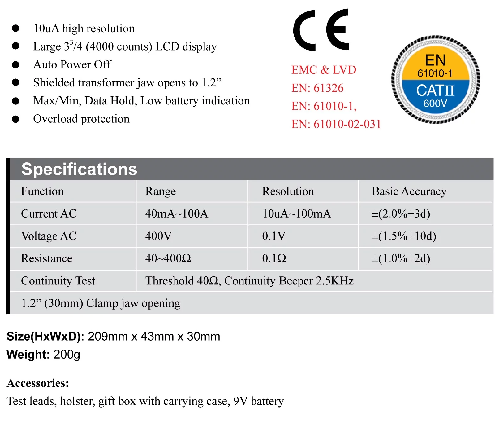 Ruby Electronics DT-9809 10uA - 100mA AC Leakage Current Tester Voltage Meter NEW!!
