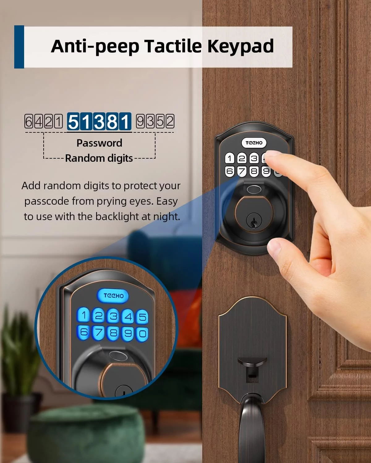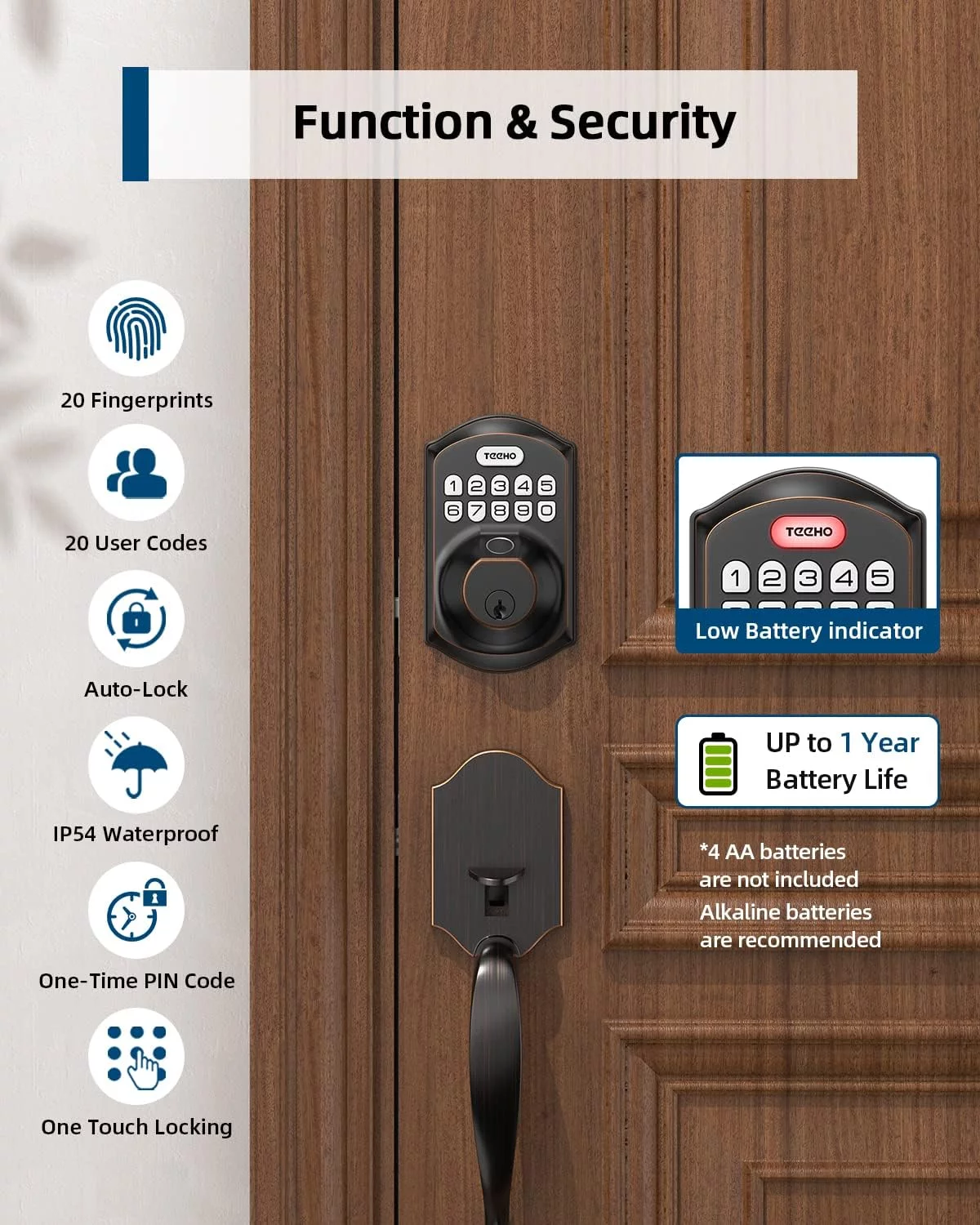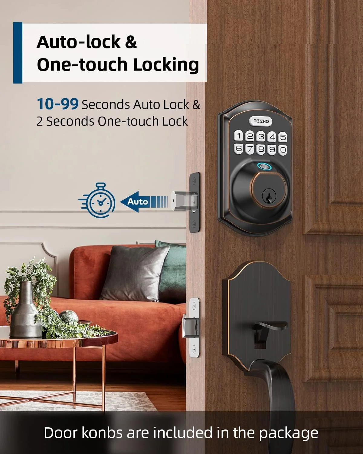 TEEHO Fingerprint Keyless Entry Keypad Smart Electronic Deadbolt Door Lock with 2 Handles Set 5.09 Pounds - Oil Rubbed Bronze