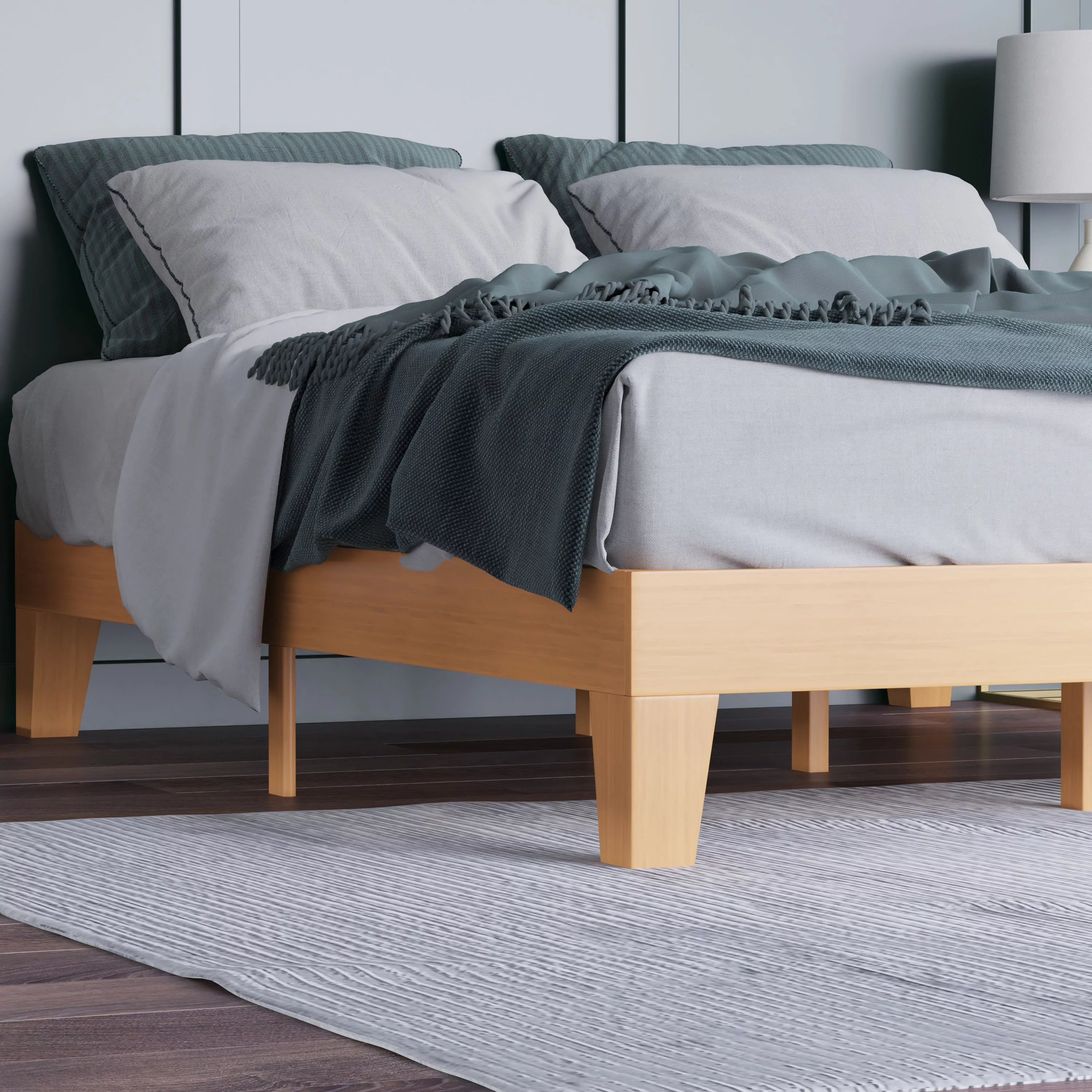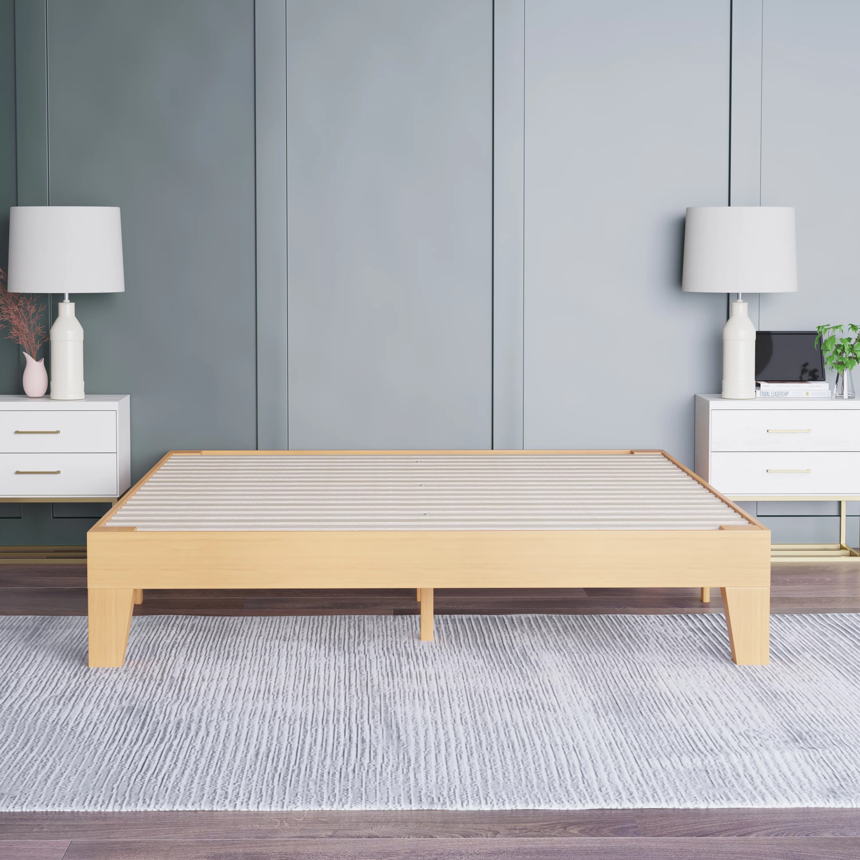 Emma + Oliver Queen Sized Wooden Platform Bed with Natural Pine Finish and Wooden Support Slats; No Box Spring or Foundation Required