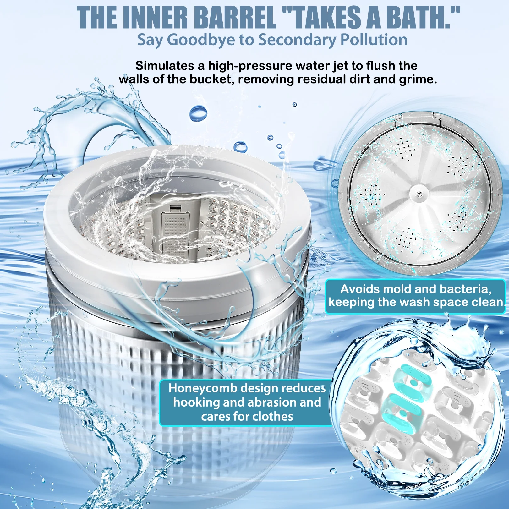Qhomic 17.8 lbs Portable Washing Machine, 2 in 1 Full Automatic Washer & Dryer with Drain Pump, LED Display, Visual Glass Top-Load, 10 Wash Programs 8 Water Level for Home/Apartment/RV/Dorm