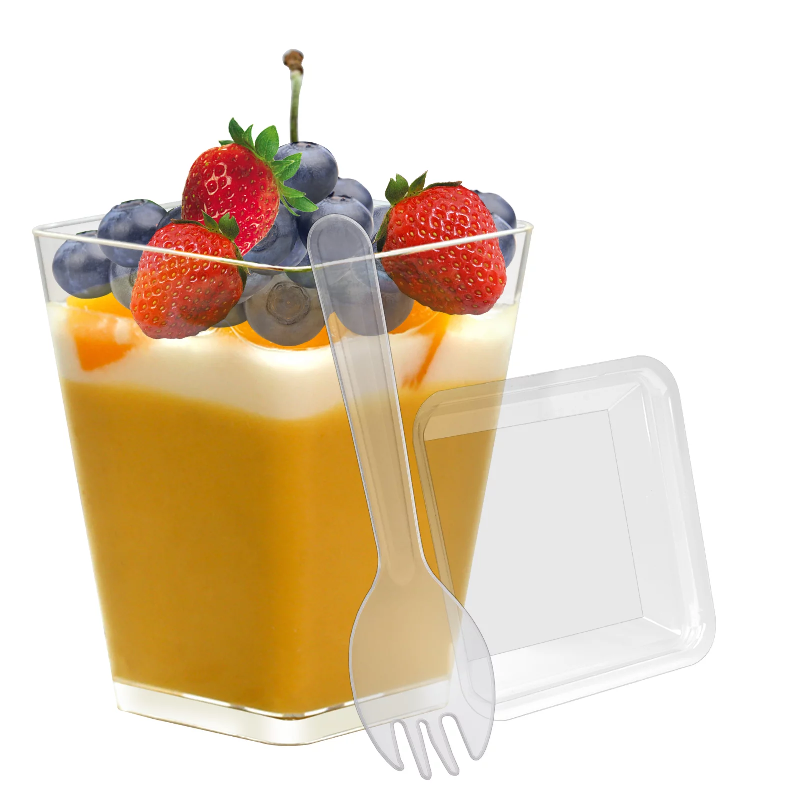 Hiziwimi 100 Pack 5.4oz Clear Dessert Cups with Lids and Spoons, Mini Dessert Cups, Appetizer Cup, Reusable Mini Tumbler Serving Cups for Party Desserts