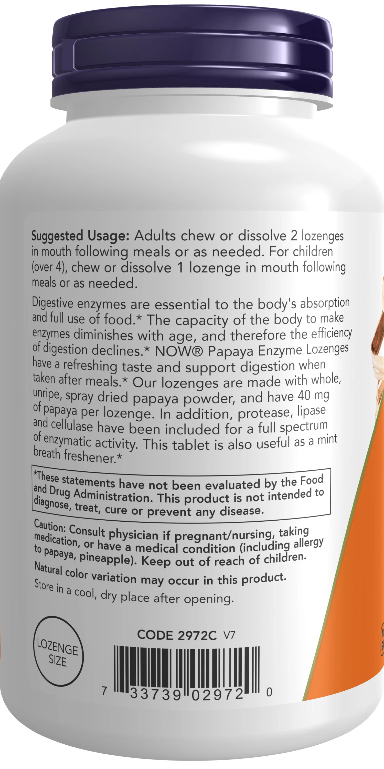 NOW Supplements, Papaya Enzyme with Mint and Chlorophyll, Digestive Support*, 360 Chewable Lozenges