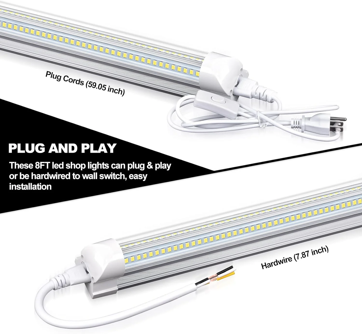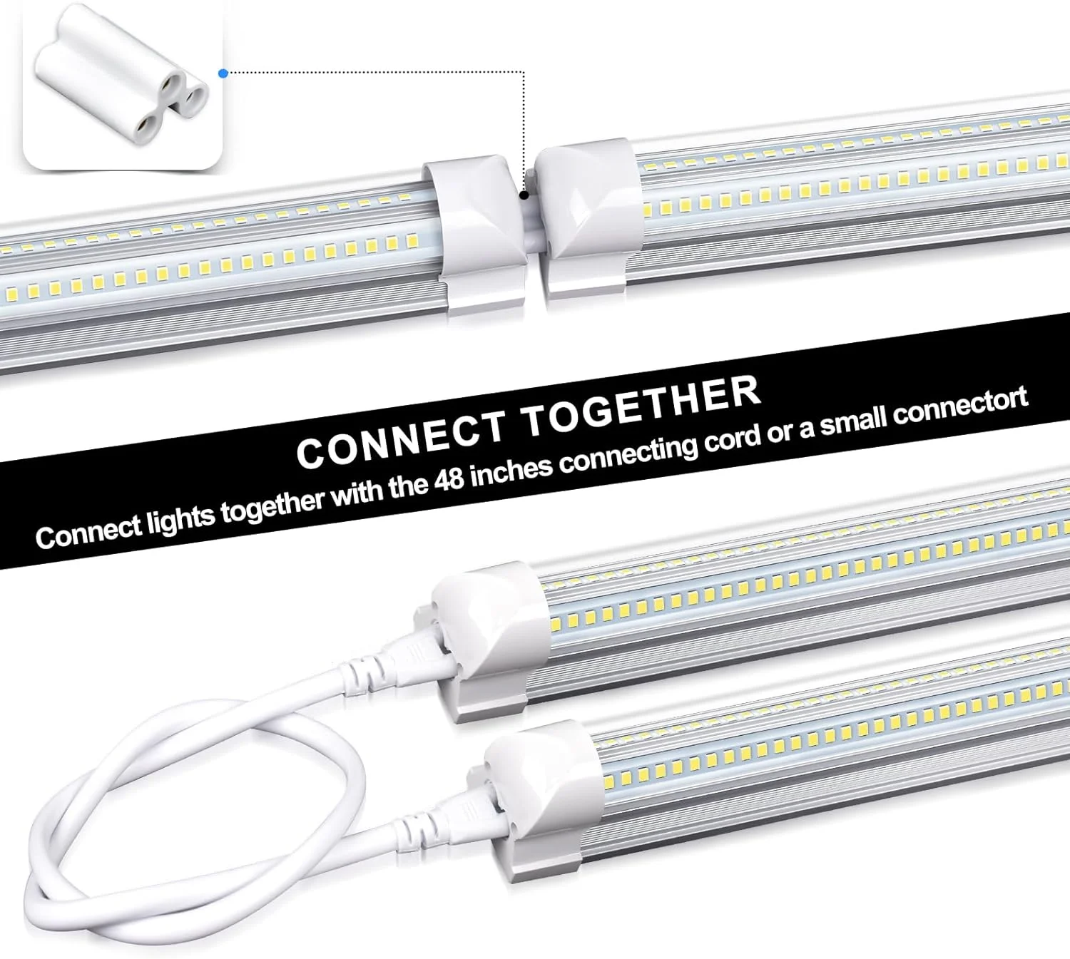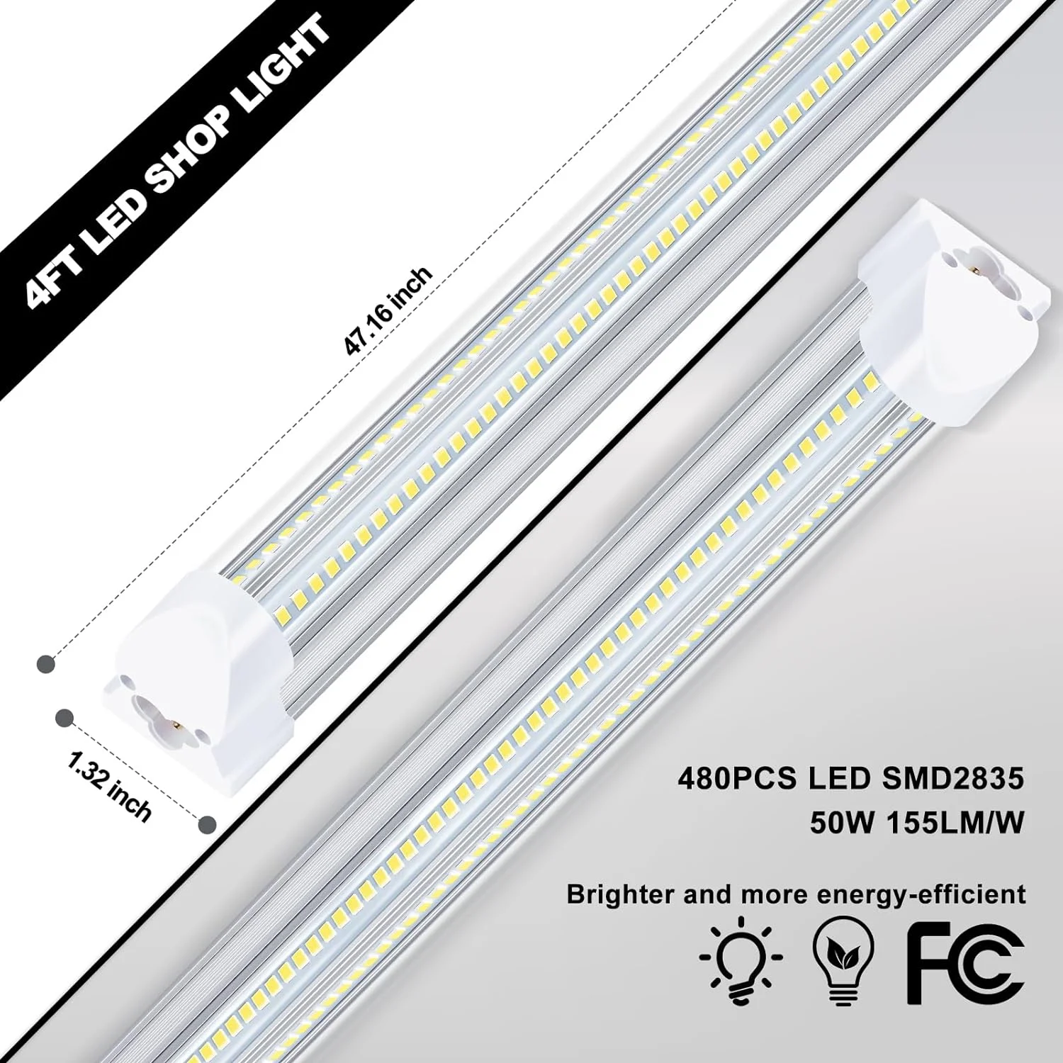 WAGEE LED Shop Lights - 4FT 50W LED Light Fixture, 4 Foot High Output 7750Lumen, 6000K, Clear Cover, V-Shape Linkable, Plug and Play, T8 LED Tube Light for Garage, Workshop (10 Pack)