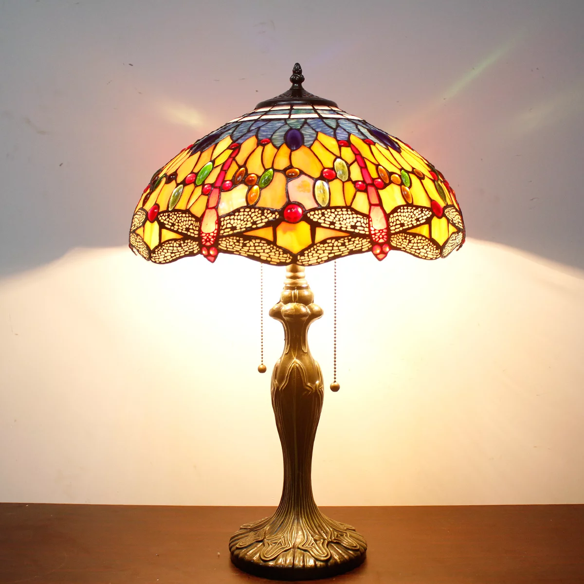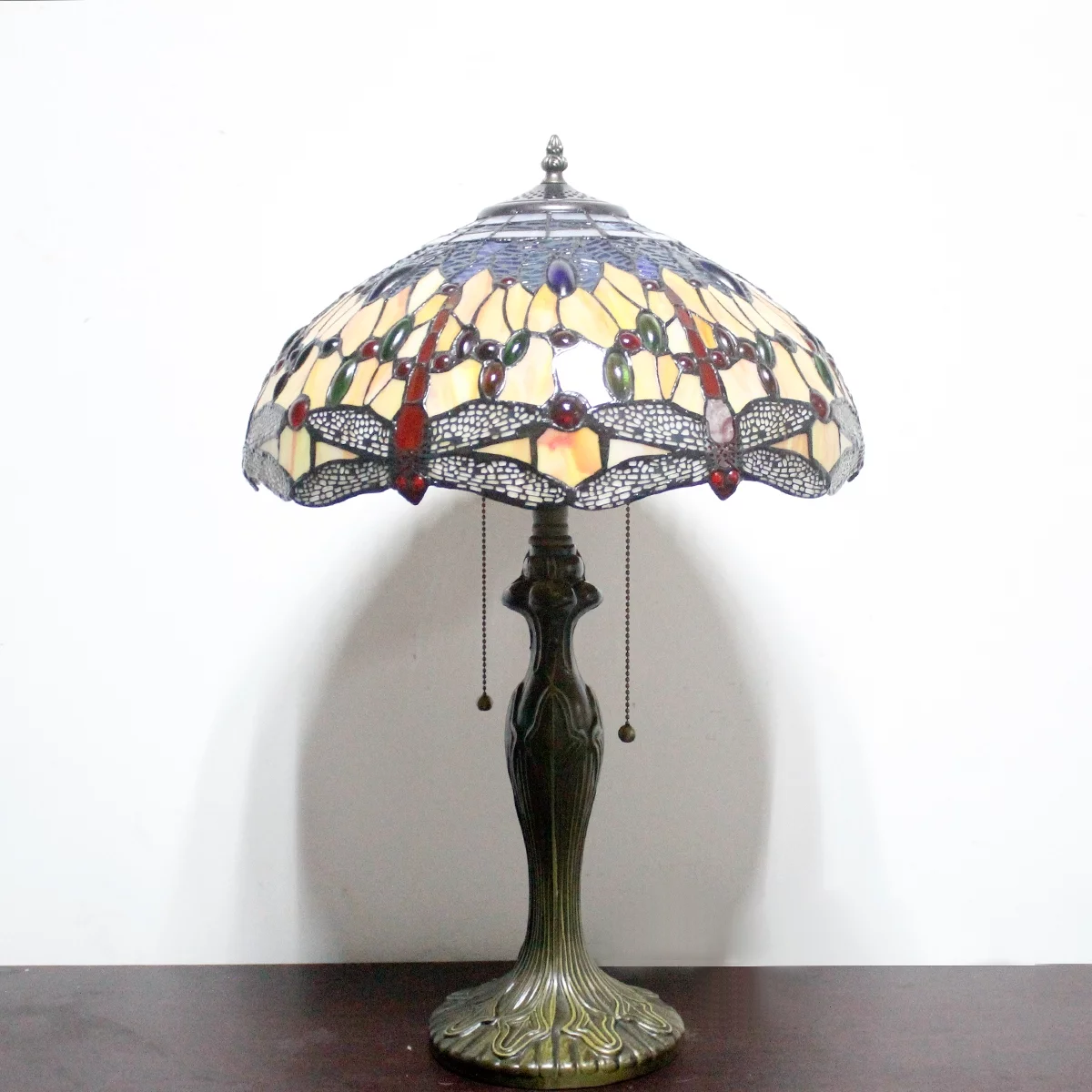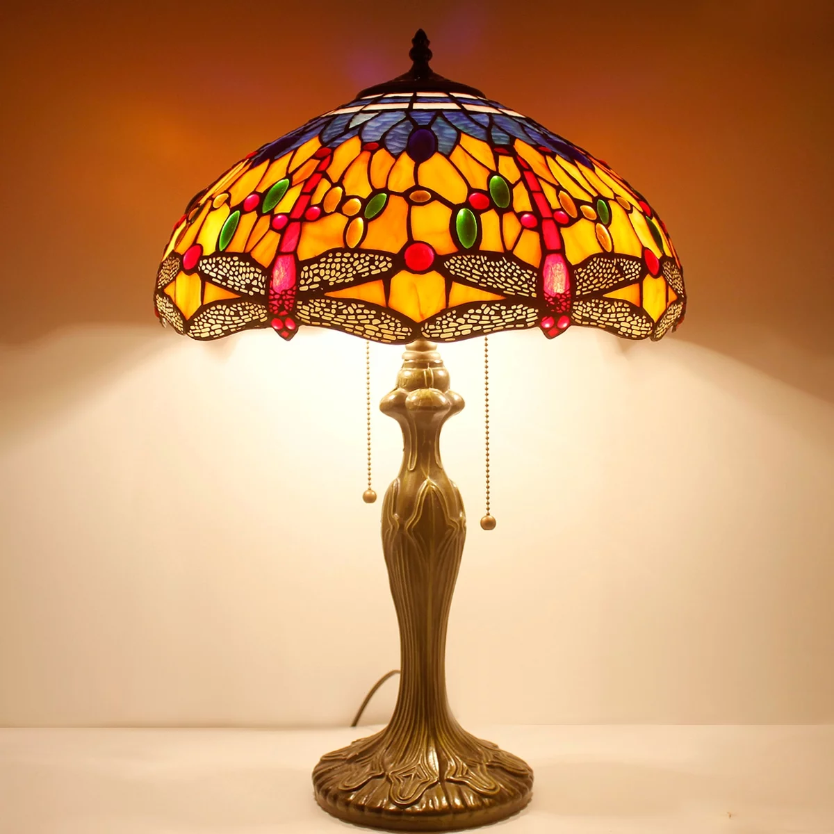 Tiffany Style Table Lamp W16H24 Inch Orange Blue Stained Glass Crystal Bead Dragonfly Shade S168 LAMPS Kids Living Room Bedroom Coffee Bar Desk Bedside Reading Light Antique Art Crafts Gift