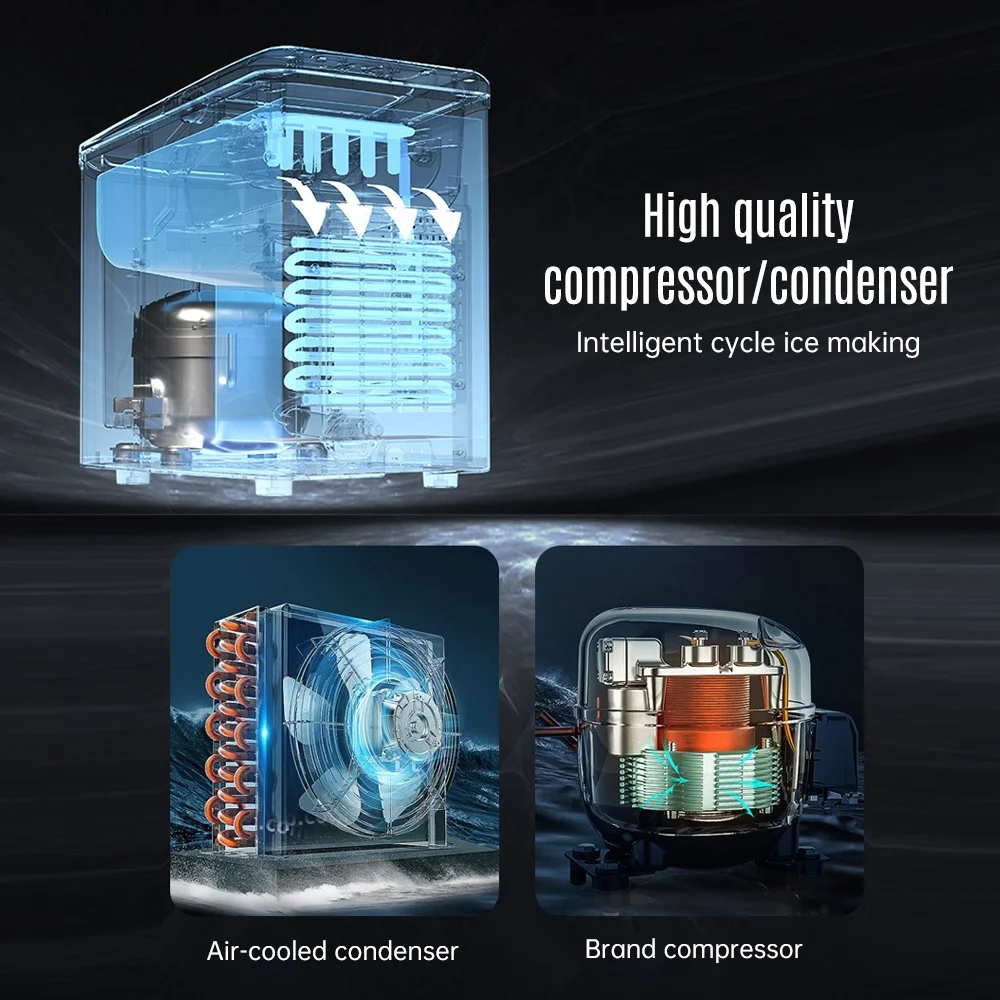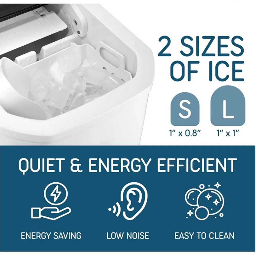Countertop Ice Maker - Produces 10 Cubes in 6 Mins, 26lbs in 24Hrs, Self-Cleaning, Includes Ice Scoop and Basket, 2 Ice Sizes, Ideal for Home, Kitchen, Office, Bar, Party