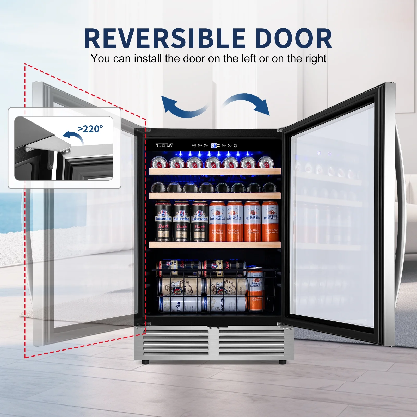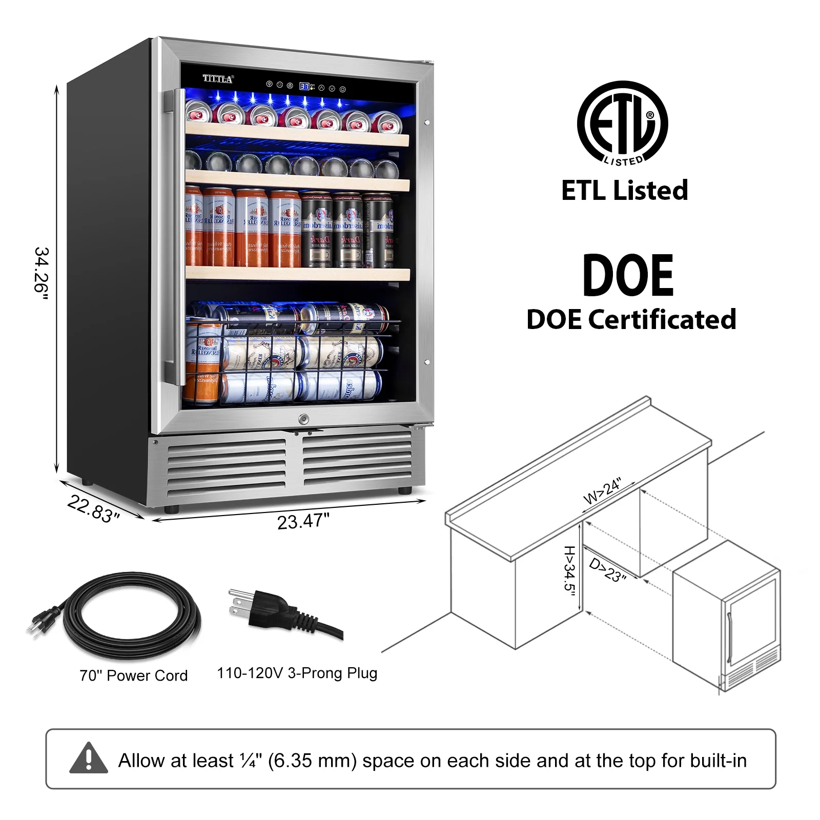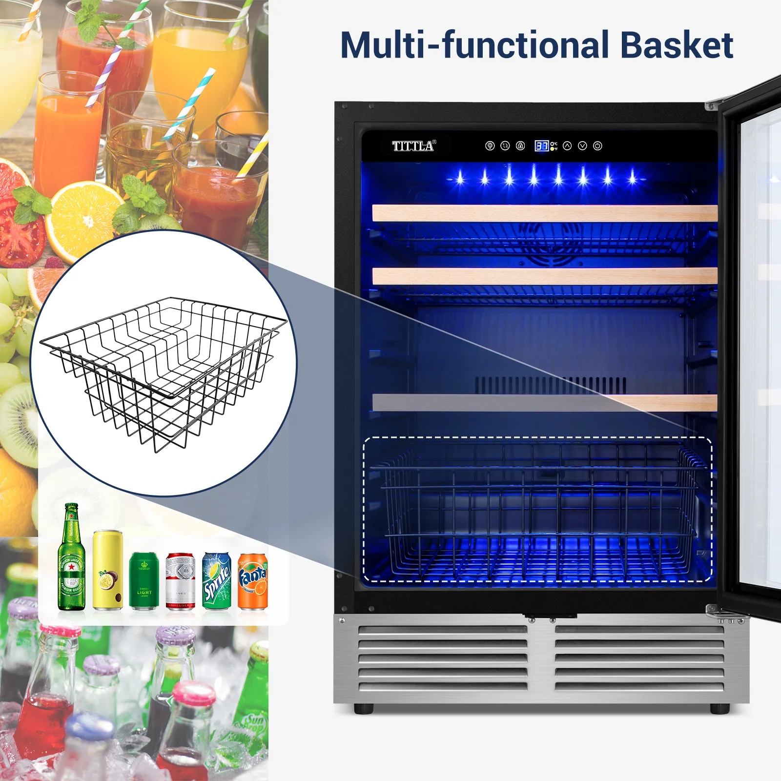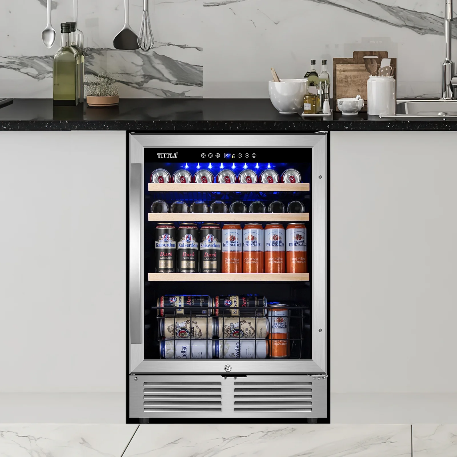 Tittla 24'' Beverage Refrigerator Cooler,150-Cans Built-in Wine Cooler Beverage Cooler 37°-65°F, Low Noise Energy Saving for Beer and Soda or Fruit