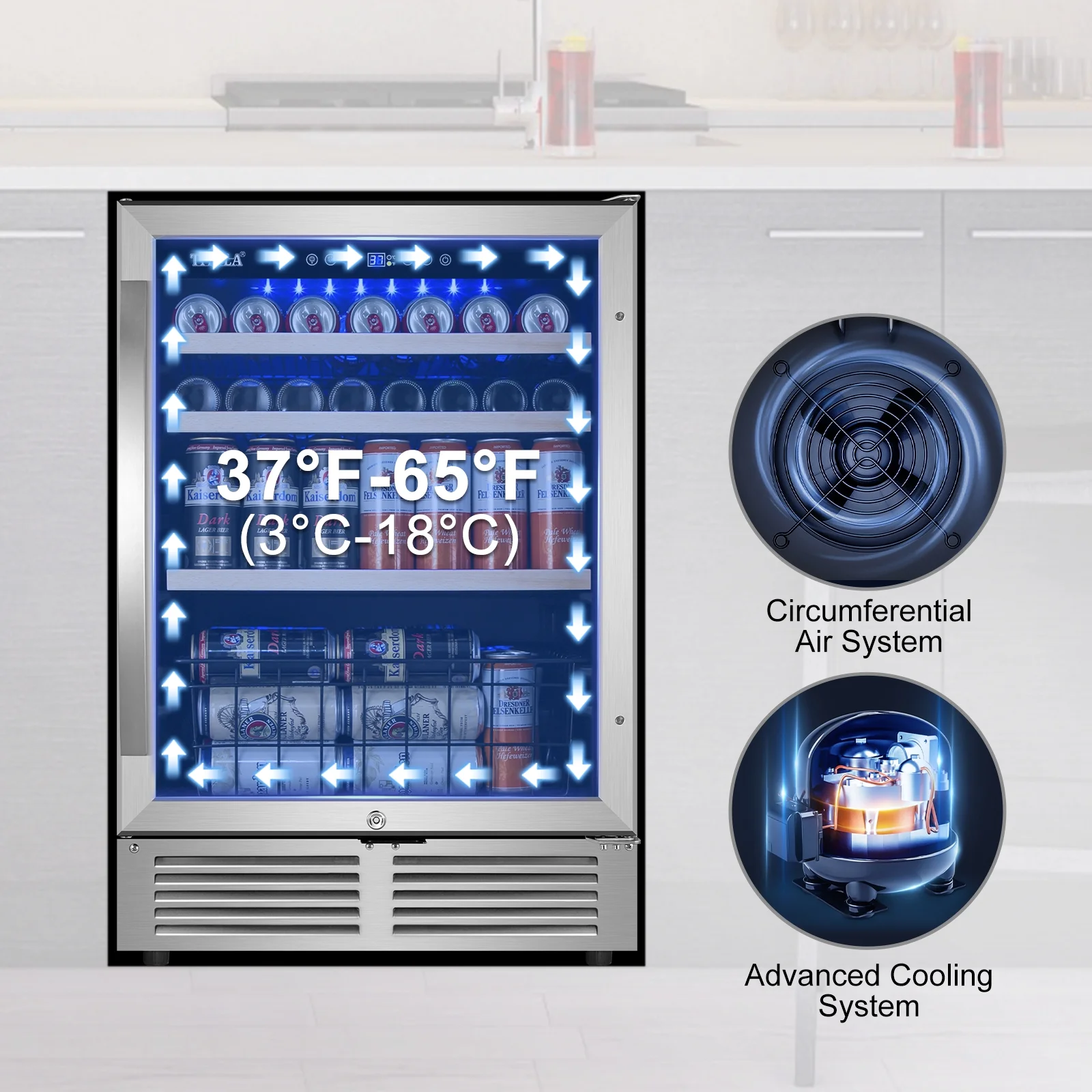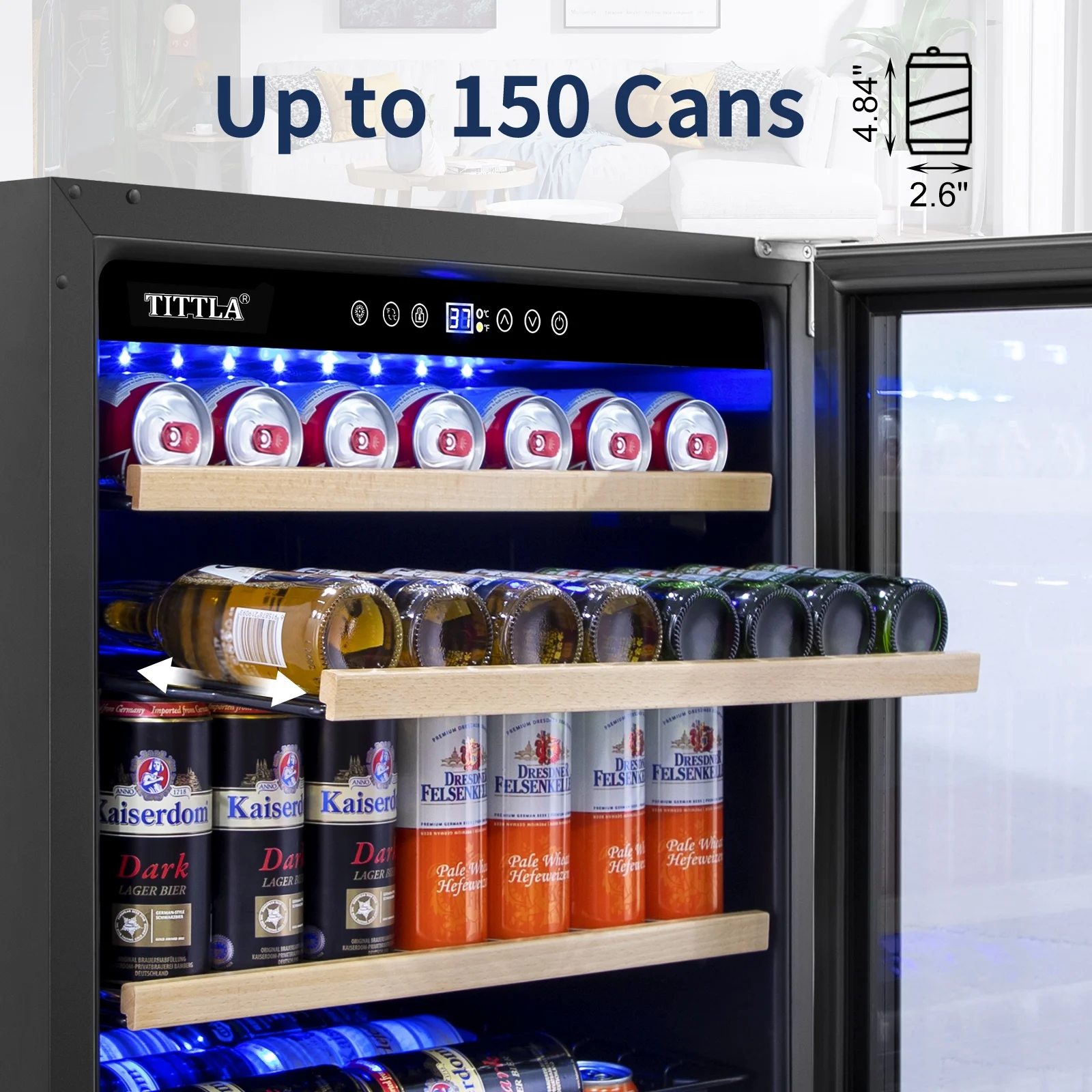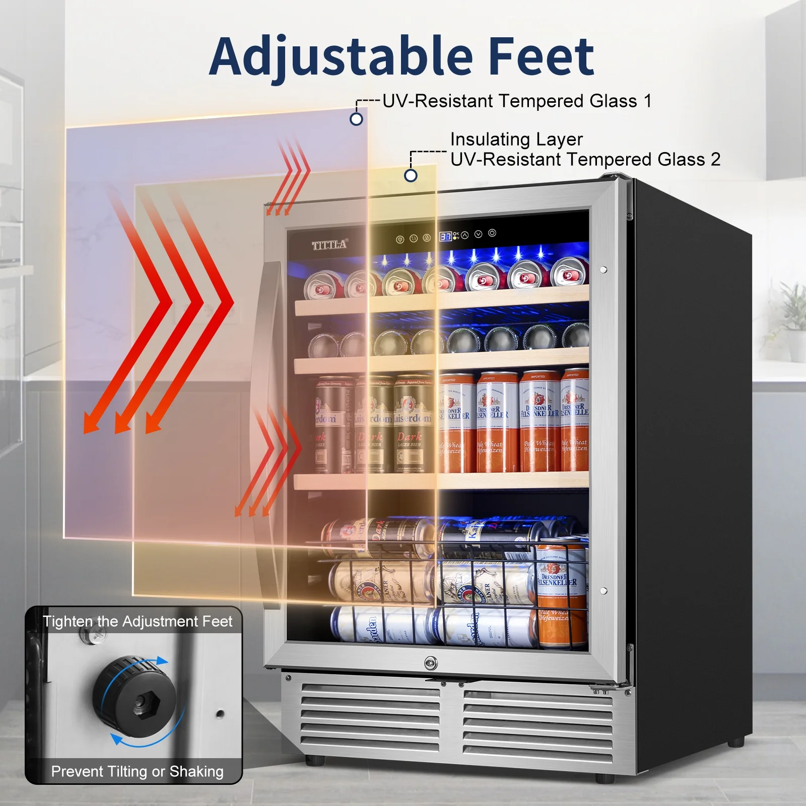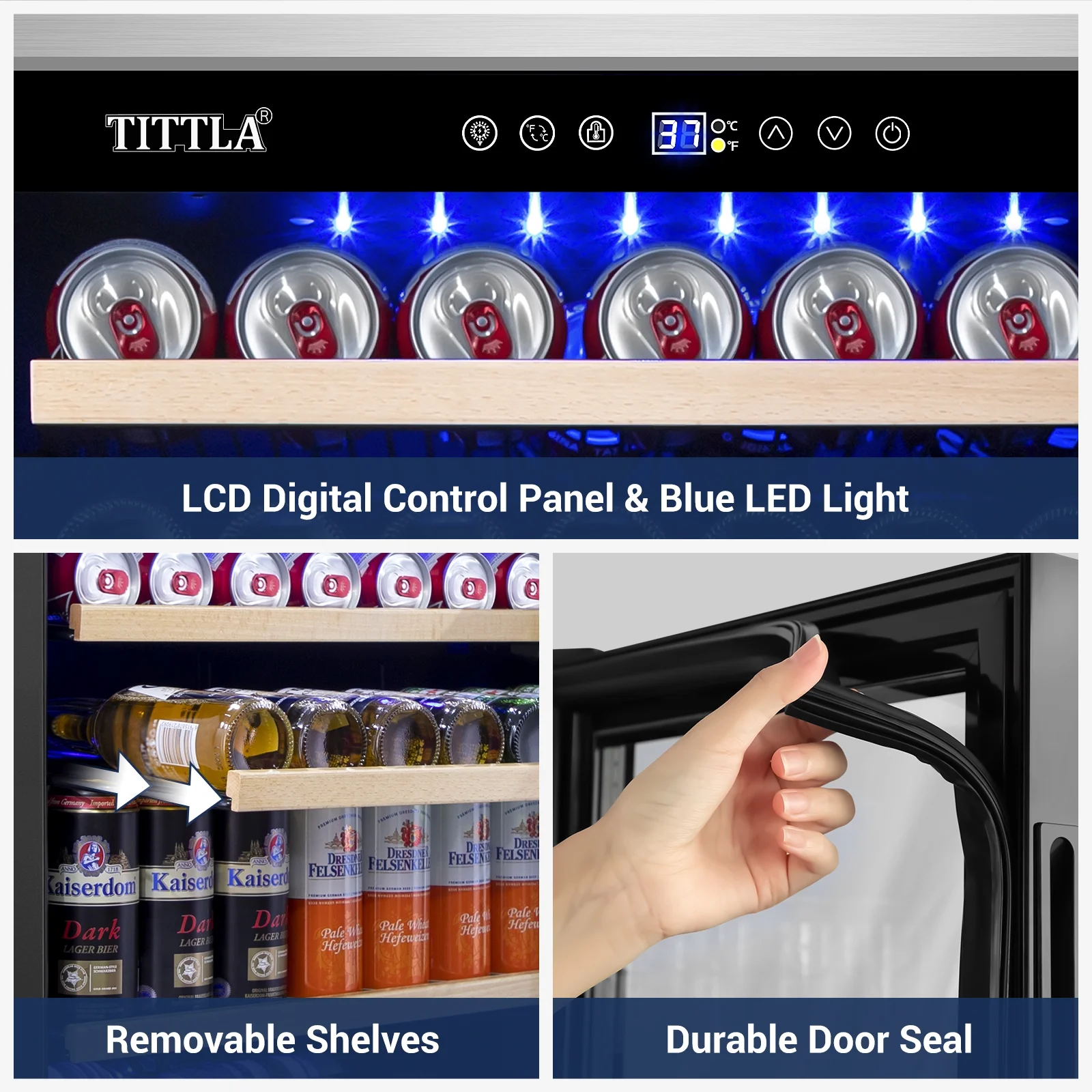 Tittla 24'' Beverage Refrigerator Cooler,150-Cans Built-in Wine Cooler Beverage Cooler 37°-65°F, Low Noise Energy Saving for Beer and Soda or Fruit