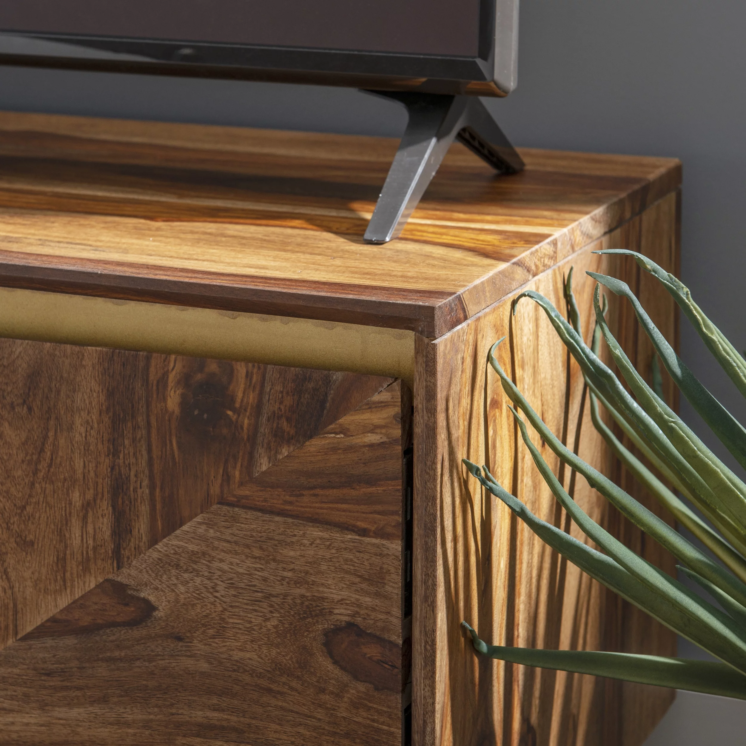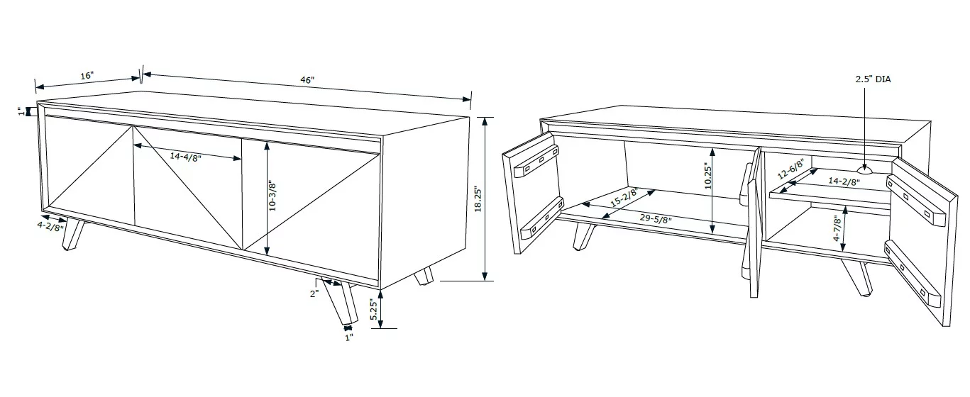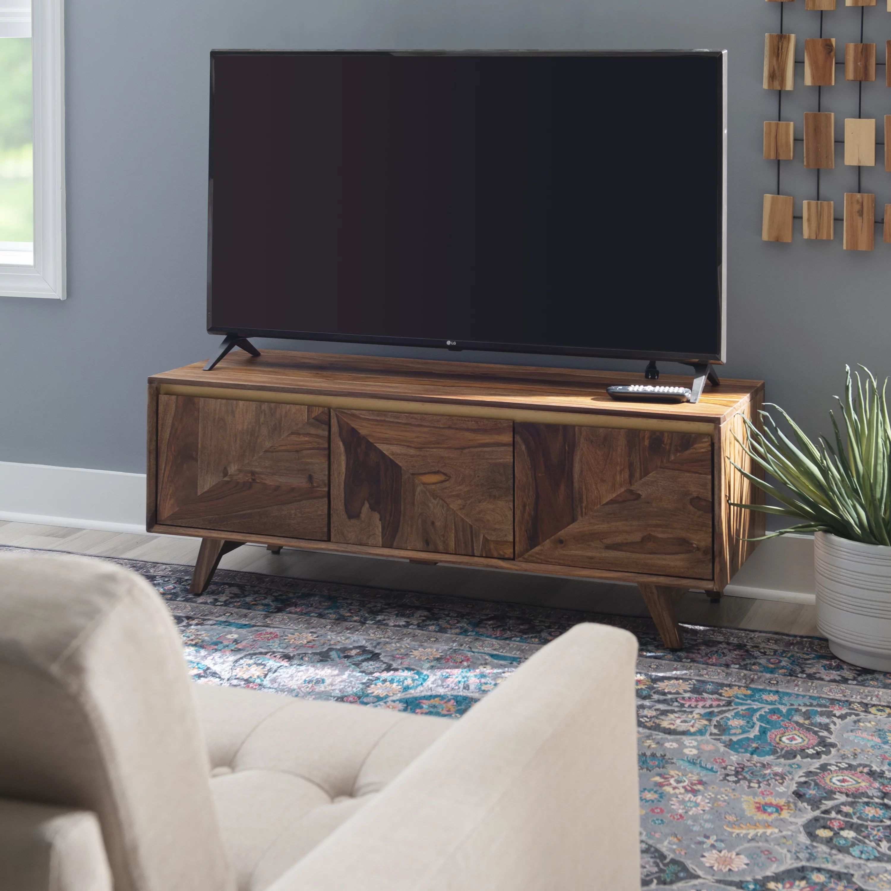 Powell Graycrest Mid-Century Modern 3-Door Wood Indoor Console Table with Shelves, Brown