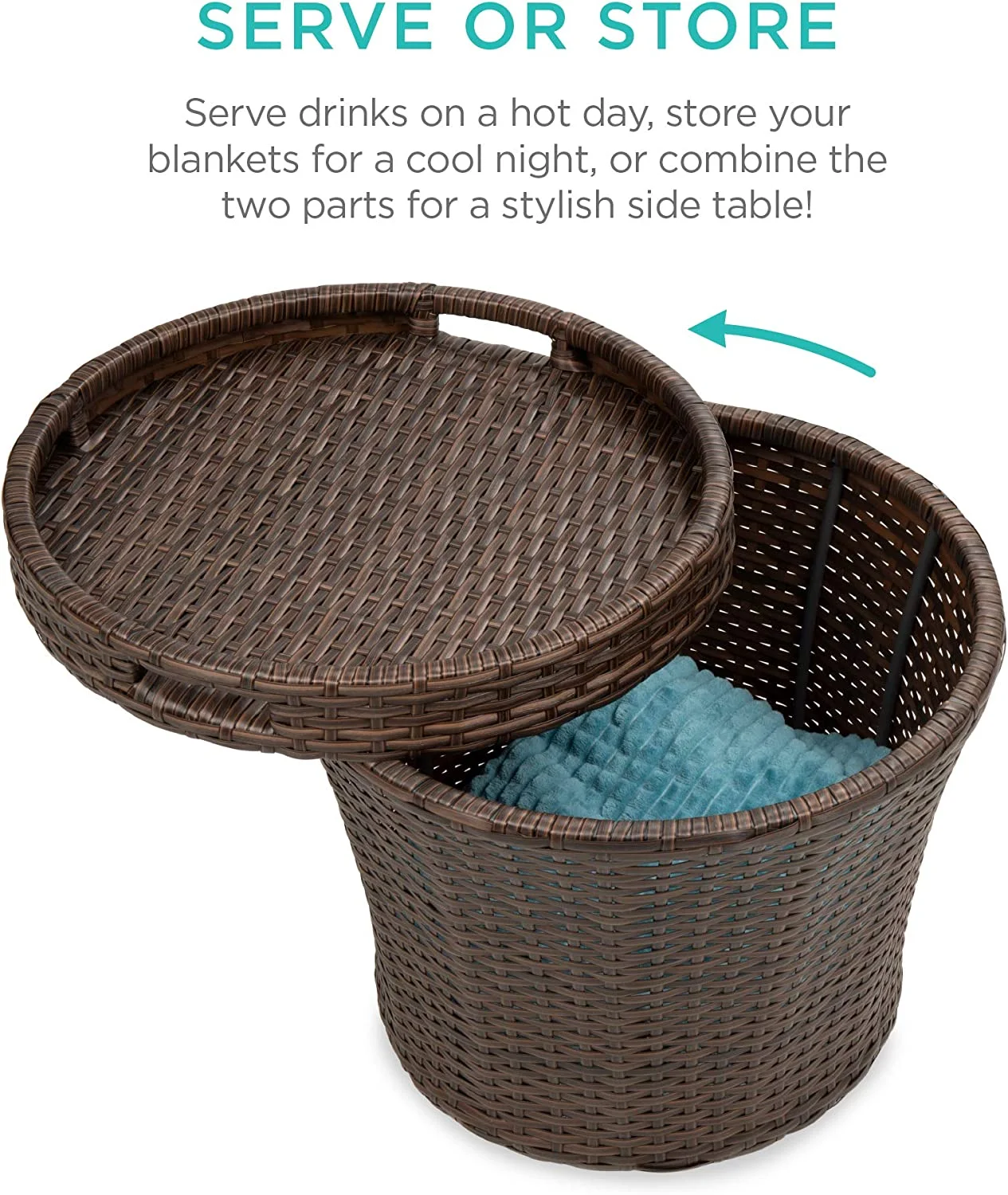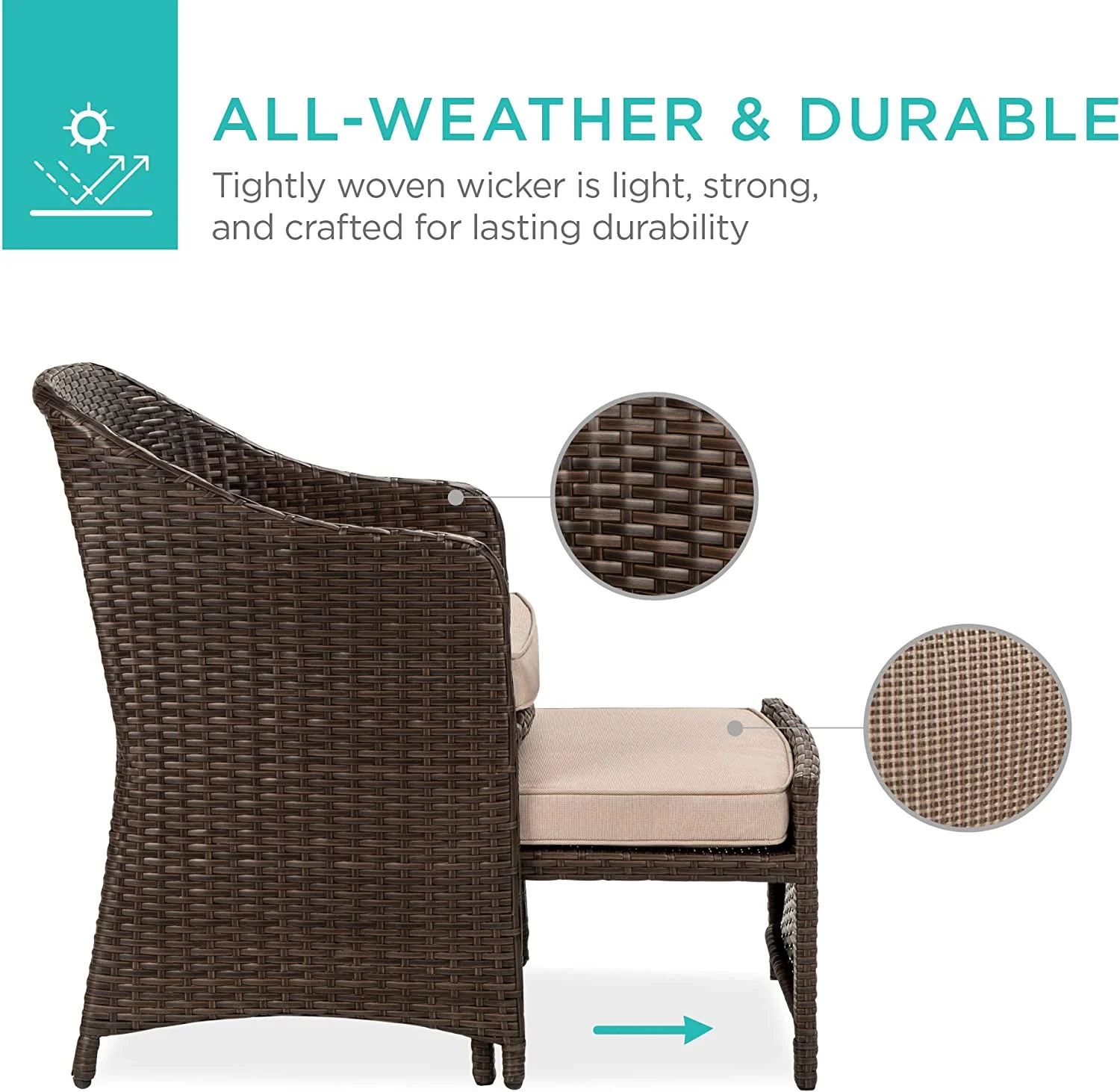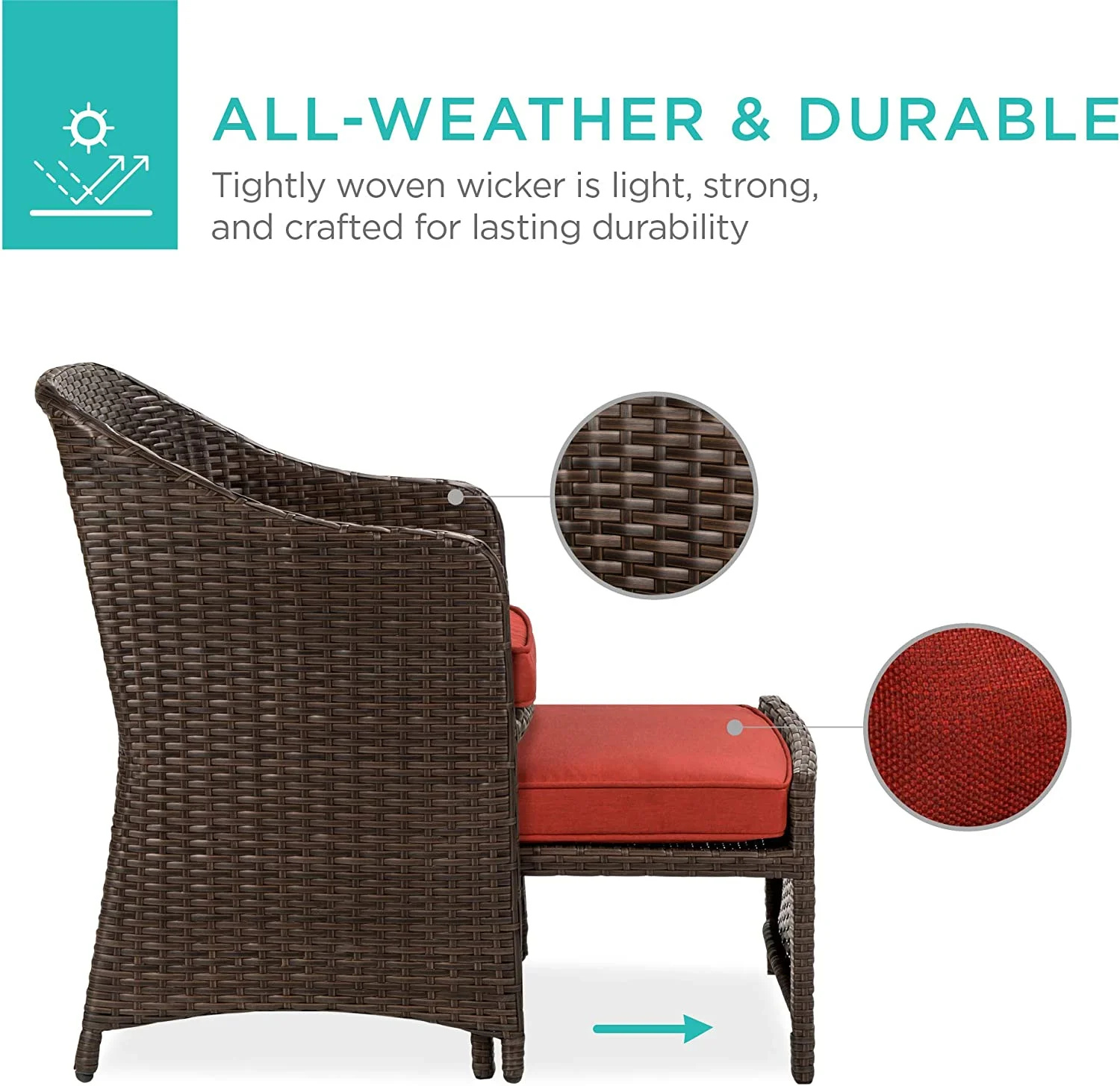 5-Piece Outdoor Patio Furniture Set, No Assembly Required Wicker Conversation Bistro & Storage Table for Backyard, Porch, Balcony w/Space-Saving Design - Brown/Red
